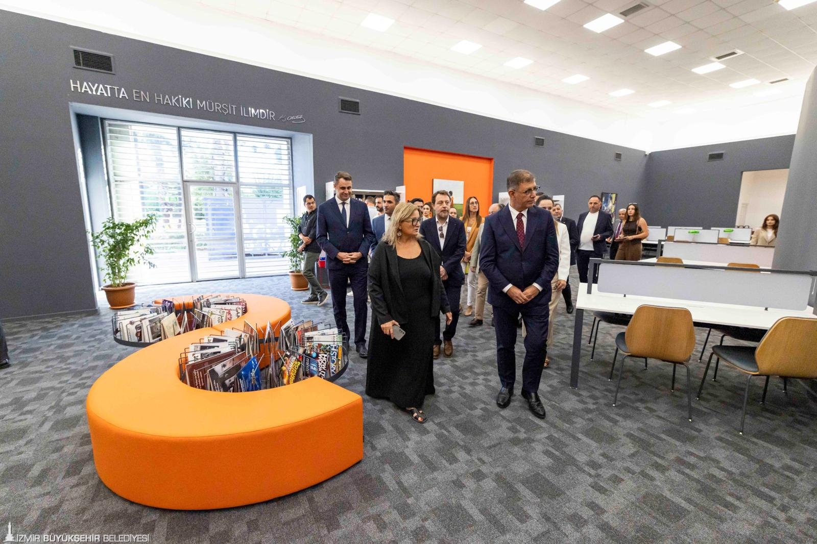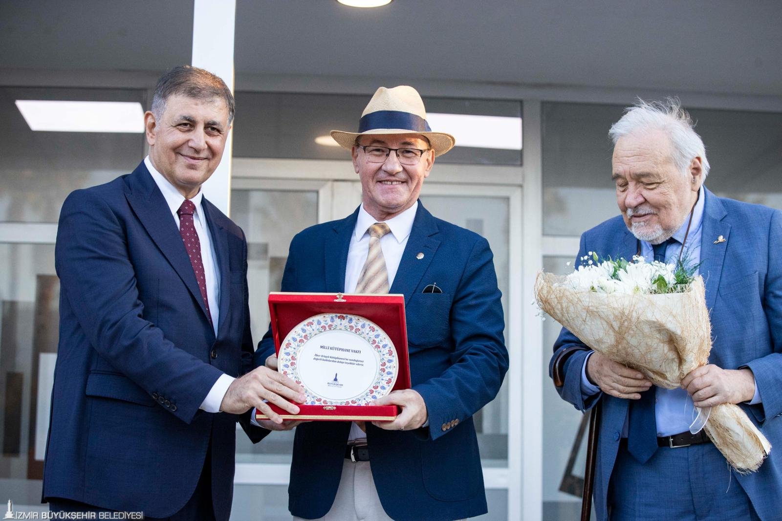 Konuşmaların ardından Prof. İlber Ortaylı ile kütüphanenin açılmasında katkıları bulunan Milli Kütüphane Vakfı Başkanı Ulvi Puğ ve meclis üyesi Erhan Erdil’e Başkan Tugay tarafından plaket ve çiçek takdim edildi. Başkan Tugay ve eşi Öznur Tugay, İlber Ortaylı ve protokol mensupları açılış kurdelesini birlikte kesti. Daha sonra kütüphane gezildi. Açılışta, üzerine İlber Ortaylı’ya ait “Gidersin, karşına birdenbire nefis bir kütüphane çıkar. İşte o kütüphane olmadan şehrin karakteri oluşmaz” sözlerinin yazıldığı kitap ayracı da Ortaylı’ya hediye edildi.