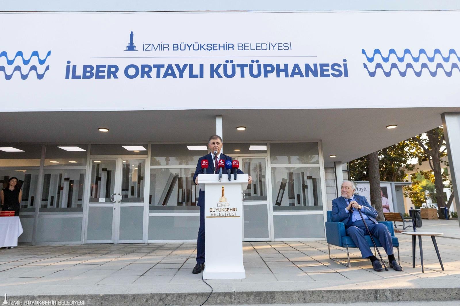 Açılış töreninde konuşan İzmir Büyükşehir Belediye Başkanı Dr. Cemil Tugay, kütüphane açılışının çok değerli olduğunu vurgulayarak “İlber Ortaylı Hoca, ‘İzmirli değilim’ dedi ama bazı insanlar ülkece öyle benimseniyor ki hangi şehre gitse oralı gibi görünüyor. İzmirliler de İlber Ortaylı Hoca’yı çok seviyor. Düşünceleriniz ve yazılarınızla ülkemize ve şehrimize ışık verdiğiniz için bu kütüphaneye sizin adınızı vermeyi istedik. Burada sizin adınızı taşıyan kütüphanenin açılışını yapmak İzmir Büyükşehir Belediyesi için büyük bir onur” ifadelerini kullandı.