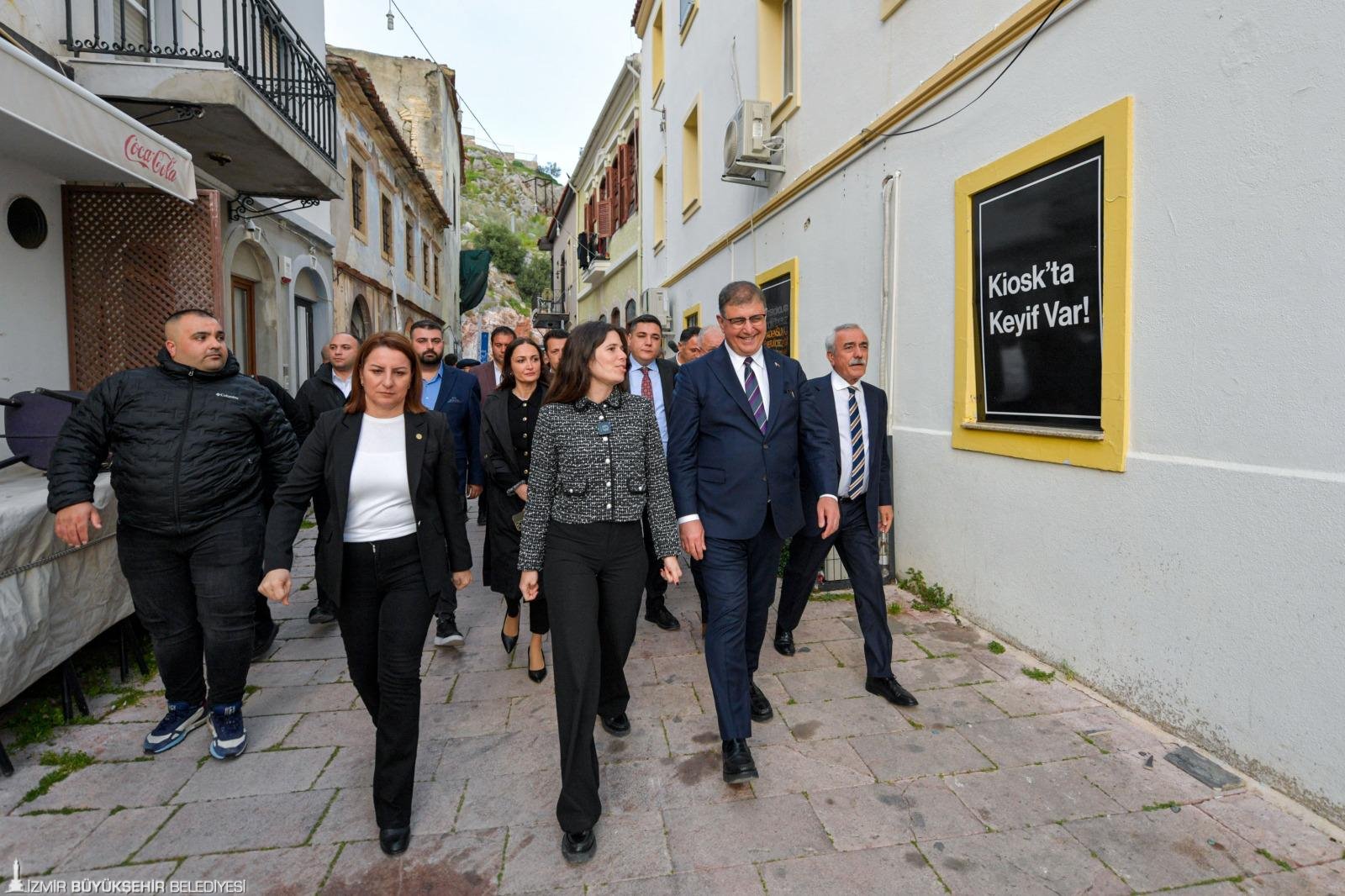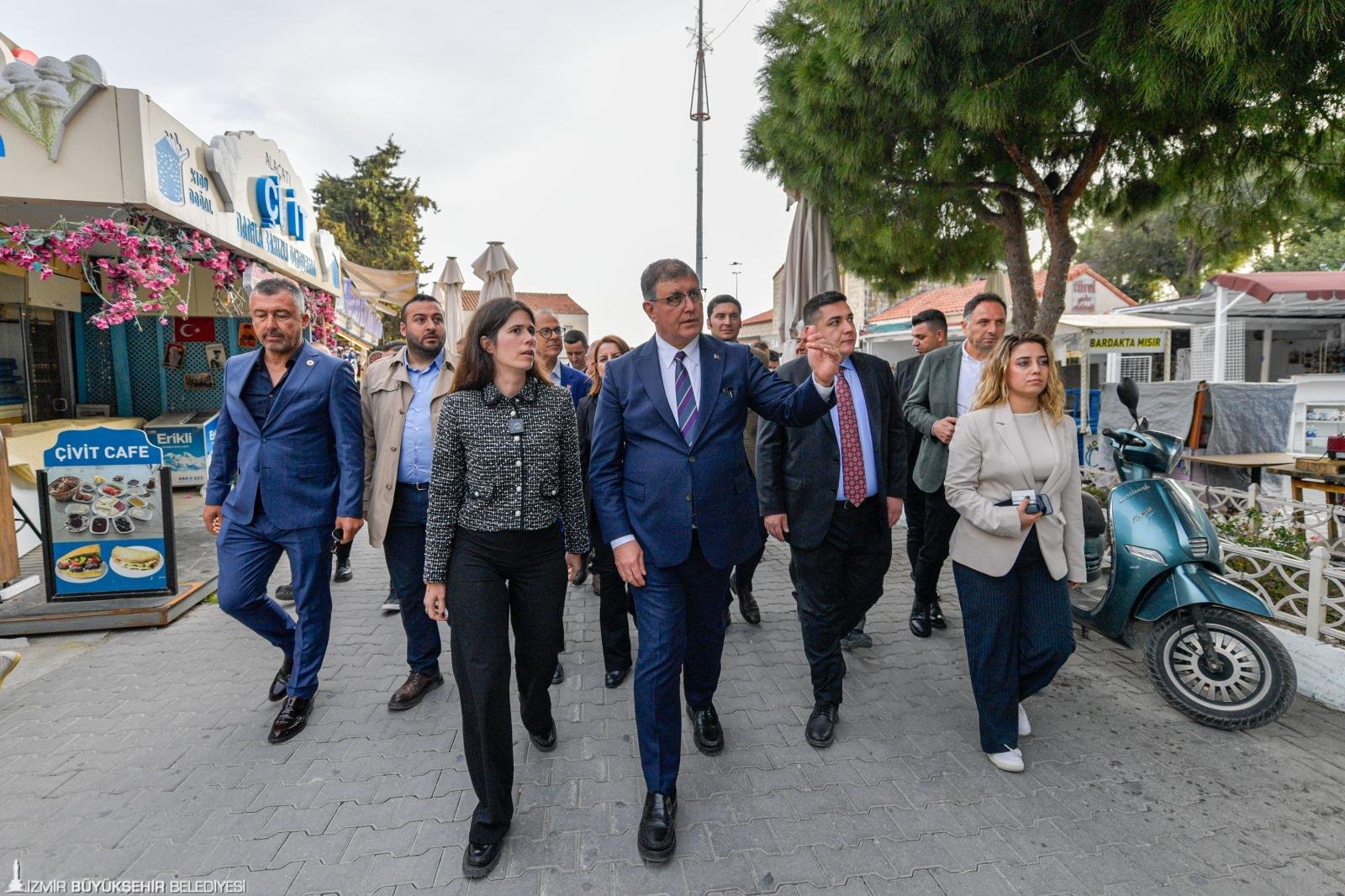 İzmir Büyükşehir Belediye Başkanı Dr. Cemil Tugay, İzmir Büyükşehir Belediyesi'nin ramazan ayında dayanışma ruhuyla sofraların bereketini artırdığı iftarlarda vatandaşlarla buluşmaya devam ediyor. Çeşme Belediye Başkanı Lal Denizli ev sahipliğinde Çeşme'de çeşitli programlara katılan Başkan Dr. Cemil Tugay, ilk olarak Çeşme Vizyon Ofisi'ni ziyaret etti. Çeşme Vizyon Ofisi Başkanı Şehir Plancısı Esra Koçdemir, ofisin çalışmaları ve hedefleri hakkında sunum yaptı. Toplantıda İzmir Planlama Ajansı Başkanı Prof. Dr. Koray Velibeyoğlu, Şehir Plancısı Faruk Göksu ve kurul üyeleri yer aldı. Ziyaretin ardından Başkan Tugay, Alaçatı ve Çeşme’de çarşı esnafıyla buluştu ve hayırlı işler diledi. Çeşme Belediye Başkanı Lal Denizli, Başkan Tugay'a Alaçatı Çarşısı ve Çeşme Çarşısı'nın Balıkçılar ile Terziler Sokağı'nda yapacakları projeleri anlattı.