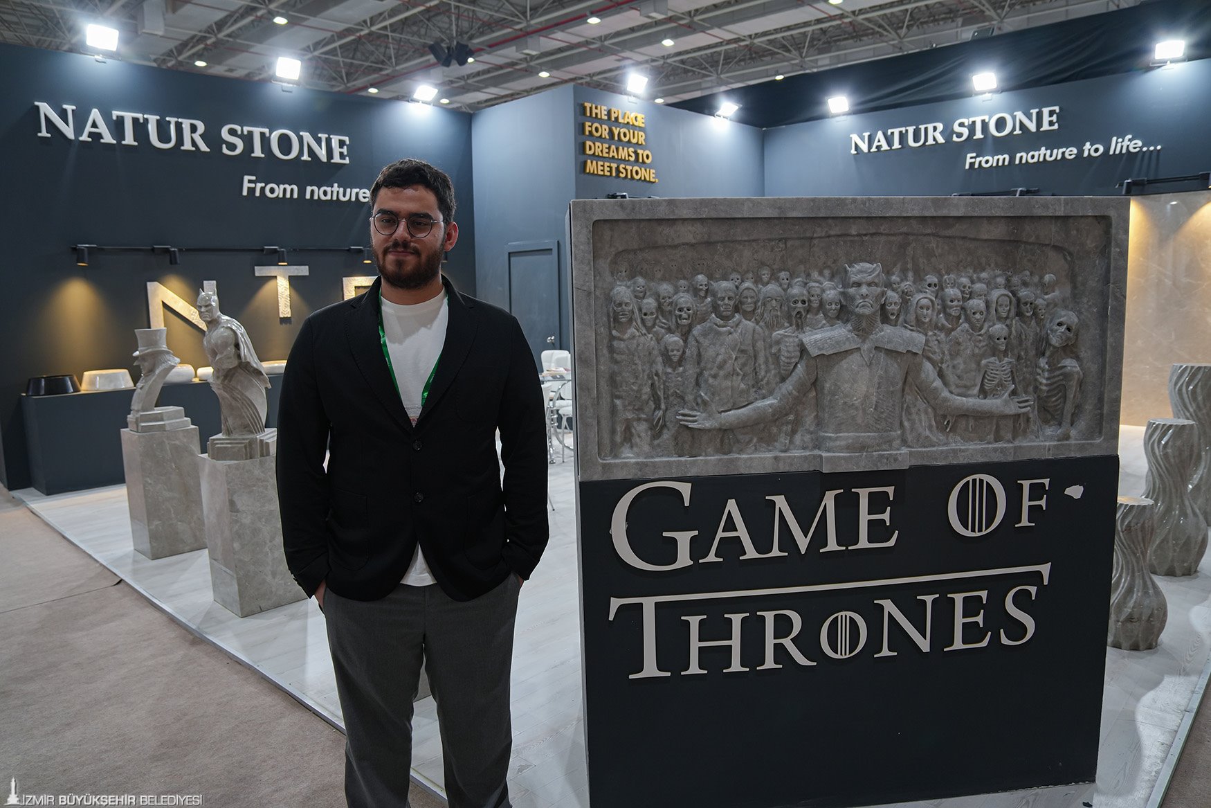 Afyon’dan fuara katılan Nature Stone firması ise popüler kültür karakterlerine yer verdiği standıyla dikkat çekti. Ticari görüşmelerinin yanında stanttaki Game Of Thrones, Batman, Joker gibi karakterlerle yüzlerce ziyaretçinin fotoğraf çektirdiğini belirten firma yetkilisi Özerhan Tokman, “Marble İzmir’e çok değer verdiğimiz için, bu fuara her sene farklı bir konseptle katılmayı tercih ediyoruz. Bu sene de Game of Thrones konsepti yapmaya çalıştık. Seneye daha farklı bir konseptle katılacağız” dedi.