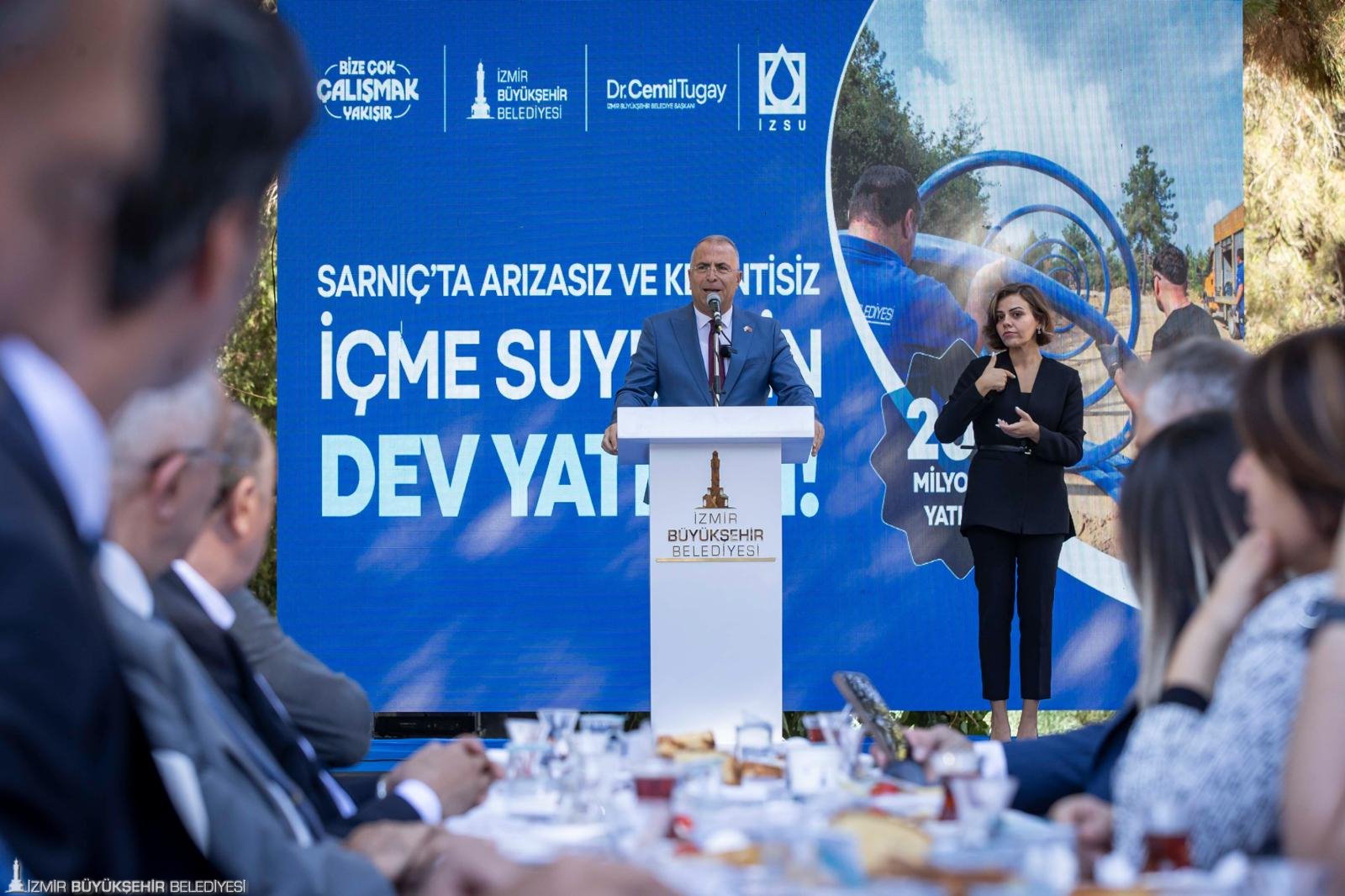 Gaziemir Sarnıç Mahallesi’nde 205 milyon liralık yatırımla hayata geçirilecek içme suyu şebeke ve iletim hattı projesinin temeli İzmir Büyükşehir Belediye Başkanı Dr. Cemil Tugay’ın katıldığı törenle atıldı. Temel atma törenine Gaziemir Belediye Başkanı Ünal Işık, Konak Belediye Başkanı Nilüfer Çınarlı Mutlu, Bornova Belediye Başkanı Ömer Eşki, Bayraklı Belediye Başkanı İrfan Önal, Urla Belediye Başkanı Selçuk Balkan, Karaburun Belediye Başkanı İlkay Girgin Erdoğan, Menderes Belediye Başkanı İlkay Çiçek, İzmir Büyükşehir Belediyesi Başkan Vekili Dr. Zafer Levent Yıldır, İzmir Büyükşehir Belediyesi Genel Sekreter Yardımcısı Çağatay Güç, İZSU Genel Müdürü Gürkan Erdoğan, İzmir Büyükşehir Belediyesi CHP Grup Başkan Vekili Altan İnanç, ilçe belediye başkanları, meclis üyeleri, muhtarlar ve Sarnıç halkı katıldı.
