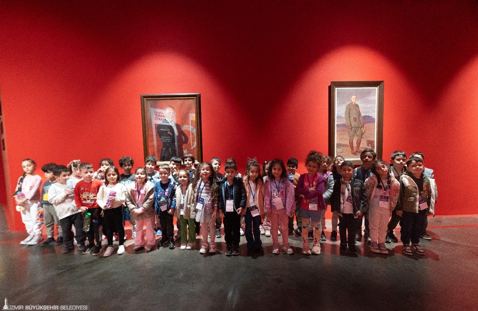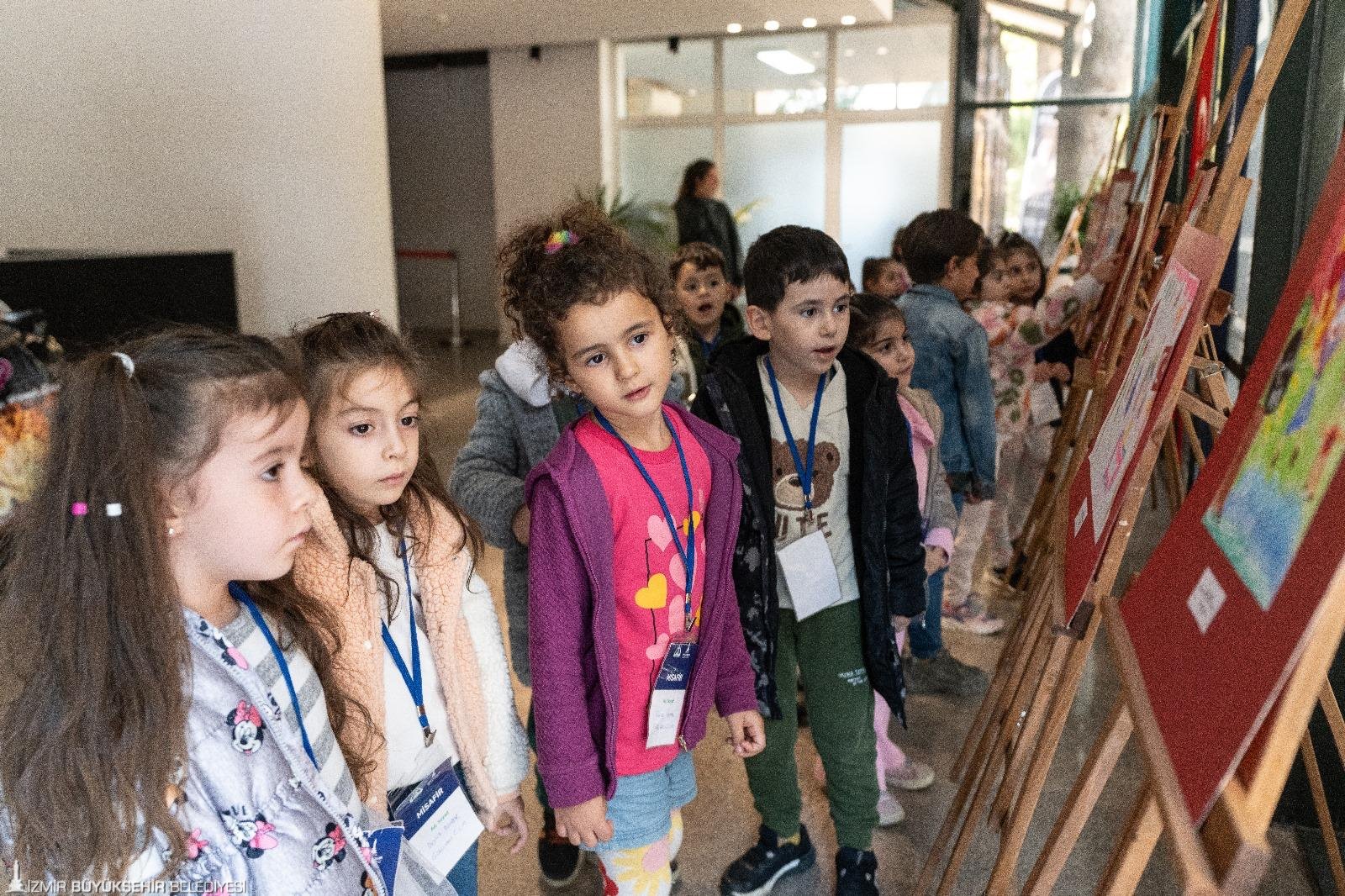 Atatürk portresinin birbirinden güzel renklerle donatıldığı, Cumhuriyet coşkusunun renkli çiçekler, bayraklar, rengarenk gökkuşağı ile anlatıldığı eserler öğrenci grupları, sergiyi gezen büyük küçük herkes tarafından büyük beğeni topladı. Yuvamız İzmir çocukları Ata’larına olan özlemlerini anlattıkları resimlerini de 10 Kasım’dan itibaren yine aynı yerde sergileyecek.