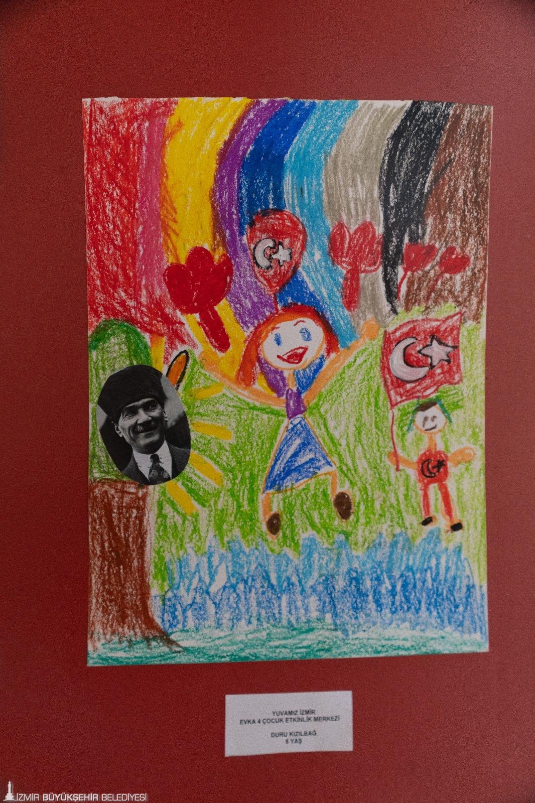 İzmir genelinde 22 merkezle hizmet veren İzmir Büyükşehir Belediyesi İZELMAN AŞ bünyesindeki Yuvamız İzmir Çocuk Etkinlik Merkezleri’nde eğitim gören çocuklar Cumhuriyet sevgilerini ve Ata’larına olan özlemlerini resme döktü. Çocukların yaptığı resimlerden oluşan “Cumhuriyet” sergisi,  Kültürpark Atlas Pavyonu’nda “Ve Mavi Gözleri Çakmak Çakmaktı” Atatürk Sergisi ve dijital sanatın büyüleyici örneklerinden Refik Anadol’un “Şifanın Algısı” ve “Makine Rüyaları: Ege” sergileri ile birlikte alanın giriş kısmında yerini aldı.