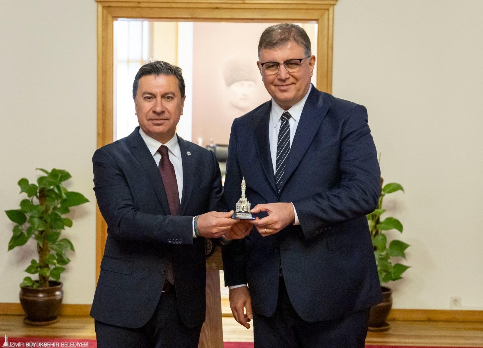 Çalıştay nedeniyle Muğla’ya gelen Başkan Tugay, çalıştay öncesinde Muğla Büyükşehir Belediye Başkanı Ahmet Aras’ın makamını da ziyaret ederek anı defterini imzaladı. Başkan Aras Başkan Tugay’a Atatürk portresi hediye ederken, Başkan Tugay da Başkan Aras’a Saat Kulesi objesi takdim etti. Başkan Tugay, çalıştayın ardından encümen toplantısına da katıldı.