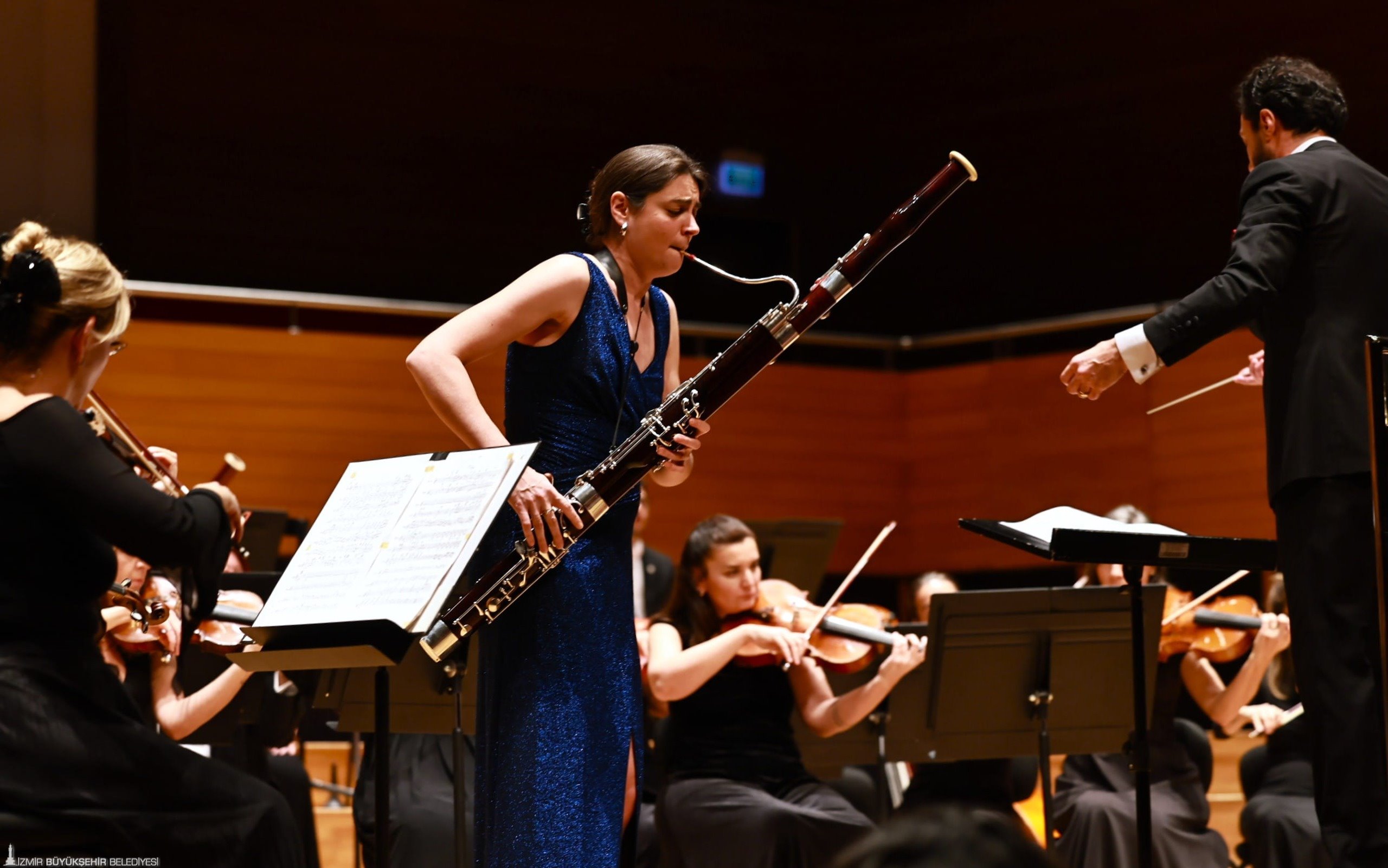 Fransız fagot sanatçısı Sophie Dervaux, İzmir Devlet Senfoni Orkestrası (İZDSO) ile birlikte İzmir Büyükşehir Belediyesi Ahmed Adnan Saygun Sanat Merkezi'nde sahne aldı. Azerbaycanlı şef Fuad Ibrahimov’un yönetiminde gerçekleşen konser, katılımcılara unutulmaz bir müzik ziyafeti yaşattı.