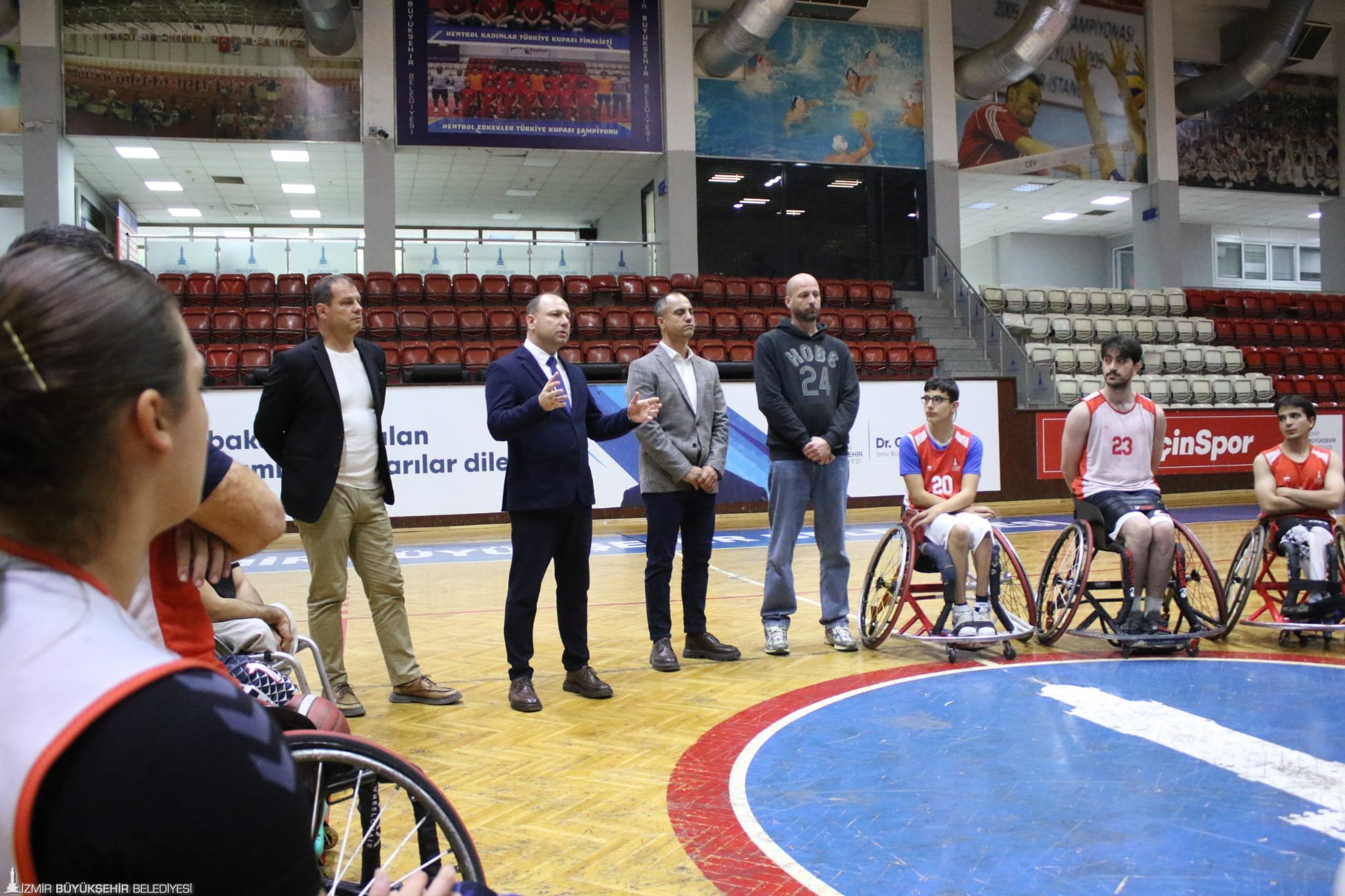 İzmir Büyükşehir Belediyesi Spor Kulübü Başkanı Berkhan Alptekin, 2025–2026 sezonu hazırlıklarını Celal Atik Spor Salonu’nda sürdüren İzmir Büyükşehir Belediyesi Spor Kulübü Tekerlekli Sandalye Basketbol Takımı’nı, antrenmanda ziyaret etti. Yeni sezon öncesi sporcularla tek tek sohbet eden ve başarı dileklerini ileten Başkan Alptekin, takımın sezon boyunca fair-play ruhuyla mücadele edeceğine inandığını belirterek sporculara moral verdi.