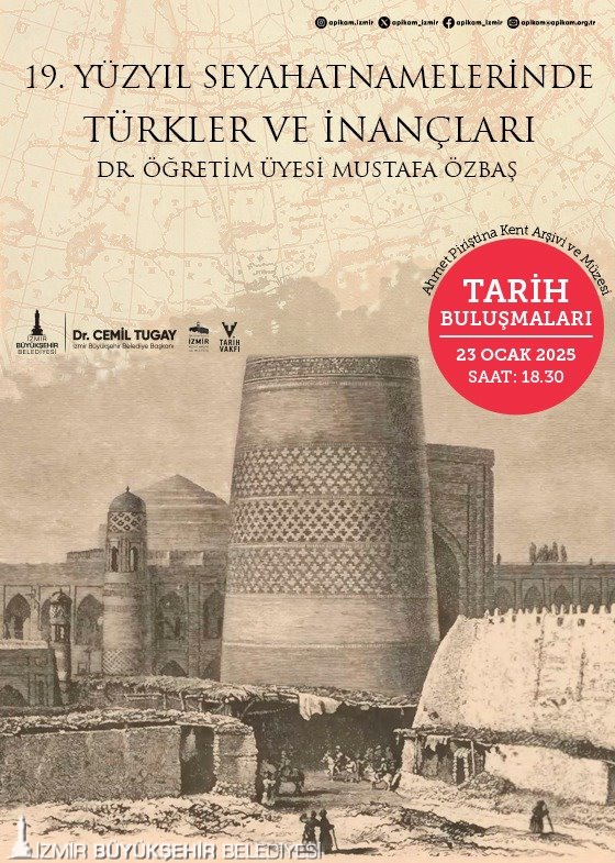 İzmir Büyükşehir Belediyesi Kent Arşivi ve Müzeler Şube Müdürlüğü’nün, Tarih Vakfı ile birlikte APİKAM’da gerçekleştirdiği "Tarih Buluşmaları" kapsamında her ay bir akademisyen siyasetten kültüre, sanattan toplumsal olaylara birçok farklı konuda İzmirlilerle buluşmaya devam ediyor. Söyleşi dizisinin bu ayki konuğu ise Dokuz Eylül Üniversitesi Buca Eğitim Fakültesi Türkçe ve Sosyal Bilimler Eğitimi Bölümü Öğretim Üyesi Dr. Mustafa Özbaş olacak. Özbaş’ın "19. Yüzyıl Seyahatnamelerinde Türkler ve İnançları" adlı söyleşisi, 23 Ocak Perşembe günü saat 18.30’da düzenlenecek. Söyleşide; İngiliz seyyahların 19. yüzyılda yayımlanan seyahatnamelerinde aktardığı bilgiler ışığında, Türklerin söz konusu dönem ve coğrafyalardaki kültürel özellikleri ve inançları kapsamlı bir şekilde ele alınacak.