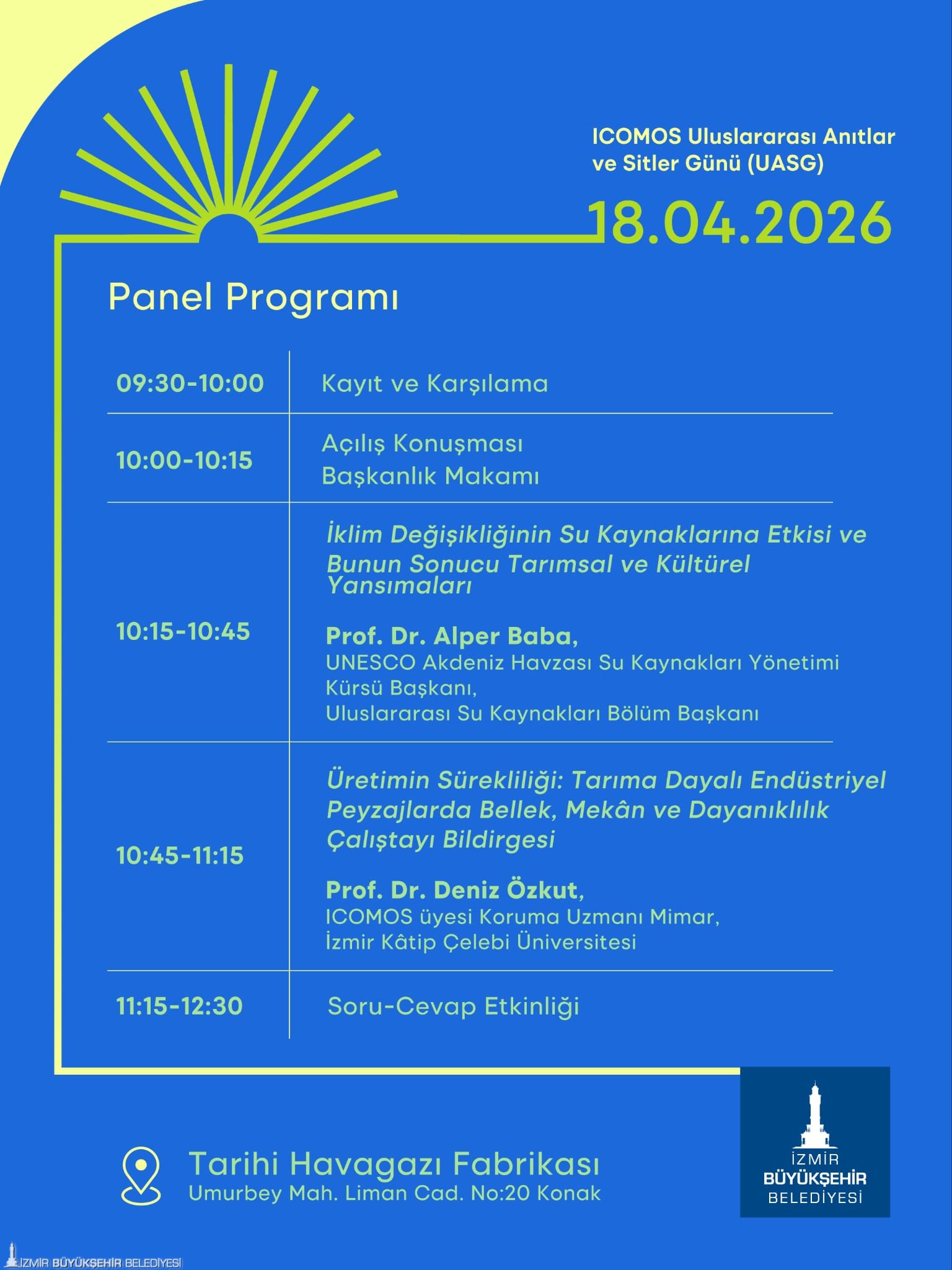 “Üretimin Sürekliliği: Tarıma Dayalı Endüstriyel Peyzajlarda Bellek, Mekân ve Dayanıklılık Çalıştayı ve Paneli”, her yıl 18 Nisan’da kutlanan “Uluslararası Anıtlar ve Sitler Günü” kapsamında İzmir Büyükşehir Belediyesi Kent Tarihi, Tanıtım ve Turizm Dairesi Başkanlığı ile Kırsal Hizmetler Dairesi Başkanlığı yürütücülüğünde hayata geçirilecek. 17-18 Nisan tarihleri arasında Tarihi Havagazı Fabrikası yerleşkesinde düzenlenecek etkinlik, İzmir’in tarıma dayalı endüstri mirasının hikâyesi, mekanları, zanaatları ve bu değerlerin günümüz risklerine dair kırılganlıklarını ele alan dört tematik eksen çerçevesinde şekillenecek. Farklı uzmanları bir araya getirecek 17 Nisan’daki çalıştay ile İzmir’in tarıma dayalı endüstri mirasının belgelenmesi, korunması ve sürdürülmesine ilişkin bilgi ve deneyimlerin aktarılması ve bu değerlerin geleceğe taşınmasına yönelik stratejileri içeren bildirgenin hazırlanması hedefleniyor. Çalışmalar, 18 Nisan’da izleyiciye açık panelde kamuoyuyla paylaşılacak. ICOMOS’un 2026 yılı “Çatışma ve Afet Bağlamında Yaşayan Mirasa Acil Durum Müdahalesi” teması çerçevesinde gerçekleştirilecek çalıştay ve panelde alanında uzman isimler de konuşmacı olarak yer alacak.