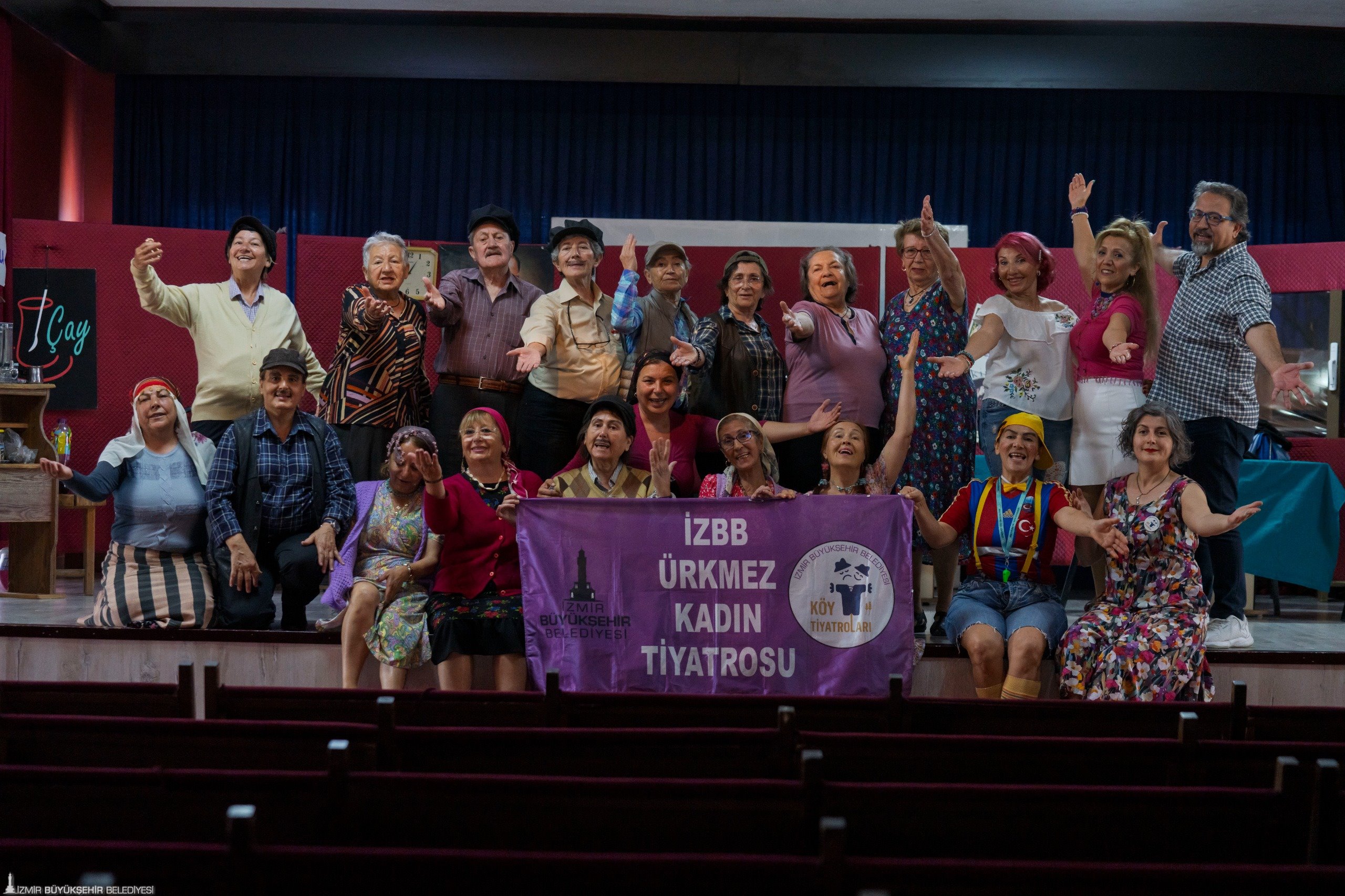 11 yıldır faaliyet gösteren, 3 yıl önce de İzmir Büyükşehir Belediyesi Köy Tiyatroları birimine bağlanan Ürkmez Kadın Tiyatrosu’nun oyuncularından 60 yaşındaki Gülay Erdoğan, 8 yıldır sahne tozu yutuyor. Arkadaşını tiyatro sahnesinde izledikten sonra oyuncu olmaya karar verdiğini belirten Erdoğan, 2021 yılında kansere yakalandığını ve hastalığı atlatmasında tiyatronun da etkisi olduğunu söyledi. Zor günler geçirdiğini dile getiren oyuncu, “Yoğun bakım sürecinde 3 ay tiyatrodan ayrı kaldım. Dördüncü ay tiyatroya yine geldim. Hastanede doktor beni iyileştirdi, başka bir doktor olan Başkanımız Dr. Cemil Tugay da beni bu tiyatro ile bir kez daha iyileştirdi. Tiyatroda olmaktan çok mutluyum. Ben ciddi bir hastalık geçirdim ama hiç ‘ben hastayım’ demedim. Dün ilacımı aldım, ardından Ödemiş’e gidip oyunumu oynadım. Bu sabah yine sahnedeyim” ifadelerini kullandı.