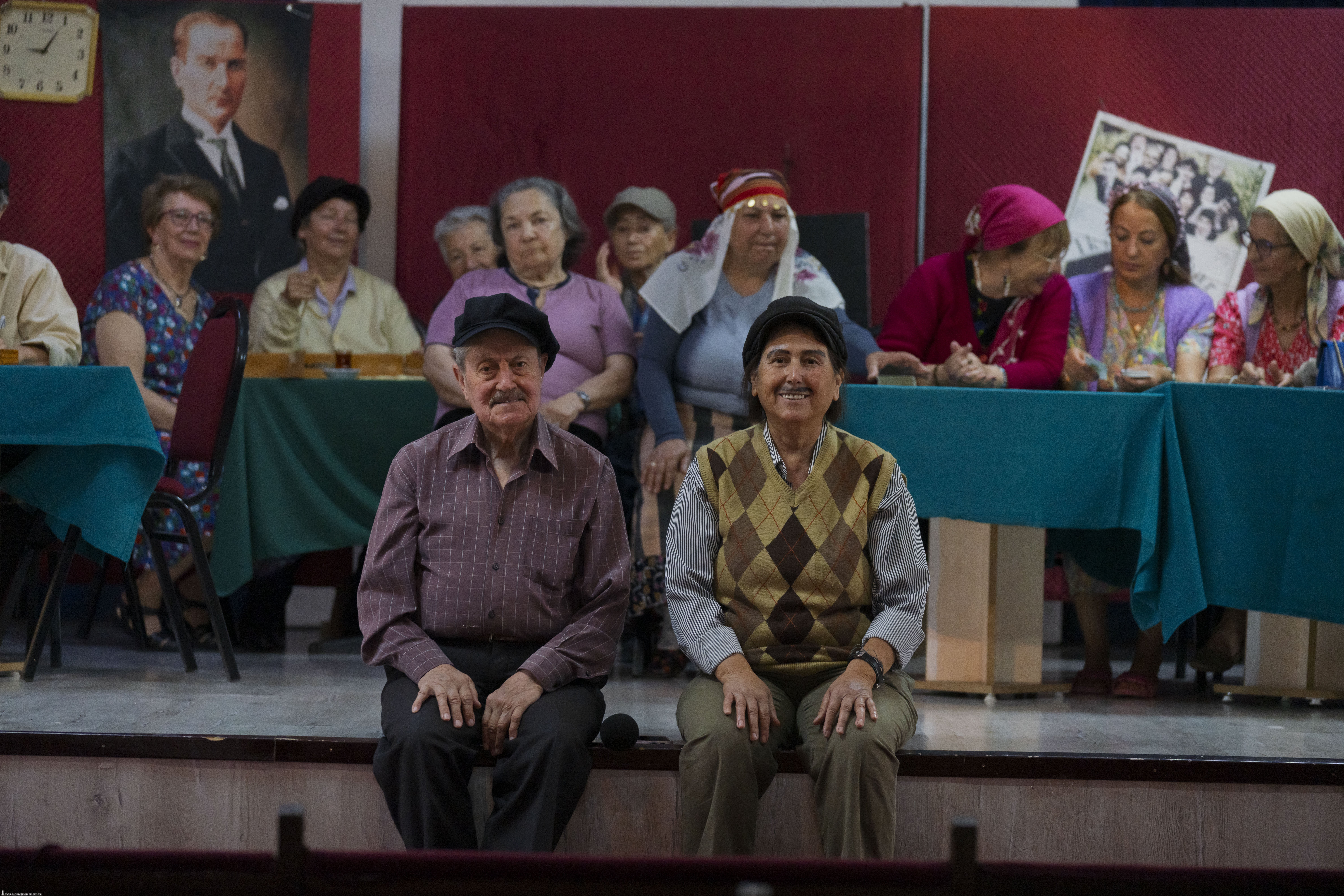 Ürkmez Kadın Tiyatrosu’nun en yaşlı oyuncusu 86 yaşındaki Müjgan Hasdemir, tiyatro sayesinde gençleşen oyuncular arasında yer alıyor. 11 yıl önce tiyatroya başladığını ifade eden Hasdemir, “Ben çeşitli kurslara geliyordum. Bir gün tiyatro kursu açılacağını duyduk ve katıldık. Bugüne dek yedi oyunda oynadım. İyi ki Vedat Hoca’yı tanıdım, ona minnet borçluyum. Çünkü hayatım değişti. Sabah hasta gibi kalkıyordum ama şu anda sağlıklıyım. Çünkü bir gayem var. Tiyatroya koşarak geliyorum. Burası bana gençlik aşısı oldu. Eğer evde kalsaydım belki de hayatta yoktum. Etrafımdan çok güzel tepkiler aldım, destek gördüm. Pek çok kişiden övgü aldım. Torunlarım çok mutlu, arkadaşlarına gururla bahsediyorlar” dedi.