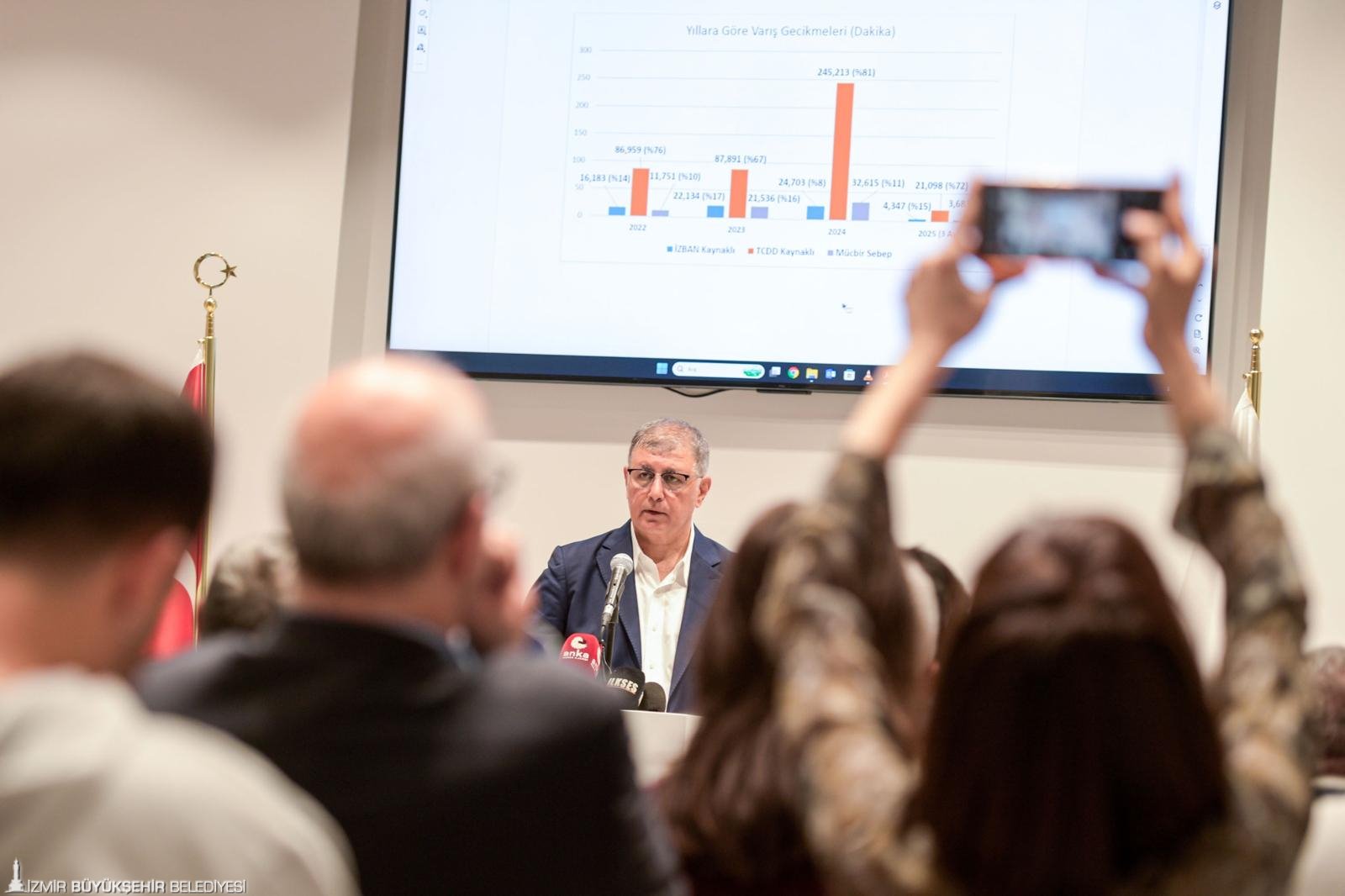 Tugay, İzmir'in kent içerisindeki en uzun ulaşım ağına sahip olan İZBAN'da yaşanan sefer gecikmelerine dair de yapılan araştırmanın sonuçlarını paylaştı. Göreve başladığı günden bu yana İZBAN yönetimindeki iki başlılık nedeniyle sıkıntılar yaşadıklarına dikkat çeken Başkan Tugay, şunları söyledi: