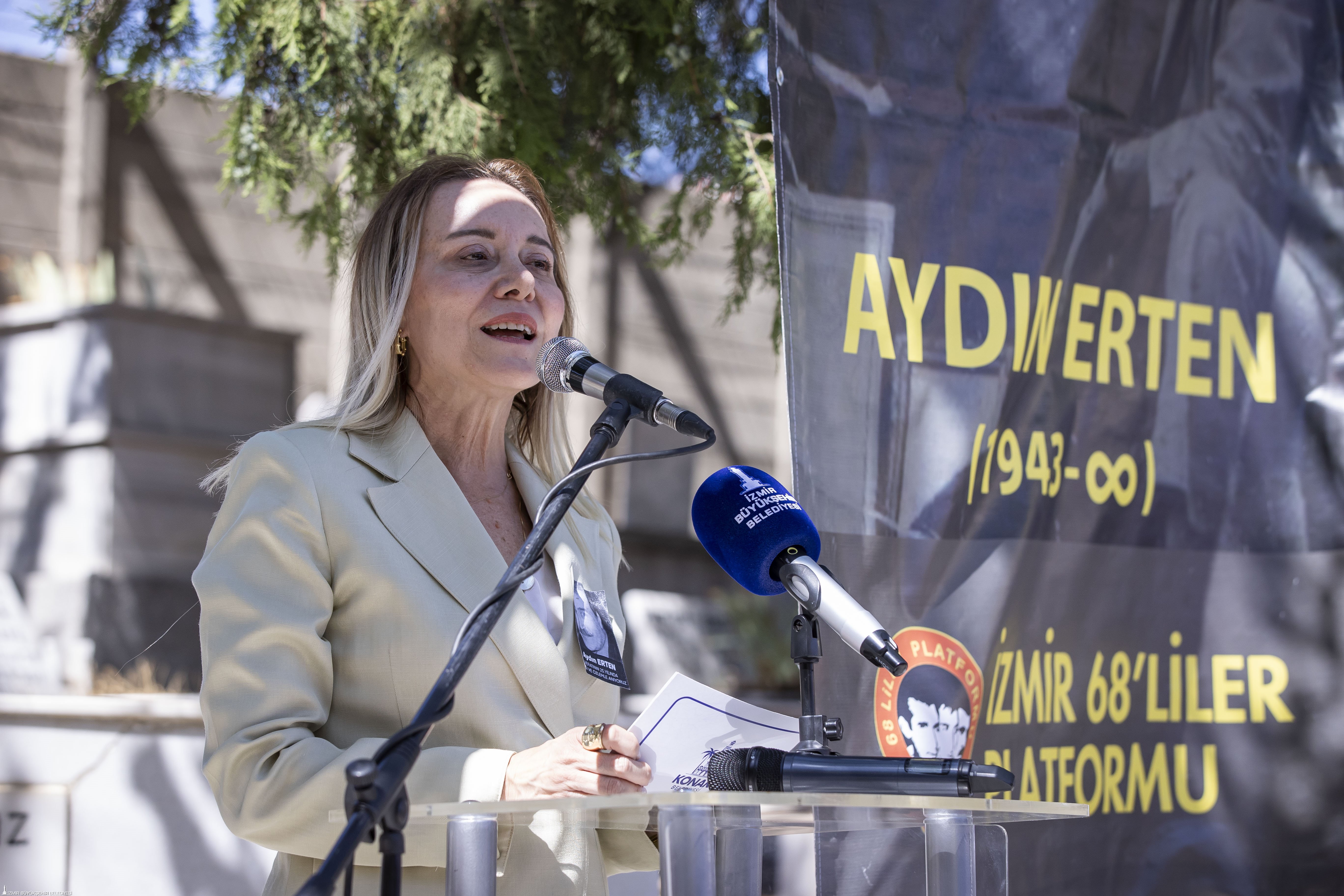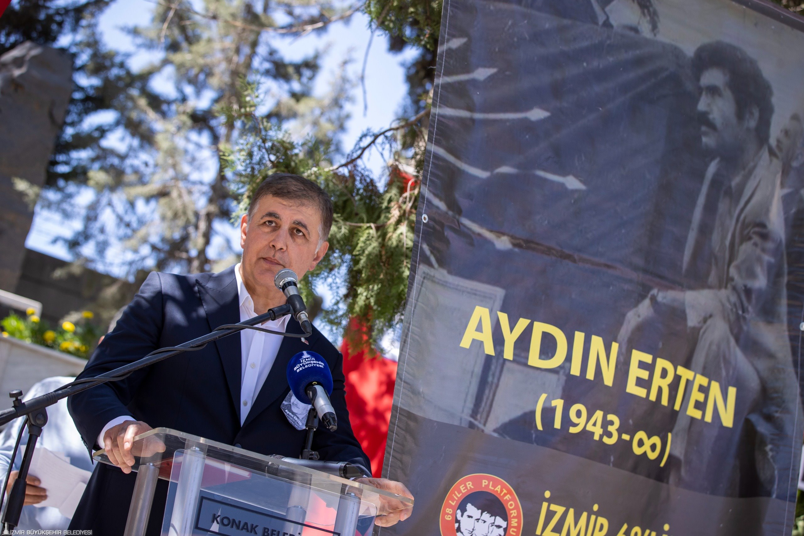 Konak Belediye Başkanı Nilüfer Çınarlı Mutlu ise “Bazı insanlar vardır, sadece yaşadıkları döneme değil geleceğe de iz bırakırlar. Biz bugün böyle bir insanın anmasındayız. Aradan çeyrek yüzyıl geçse de bugün burada halkın başkanı Aydın Erten’i saygı ve sevgiyle anıyoruz. O yaşamın içine, belediyeciliğin temeline halkı yerleştirdi. Boyun eğmeyen direnişçi ruhun simgesiydi. Bizler bugün o değerli mirasın izinde yürüyoruz” dedi.