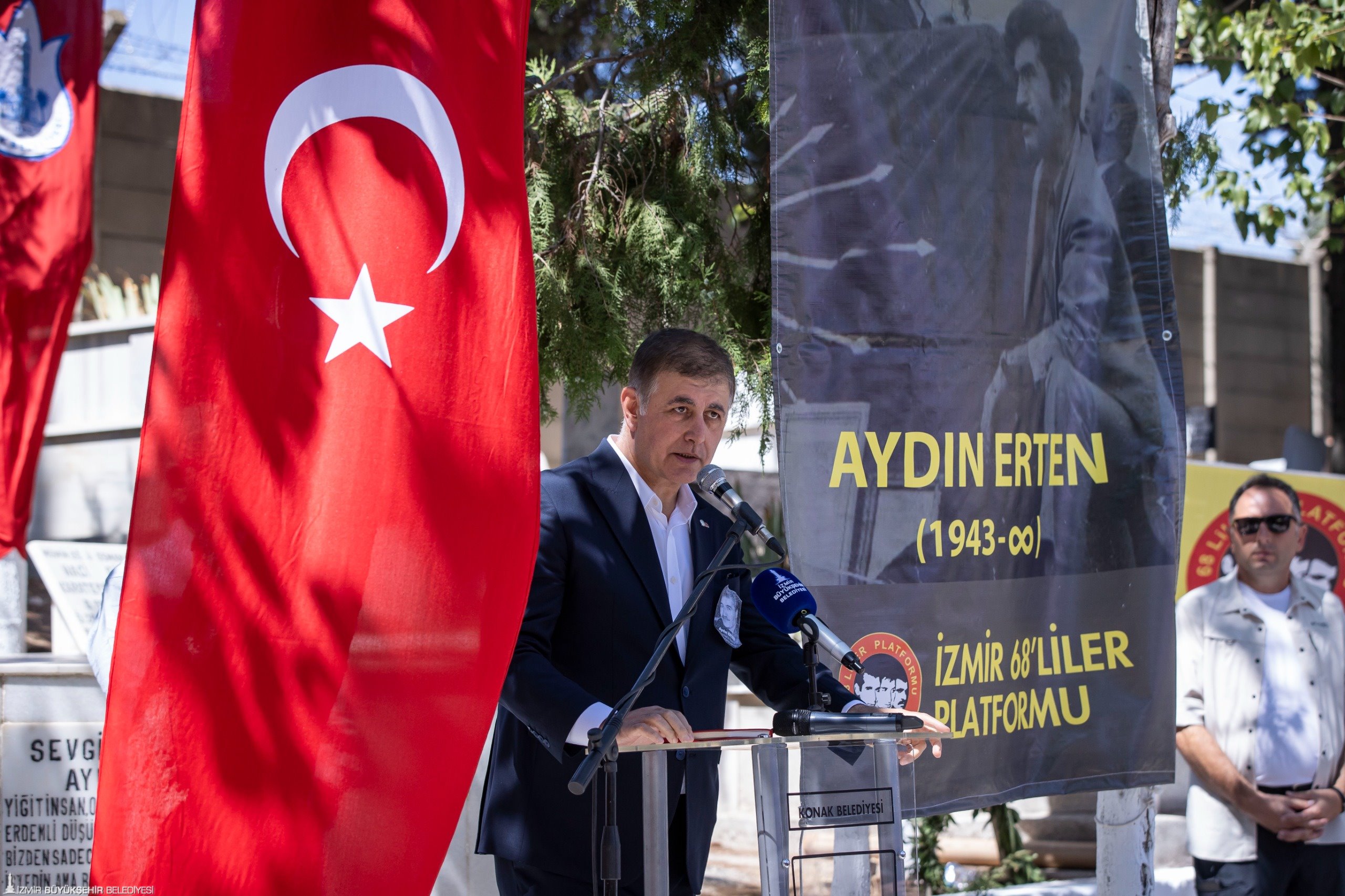 CHP Konak İlçe Başkanı Ozan Ali İlgazi, “Yoldaşımız, ağabeyimizi 2000 yılında maalesef kaybettik. Onun aramızdan gidişi sadece bedeniyle oldu. Aydın Erten halen burada, sokaklarımızda, Gültepe’de, Konak’ta yaşamaya devam ediyor. Aydın Erten sadece bir belediye başkanı değil, halkla birlikte yürüyen bir liderdi. Başkan koltuğundan çok halkın arasında olmayı, yoldaşlık etmeyi seven biriydi. Onun adı güven ve umut demekti” diye konuştu.
