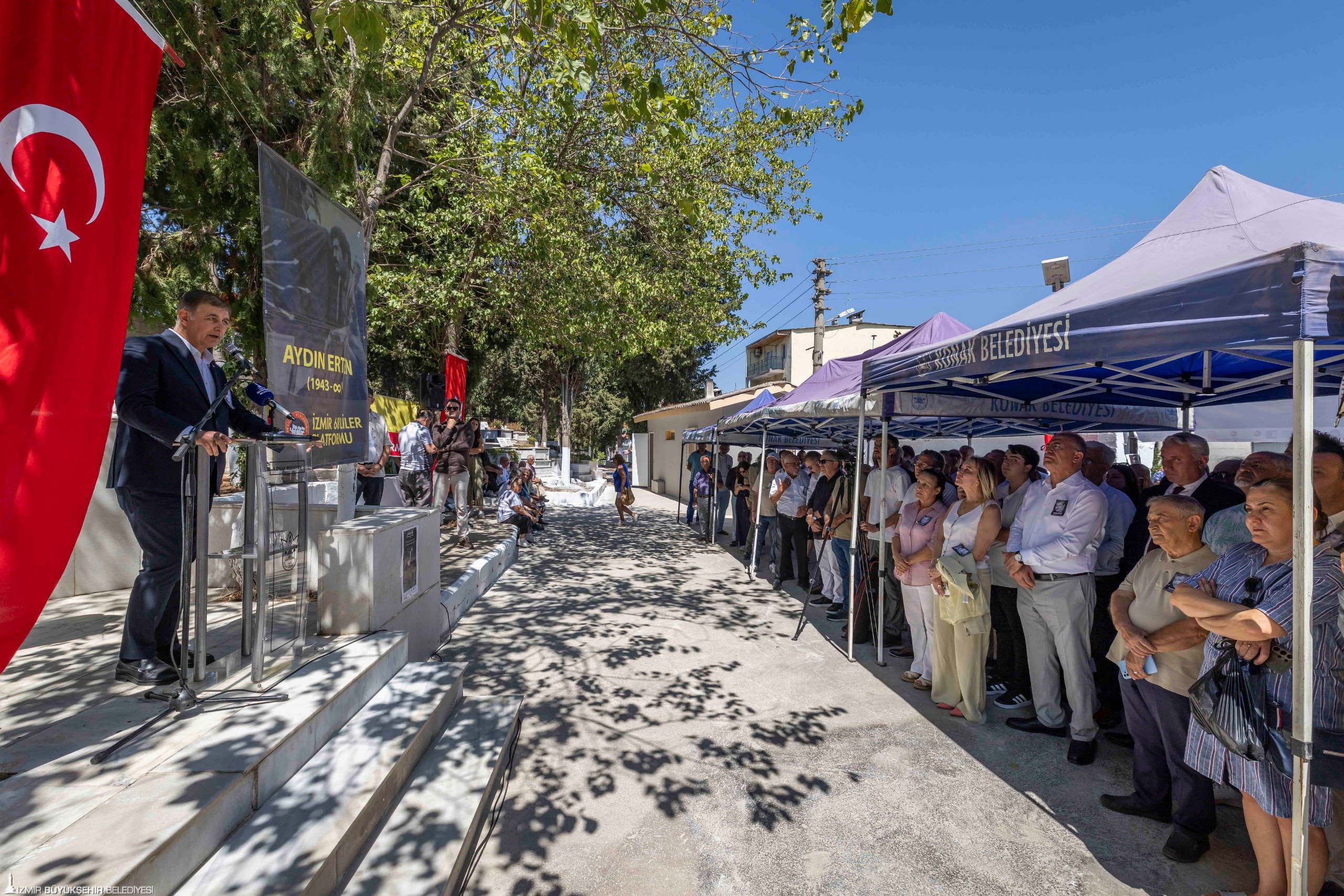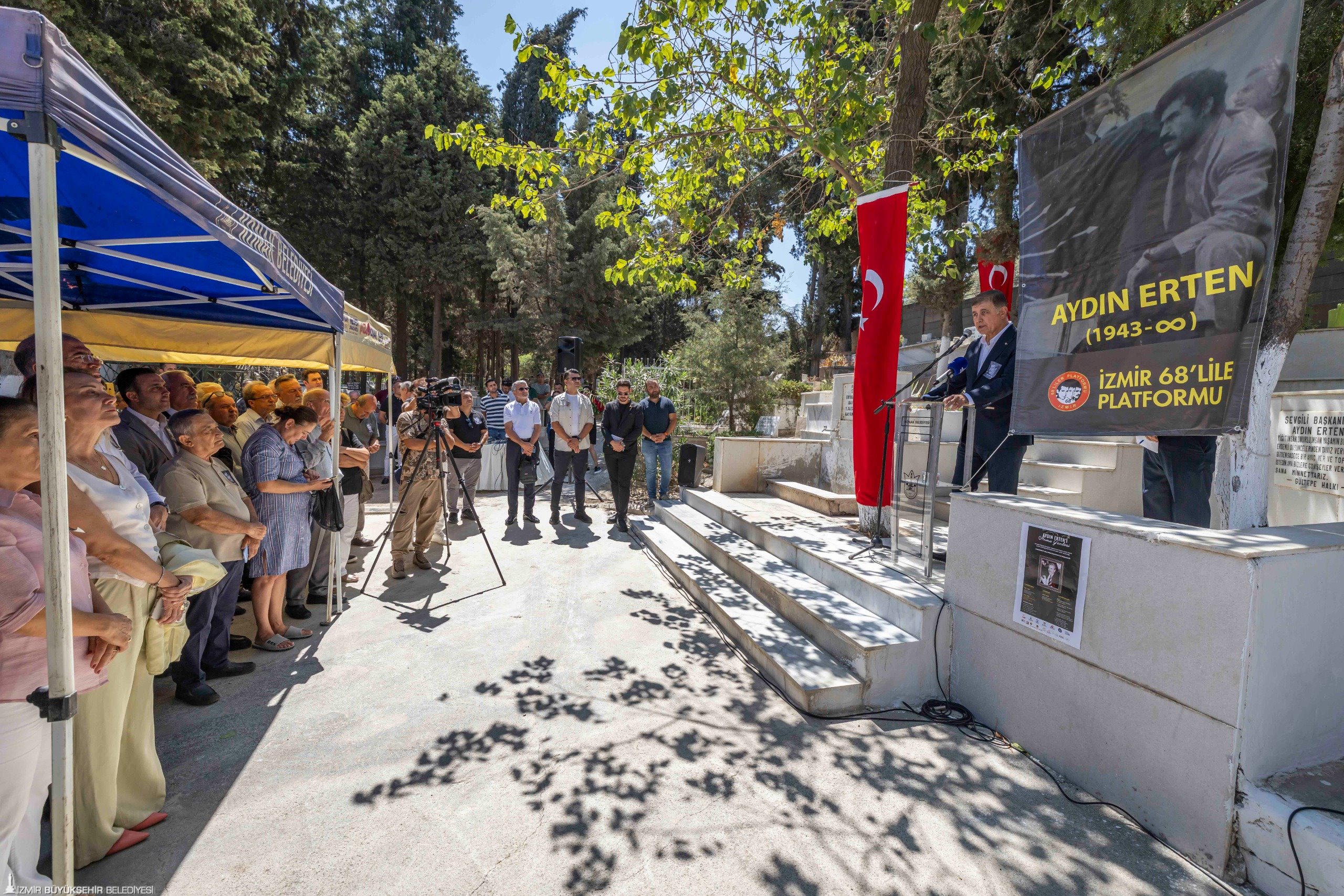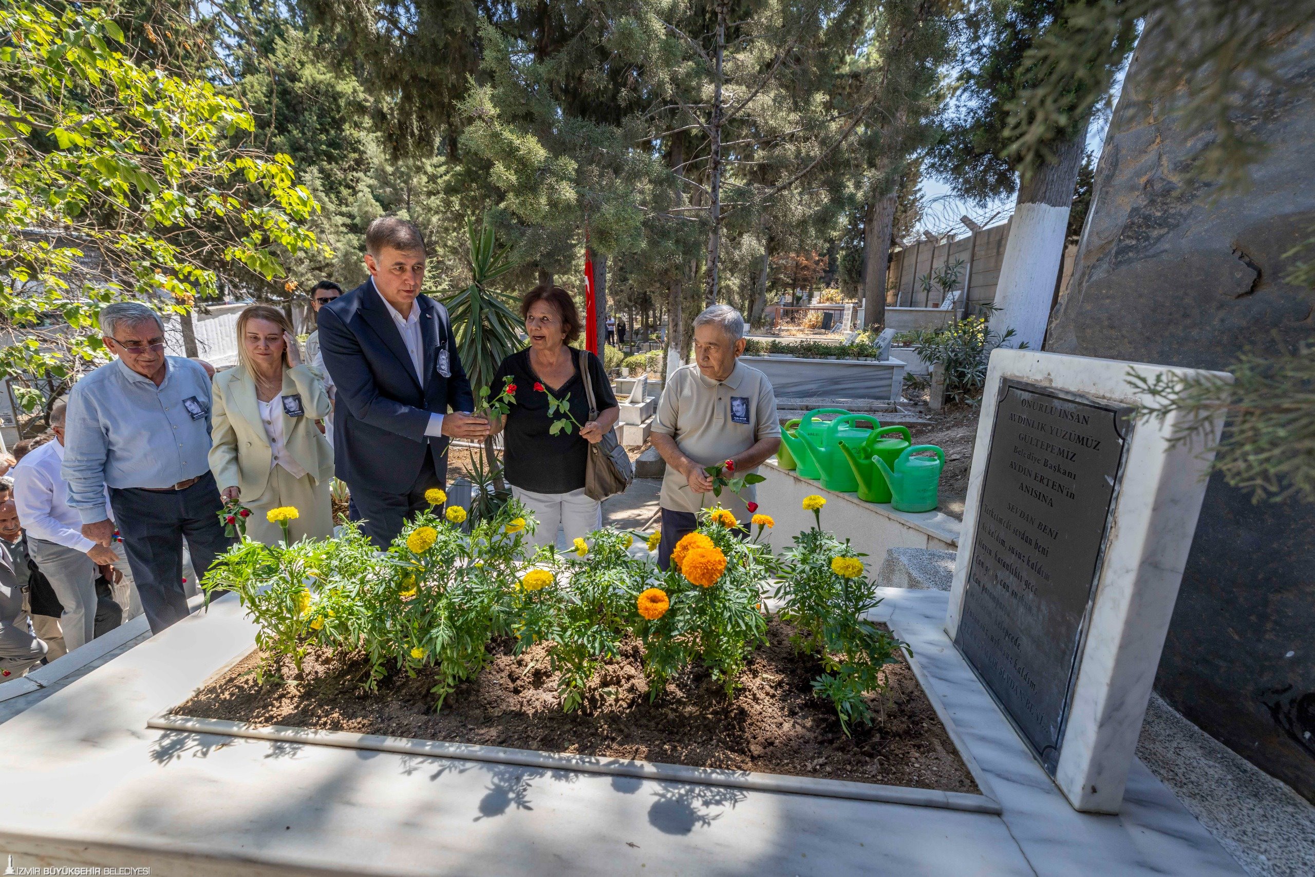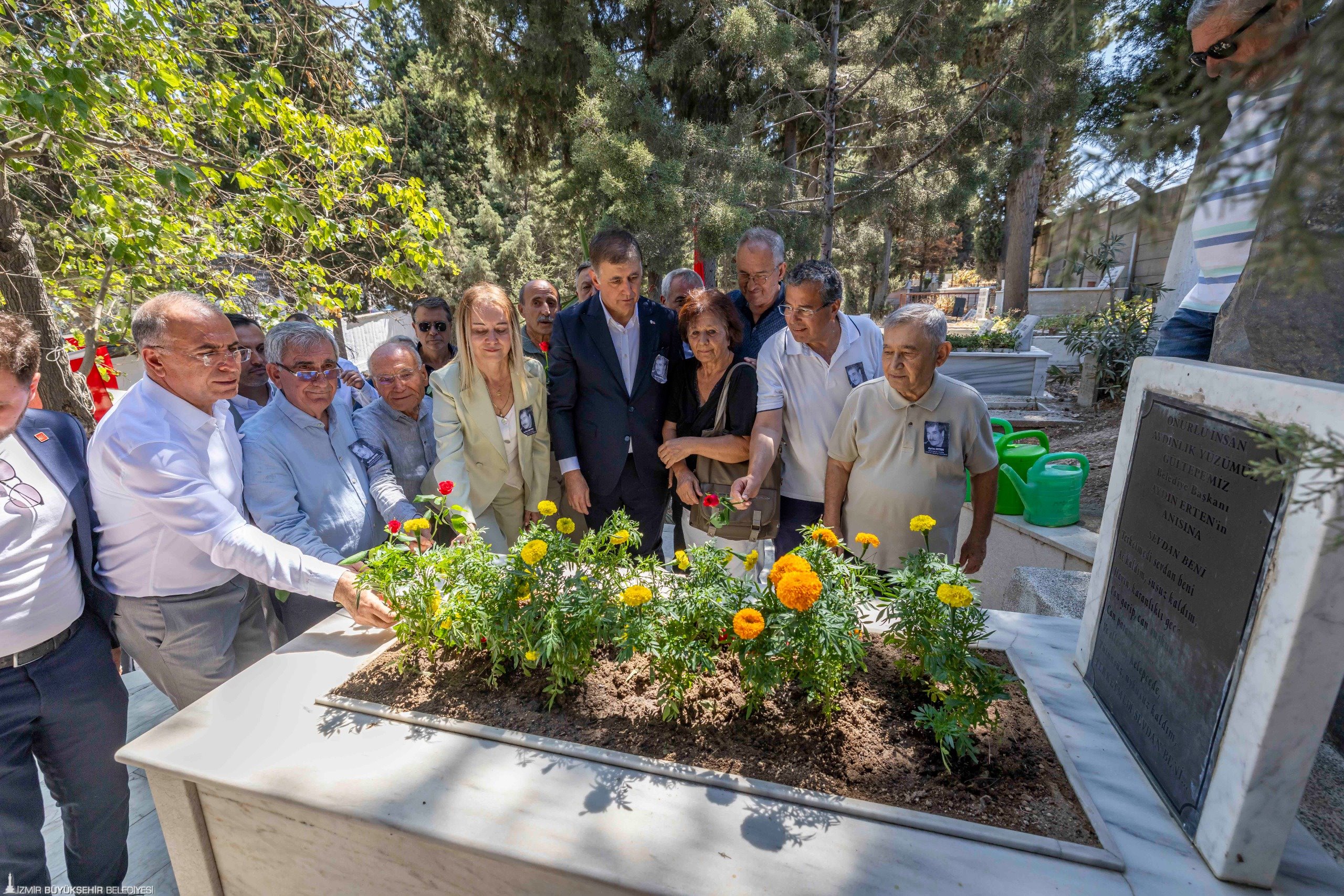 İzmir Büyükşehir Belediye Başkanı Dr. Cemil Tugay, eski Gültepe Belediye Başkanı Aydın Erten’in ölümünün 25’inci yılı nedeniyle Gültepe Toros Mezarlığı’nda düzenlenen anma törenine katıldı. Konak Belediyesi ve İzmir 68’liler Platformu tarafından düzenlenen törende Konak Belediye Başkanı Nilüfer Çınarlı Mutlu, Gaziemir Belediye Başkanı Ünal Işık, CHP İzmir İl Başkan Yardımcısı Orhan Polat, Cumhuriyet Halk Partisi (CHP) Konak İlçe Başkanı Ozan Ali İlgazi, CHP İzmir il yöneticileri, CHP İzmir eski milletvekilleri Musa Çam, Tacettin Bayır, Atila Sertel, Sabri Ergül, İzmir Büyükşehir Belediyesi Meclisi CHP Grup Başkan Vekili Altan İnanç, İzmir 68’liler Kuşağı Platformu Başkanı Ertuğrul Gezenoğlu, Gültepe Kentsel Değişim Kültürel ve Dayanışma Derneği Başkanı Ali Yılmaz, Konak Kent Konseyi Başkanı Hamit Mumcu, belediye meclisi üyeleri, Erten ailesinin mensupları ve vatandaşlar yer aldı. Törende konuşmacılar Erten’in yürüttüğü emek mücadelesi üzerinden önemli mesajlar verdi. Konuşmaların ardından Aydın Erten’in mezarına karanfil bırakıldı.
