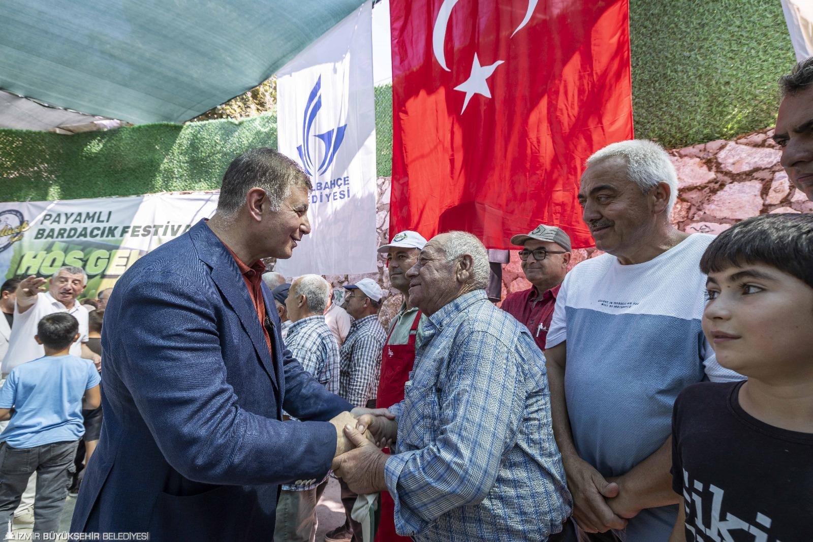 Tarımın sıkıntıda olduğunu ifade eden Başkan Tugay, “Ben Mustafa Günay'a bu alanda gösterdiği duyarlılıklar için teşekkür ederim. Üreticilerimizin sıkıntıda olmalarına gönlümüz asla razı olmaz. İzmir Büyükşehir Belediyesi olarak alım yaparak üreticimize katkıda bulunuyoruz. İzmir'in 600 köyü var, zaman zaman ilçe belediyelerimizin, zaman zaman Büyükşehir Belediyemizin desteklerine ihtiyaç duyuyor. Bu anlamda önemli görevlerimiz olduğunu biliyoruz. İzmir, Türkiye'nin tarım potansiyeli açısından önemli şehirlerinden biri. En fazla tarımsal üretim yapılan ikinci şehir. Bir tarım kenti kimliği var. İzmir'i insanlar metropol şehri, denizi, körfeziyle, turistik ilçeleriyle bilir ama aslında gerçekten İzmir bir tarım, ticaret şehridir. O nedenle biz üreticimizin Küçük Menderes'te, Bakırçay'da, Gediz'de, Yarımada'da olsun, her yerde her zaman sıkıntısı olduğunda yanında olmaya çalışıyoruz. Kararlıyız. Burada olduğu gibi Payamlı Bardacık Festivali'nde olduğu gibi kültürel değerlerimizi koruyacağız, onları gelecek kuşaklara en doğru ve sağlıklı haliyle taşıyacağız. Bu topraklarda tarımın, hayvancılığın ölmesine asla izin vermeyeceğiz” diye konuştu.