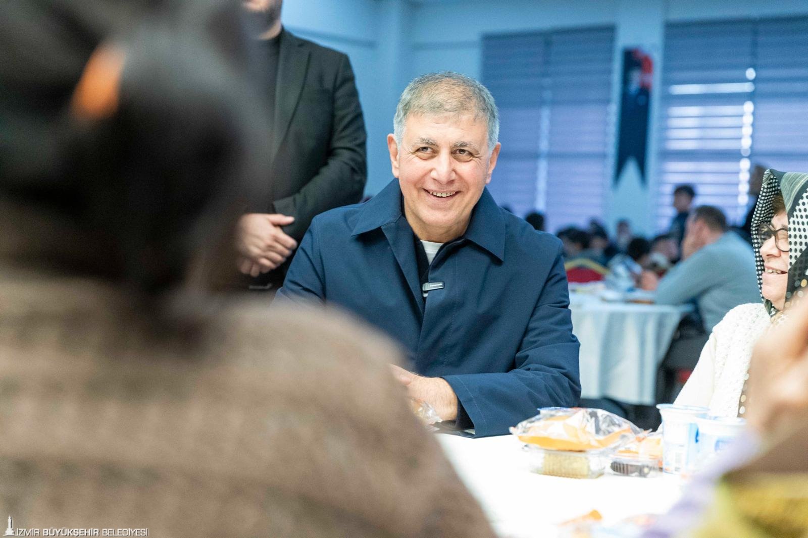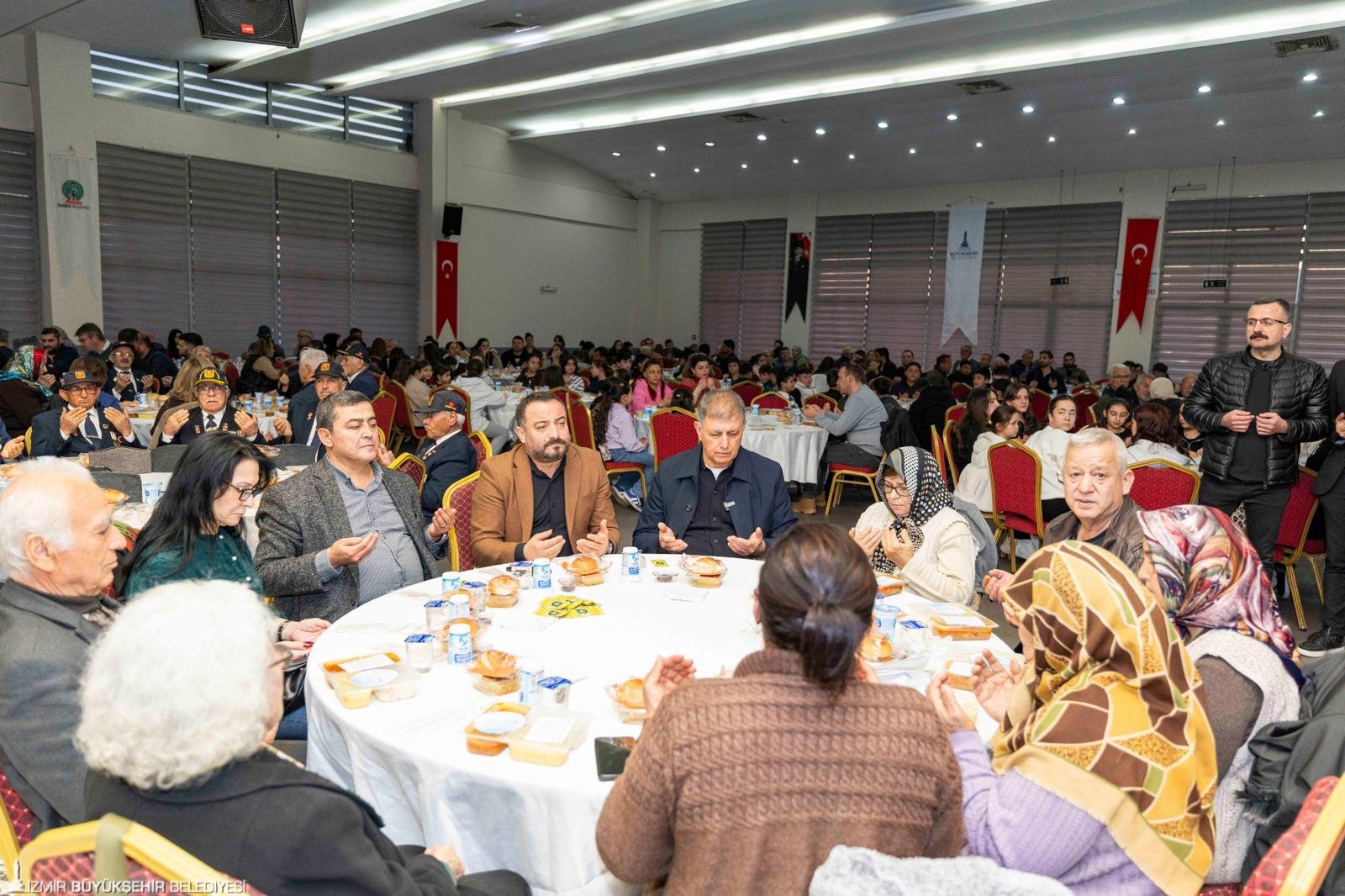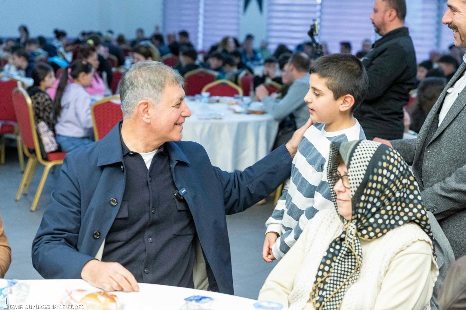 İzmir Büyükşehir Belediye Başkanı Dr. Cemil Tugay, “Sizlerle burada iftar açmak benim için büyük bir onur, büyük bir mutluluk. Biliyorum ki burada birlik, beraberlik içinde bu sofraların etrafında oturmamız, aynı duyguyu paylaşmamız, el açıp Allah’a şükretmemiz, dua etmemiz bir bolluk bereket vesilesi olacak. Ben diliyorum ki; o bereket, bolluk bütün ülkemizin, tüm İzmirli hemşehrilerimizin üzerine olsun. Bizler Allah’a inanıyoruz, onun bize yardım edeceğine de inanıyoruz. Onun için dualarımızı ediyoruz ama şunu da biliyoruz, sadece dua etmekle olmaz, çalışmamız, çok çalışmamız gerekiyor. Biz bu düşüncelerle yola çıktık, sizlerden aldığımız manevi güçle, o destekle yolumuz devam ediyoruz” dedi.
