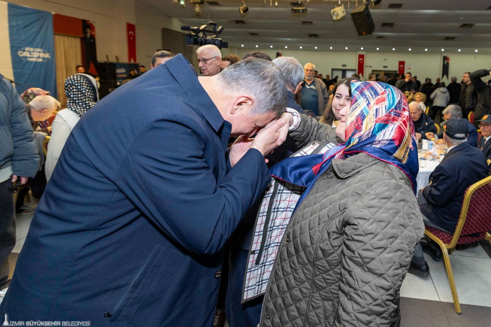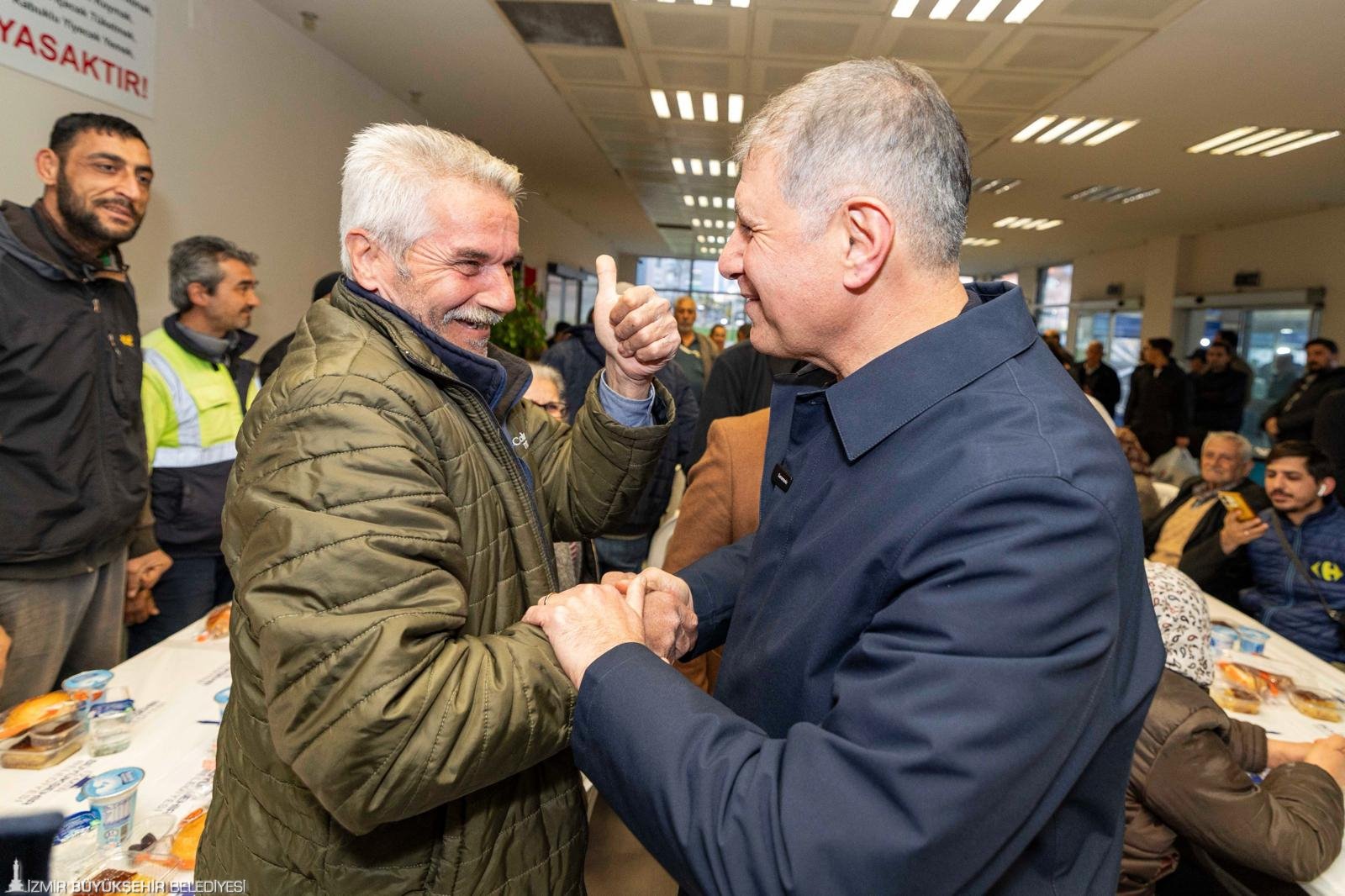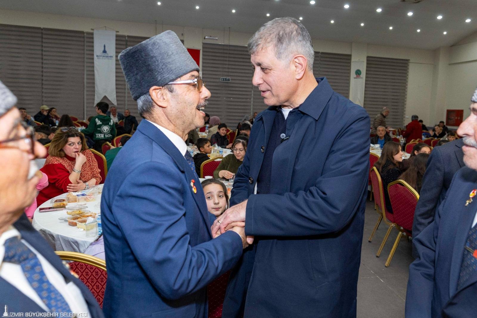 İzmir Büyükşehir Belediye Başkanı Dr. Cemil Tugay, “Sizlerle burada iftar açmak benim için büyük bir onur, büyük bir mutluluk. Biliyorum ki burada birlik, beraberlik içinde bu sofraların etrafında oturmamız, aynı duyguyu paylaşmamız, el açıp Allah’a şükretmemiz, dua etmemiz bir bolluk bereket vesilesi olacak. Ben diliyorum ki; o bereket, bolluk bütün ülkemizin, tüm İzmirli hemşehrilerimizin üzerine olsun. Bizler Allah’a inanıyoruz, onun bize yardım edeceğine de inanıyoruz. Onun için dualarımızı ediyoruz ama şunu da biliyoruz, sadece dua etmekle olmaz, çalışmamız, çok çalışmamız gerekiyor. Biz bu düşüncelerle yola çıktık, sizlerden aldığımız manevi güçle, o destekle yolumuz devam ediyoruz” dedi.