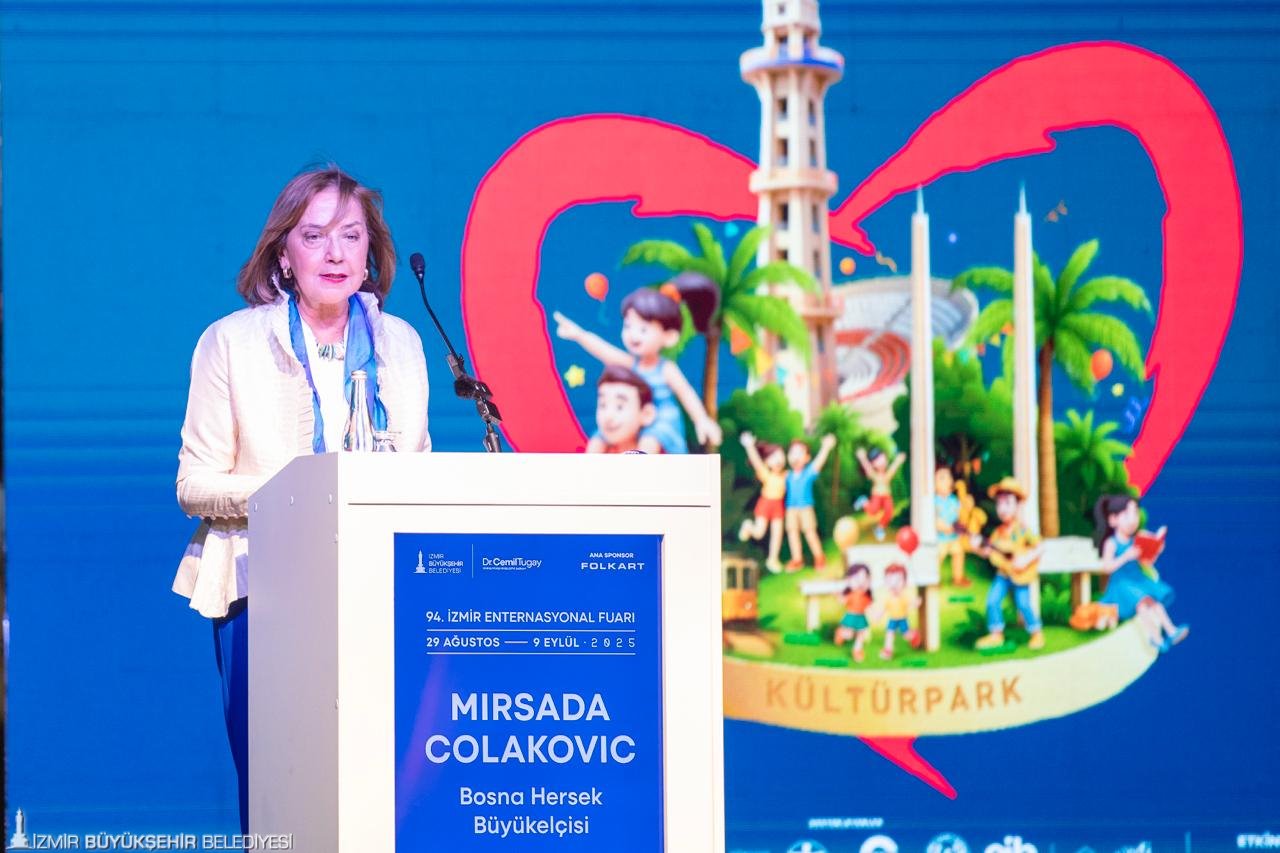 Onur konuğu ülke Bosna Hersek’in Büyükelçisi Mirsada Colakovic, “Biz aslında bu olağanüstü etkinlikte, bu canlı ve tarihi şehirde olmaktan gurur duyuyoruz. İzmir köklü mirası ve ileriye dönük vizyonuyla sadece Türkiye’nin ekonomik anlamda temel taşlarından biri değil, aynı zamanda uluslararası iş birliğinin güçlü bir sembolüdür. İEF, mütevazı bir ticaret sergisi olarak başlamış, bugün kültürel ve ekonomik değişimin küresel bir platformuna dönüşmüştür. Bu fuar diplomasinin sadece büyükelçilik ya da bakanlıklarda değil, fuarlarda, müzikte, yemekte, diyalogda paylaşılan deneyimlerle de inşa edildiği gösterir. Kalıcı dostluklar kurulur, ortaklıklar tesis edilir ve barış güçlenir. Bu yılın teması olan Balkan şehirleri, bizim için son derece anlamlı. Balkanlar zenginlikleri, karmaşıklıkları ile uzun süredir hem canlı kültürlerin hem de tarihi zorlukların merkezi olmuştur” dedi. Mirsada Colakovic, halklar arasında derin dostluğun temellerini atan bireyleri de hatırlamak gerektiğini belirterek “Bu kişilerden biri, Bosna savaşının en karanlık günlerinde hayat kurtaran, şefkati ve cesareti ile tanınan merhum Kemal Baysak’tır. Baysak, Bosna Hersek’te yaşan dehşete sırt çevirmemiş, savaştan kaçanlara barınak, onur ve umut sunmuştur. İsmi Bosna’da ve çok sevdiği Karşıyaka’da sokaklarda ve parklarda yaşatılmaktadır. Bosna Hersek adına ailesine ve böyle birini yetiştiren İzmir’e sonsuz şükranlarımızı sunuyorum. Bosna Hersek ile Türkiye arasındaki bağlar diplomatik olmanın ötesinde adeta ailevidir. Bu fuarı yeni ortaklıkları hayal etmek, eski dostlukları yenilemek, barış, iş birliği ve ortak refah değerlerimizi yeniden teyit etmek için kullanalım. Bu fırsat için bir kez daha teşekkür ediyoruz" diyerek ziyaretçileri Bosna Hersek pavyonuna beklediklerini ifade etti.