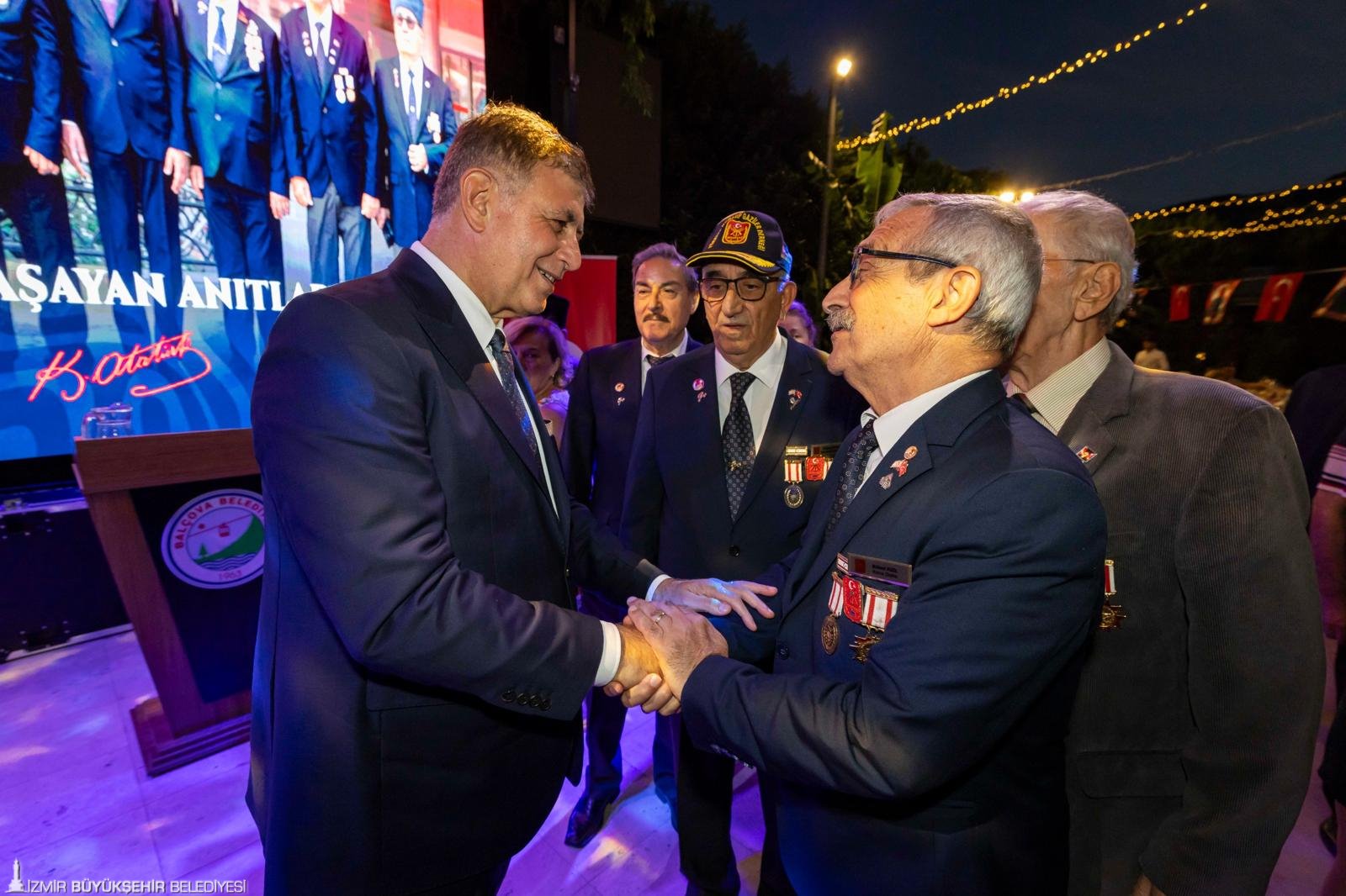 İzmir Büyükşehir Belediye Başkanı Dr. Cemil Tugay, Balçova Belediyesi’nin 19 Eylül Gaziler Günü için düzenlediği yemeğe katıldı. Babası Cemal Tugay’ın da gazi olduğunu hatırlatan Başkan Dr. Cemil Tugay, “Gazi Mustafa Kemal Atatürk’ün sözüyle ‘Yaşayan Anıtlar’, sizler yani gazilerimiz, her gün el üstünde tutulmayı hak ediyorsunuz. Ben gazilerimizin büyük bir aile olduğunu, birbirlerine sevgi ve saygıyla bağlı olduğunu biliyorum” dedi.