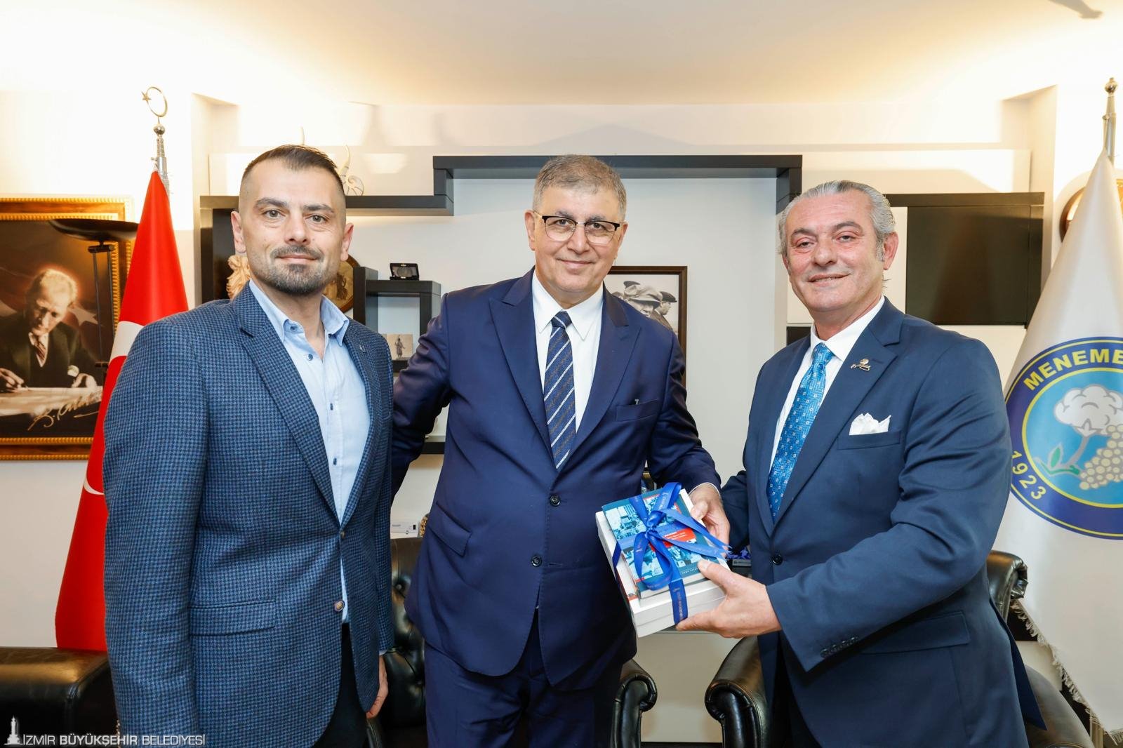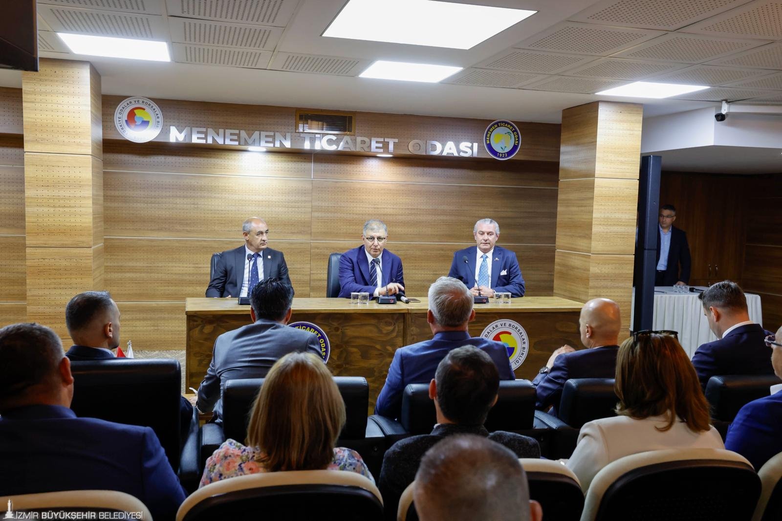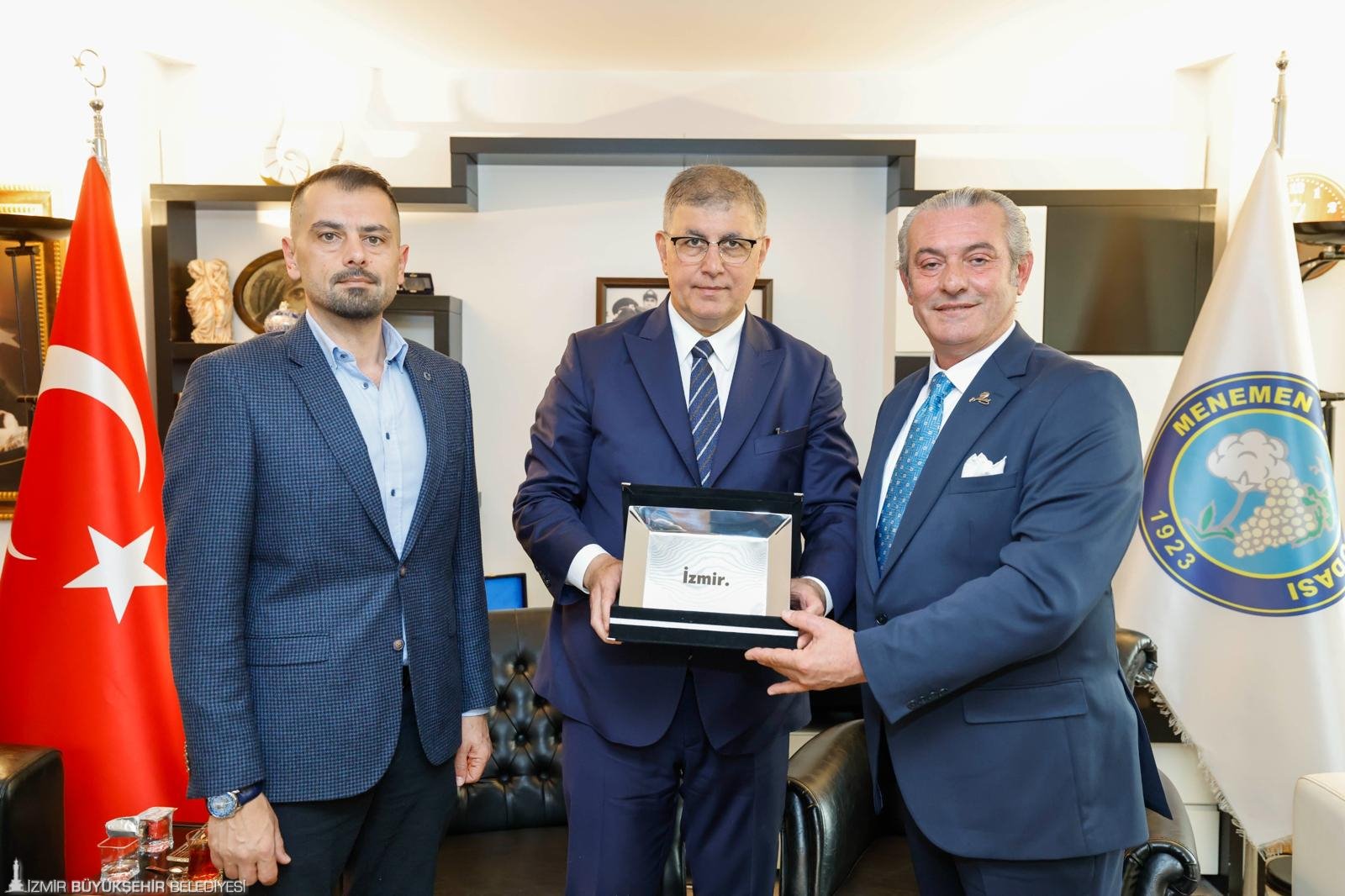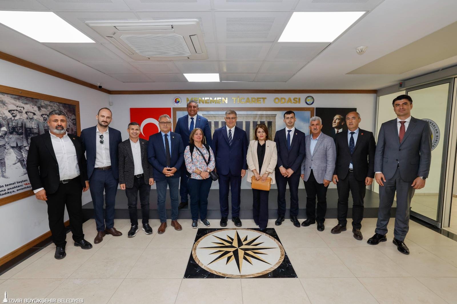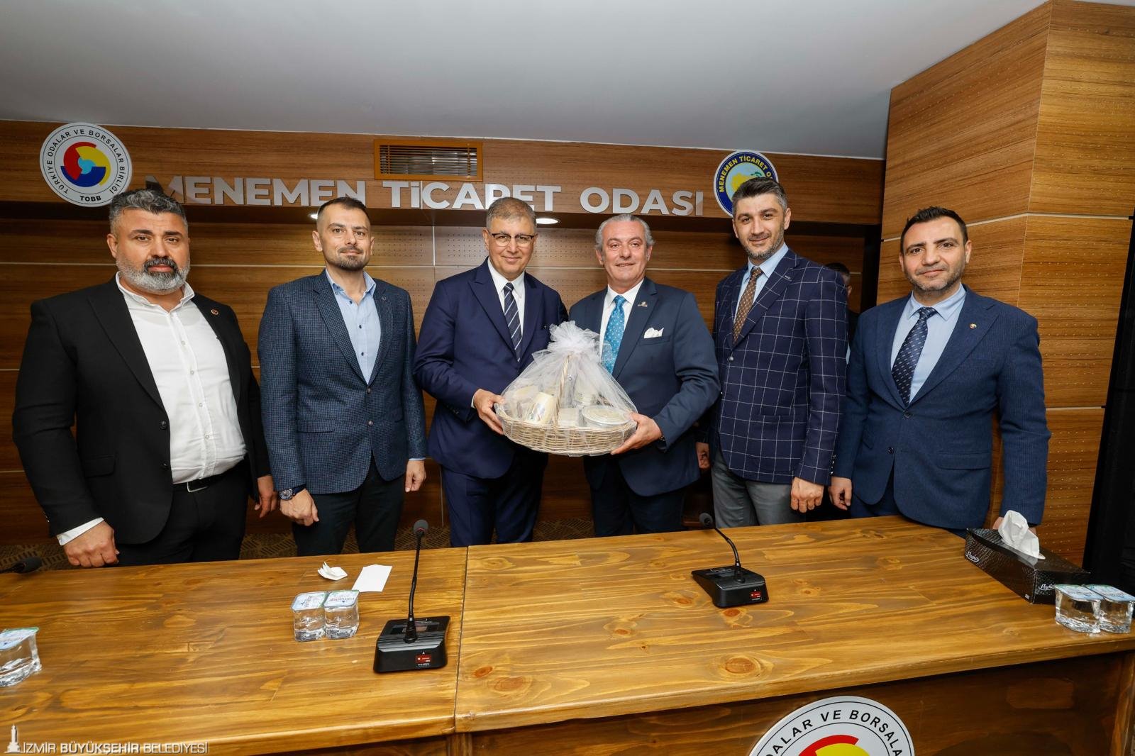 İzmir Büyükşehir Belediye Başkanı Dr. Cemil Tugay, Menemen Ticaret Odası'nı ziyaret etti. Menemen Ticaret Odası Başkanı İzzet Süsoy ve oda yönetiminin karşıladığı Tugay'a, CHP Menemen İlçe Başkanı Hüseyin Özbey eşlik etti. İzmir Büyükşehir Belediyesi olarak Menemen'e yaptıkları hizmetlere değinen Başkan Tugay, kent genelinde yaptıkları çalışmalardan da söz etti. Menemen'in nüfus açısından en hızlı büyüyen ilçelerden olduğunu, bu nedenle diğer ilçelere göre biraz daha fazla çözüm bekleyen konunun bulunduğunu belirten Tugay, “İzmir'in genelinde yapılacak çok iş var. Bizim kentin merkezine hizmet götürmek kadar, şehrin kırsal alanında da adaleti sağlayacak şekilde, oradaki sorunları gecikmeden yönetmek, düzeltmek için çalışma sorumluluğumuz var” dedi.