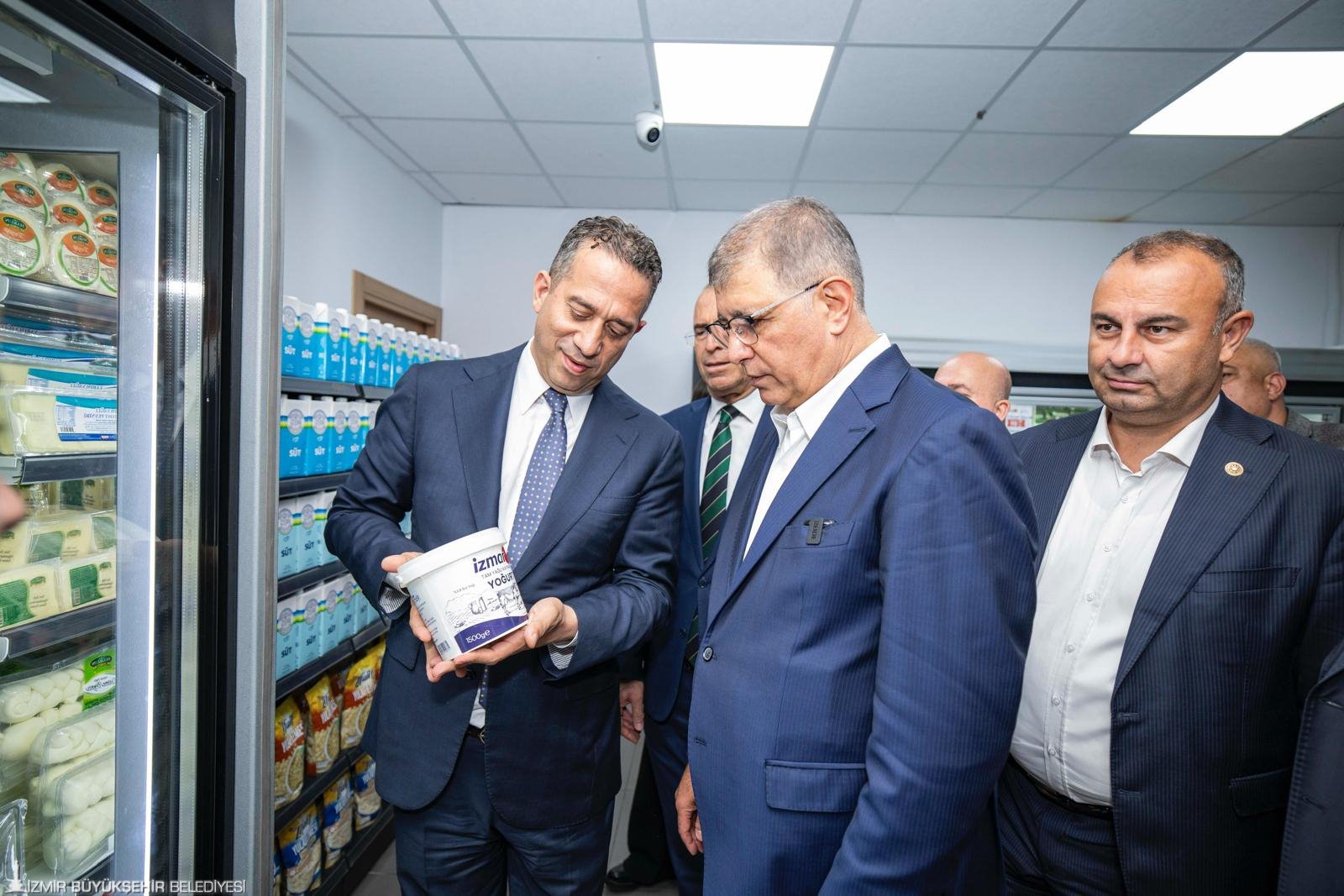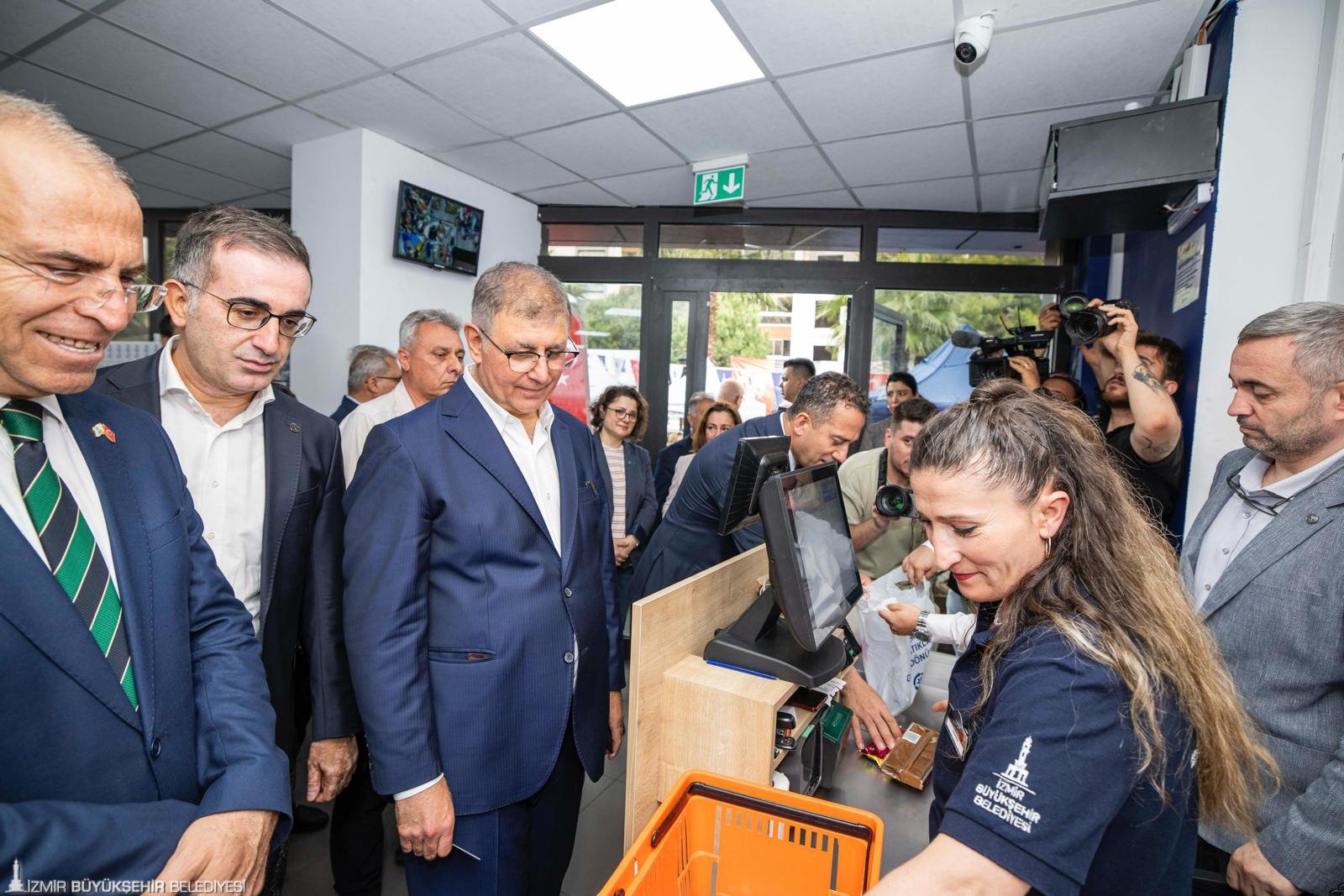 Gıda güvenliğine vurgu yapan Başkan Tugay, “Bizler insanlarımız sağlıklı beslensin istiyoruz. Aldığı ürünler bozuk olmasın istiyoruz. Özellikle et ve süt ürünleri. Ne şanslıyız ki İzmir’in sütünü kendini işleyebilen bir süt fabrikası var. Orada da İZMAR markalı süt, yoğurt, tereyağı gibi ürünler üretiliyor. Su fabrikalarımız var. Ekmeğimizi de kendimiz üretiyoruz. Peki bütün bunları niye yapıyoruz? Marketçilik yapalım buradan para kazanalım diye mi yapıyoruz? Birileri buradan zengin olsun diye mi yapıyoruz?. Biz belediye olarak ne fırıncılık ne kasaplık ne de marketçilik yapmaya çalışıyoruz. Burada halkımızın talebi üzerine bu marketler açılıyor. Taleplere bakınca her semtte bir tane olması gerekiyor gibi görünüyor. Bunlar insanlarımızın temel ihtiyacını karşılasın diye açılan marketler” dedi.