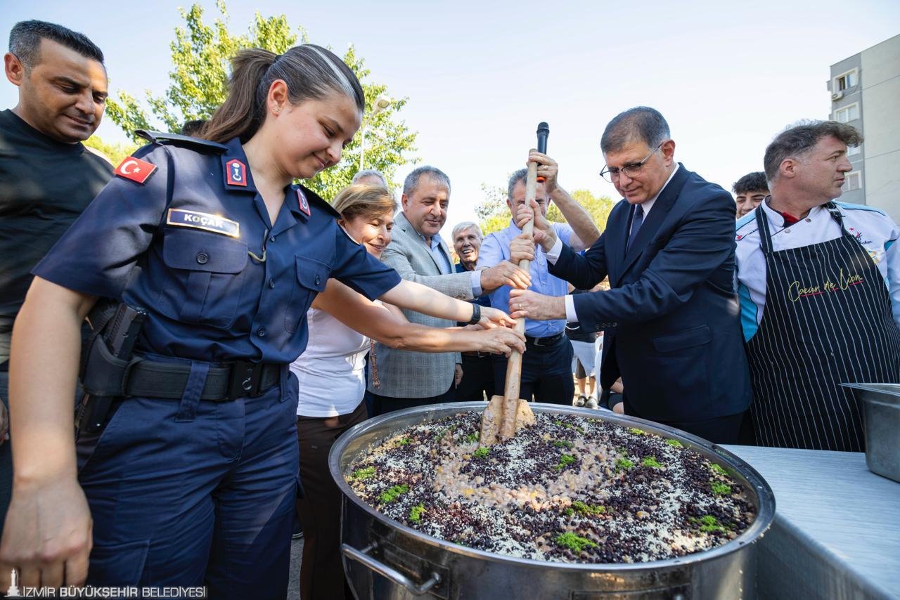 Karşıyaka Kaymakamı Özkan Demir, “Çok zor bir coğrafyada yaşıyoruz. Zor zamanlardan hep birlikte geçiyoruz. Bizi biz yapan değerlere her zamankinden daha fazla sarılmamız gerektiğine inanıyorum” dedi. Mustafa Kemal Mahalle Muhtarı Hanımşah Han, “Burada birliğin, bereketin sembolü olan aşure günü vesilesiyle bir araya geldik. Her yıl olduğu gibi bu yıl da farklılıklarımızı aynı kazanda kaynaştıran bu güzel gelenek sayesinde gönüllerimizi birleştiriyoruz” ifadelerini kullandı.