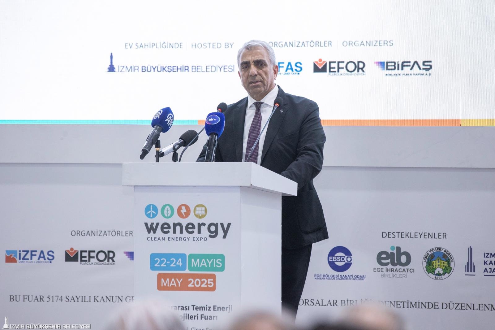 İzmir'in fuarlar şehri olduğunu, Fuar İzmir'de birçok fuar düzenlendiğini hatırlatan İzmir Büyükşehir Belediye Başkanı Dr. Cemil Tugay, “Temiz enerji ve yenilenebilir enerji konusu çok önemli. Herkes şunu bilmeli ki; dünyanın içinde bulunduğu iklim krizi, genel gidişat, çevre sorunları çok yakın tarihlerde dünyayı su, gıda ve enerji kriziyle karşı karşıya getirecek. Bu sorunlarla ilgili dirençliliği artırma sorumluluğu aslında tüm dünyaya yüklemiş bir sorumluluk. Ama lokal olarak da şehirler, bölgeler, ülkeler dayanışma içinde bilgi paylaşımıyla ve hep beraber bu sorunu çözme anlayışıyla çalışmaya devam etmeliler. Enerji konusu, dünyanın en önemli konularından birisi. İzmir ve Türkiye için de çok önemli bir konu. İzmir'in de kendi kalkınma dinamiklerinden, öngörülerinden, yatırımcılarının güçlü insanlar olmasından dolayı yenilenebilir enerjide, rüzgar ve güneş enerjisinde artan potansiyeliyle, Türkiye'nin başkenti olma yolunda ilerliyor” dedi.