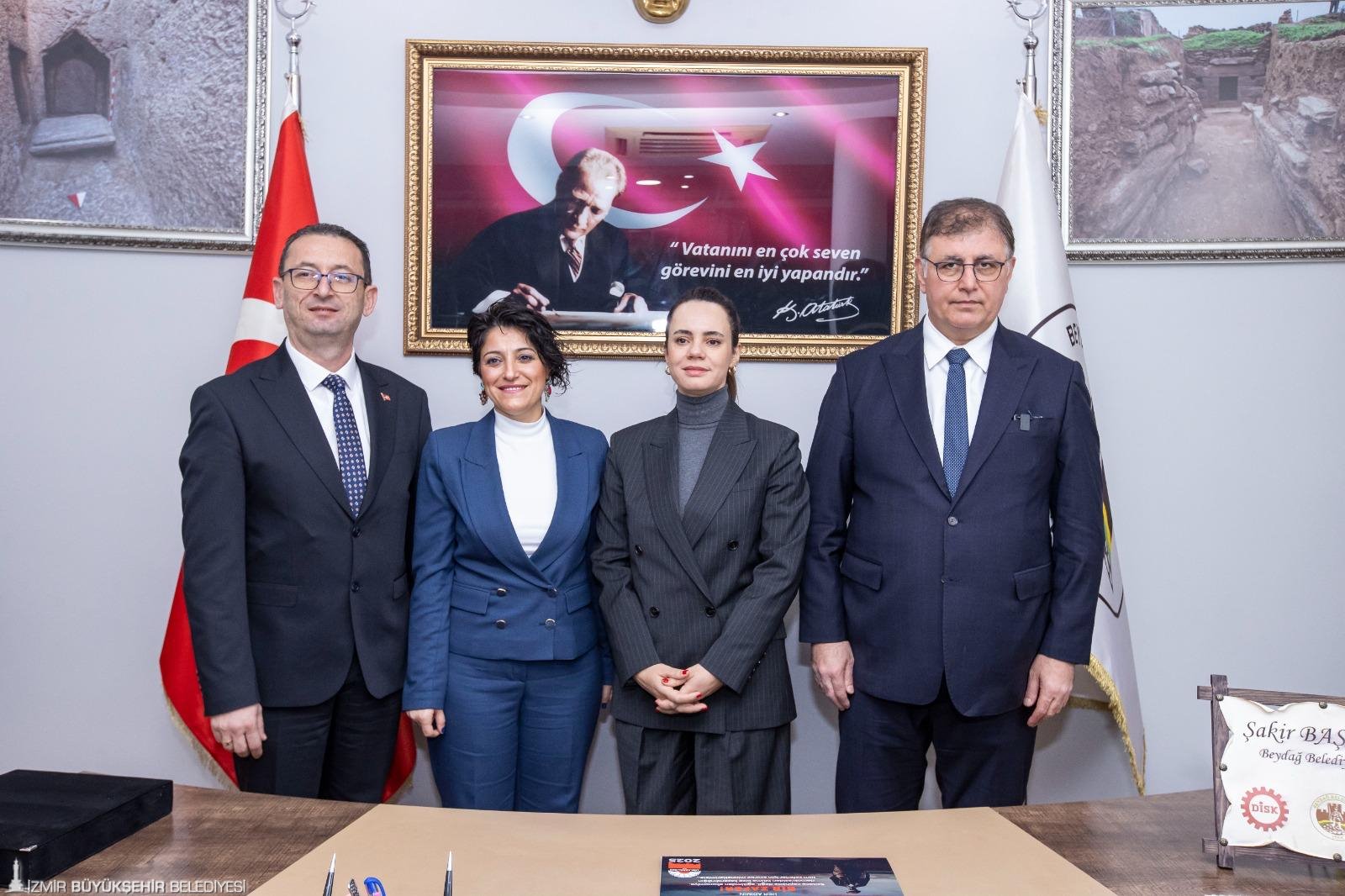 İzmir Büyükşehir Belediye Başkanı Dr. Cemil Tugay, yeni yılın ilk ziyaretini Beydağ'a yaptı. Beydağ Belediye Başkanı Şakir Başaran ile eşi Demet Başaran, İzmir Büyükşehir Belediye Başkanı Dr. Cemil Tugay ile eşi Öznur Tugay’ı karşıladı. Başkan Dr. Cemil Tugay, belediye binası girişinde meclis üyeleri ve personelin yeni yılını kutladı. “Haritada Küçük Menderes’in doğduğu noktadayız” diyen Şakir Başaran, ilçe hakkında bilgiler verdi. Başaran, ilçede yapılan çalışmalar ve projeler için de Başkan Tugay’a teşekkür etti. Baştan sona yenilenen, içinde bir mini futbol sahasının da bulunduğu 2 Eylül Kurtuluş Parkı’nda çocukların oynamaya başladığını belirten Başaran, “En son 1992 yılında yenileme yapılmıştı. Gözümden yaşlar geldi, çocukluğumuz aklıma geldi. Teşekkür ederiz başkanım” diye konuştu. Başaran, İzmir Büyükşehir Belediyesi tarafından hizmete alınan, bireysel toplu taşımacıları kentin toplu ulaşım sistemine entegre eden İZTAŞIT projesinin Beydağ’a taşınmasının da ilçede büyük memnuniyet yarattığını kaydetti. Başkan Dr. Cemil Tugay, Beydağ için çalışmaya devam edeceklerini söyledi.
