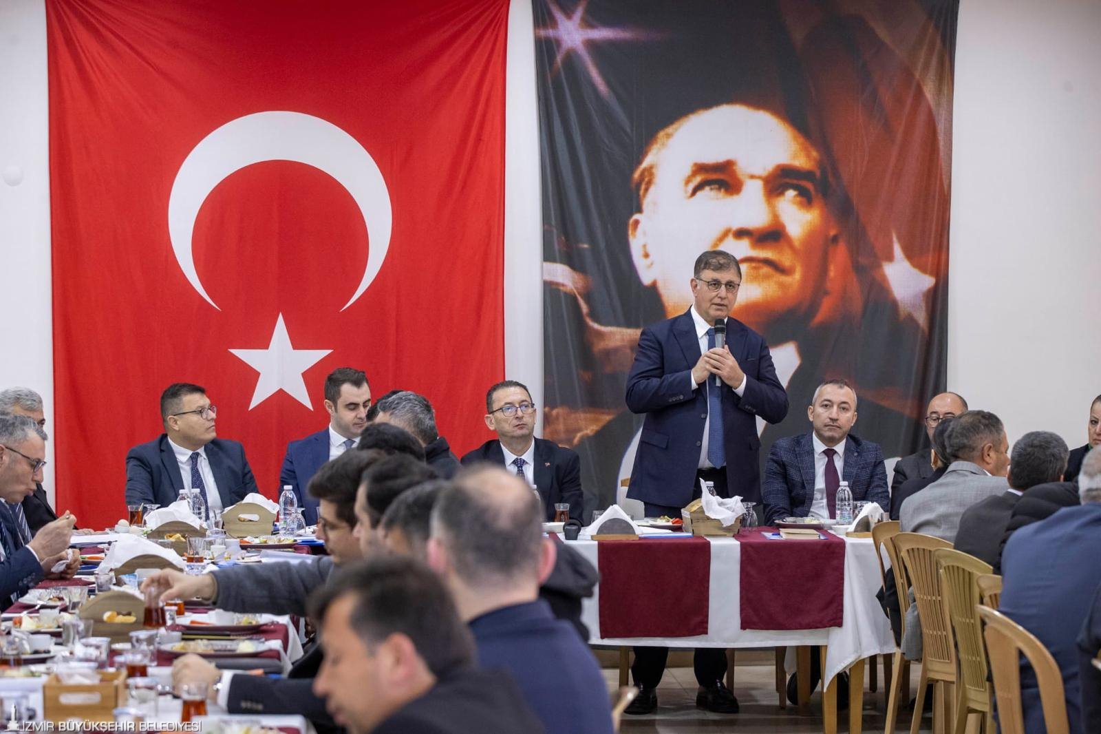 Muhtarların acil ve önemli gördükleri konuları ısrarla hatırlatmalarını isteyen Başkan Tugay, “Herhangi bir soruna karşı duyarsız kalmayacağız. Kiraz ve Beydağ çevresi, hizmet açısından bu dönem daha fazla önem verdiğimiz, daha fazla çaba göstereceğimiz yerler olacak. 2025 yılında bunu bariz olarak göreceksiniz, hissedeceksiniz. İzmir'in her ilçesini dengeli ve adil şekilde hizmetle buluşturmayı düşünüyoruz. Hiçbir yerin ihmal edilmemesi bizim için önemli. Süs, göstermelik işler değil, gerçekten şehrimizin öncelikli sorunlarını ele alıyoruz. Hayallerimiz, fantezilerimiz değil, halkımızın ihtiyaçları, şehrimizin ihtiyaçları bizim için önemli. Gösteriş peşinde de değiliz. İzmir'in gördüğü en mütevazı belediye yönetimi bu dönemde olabilir” diye konuştu.