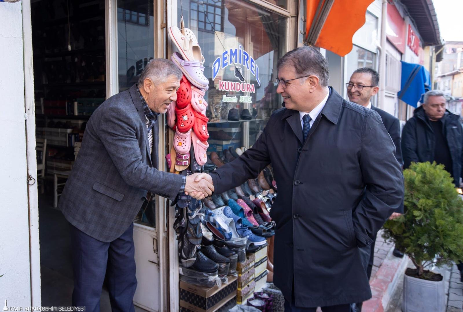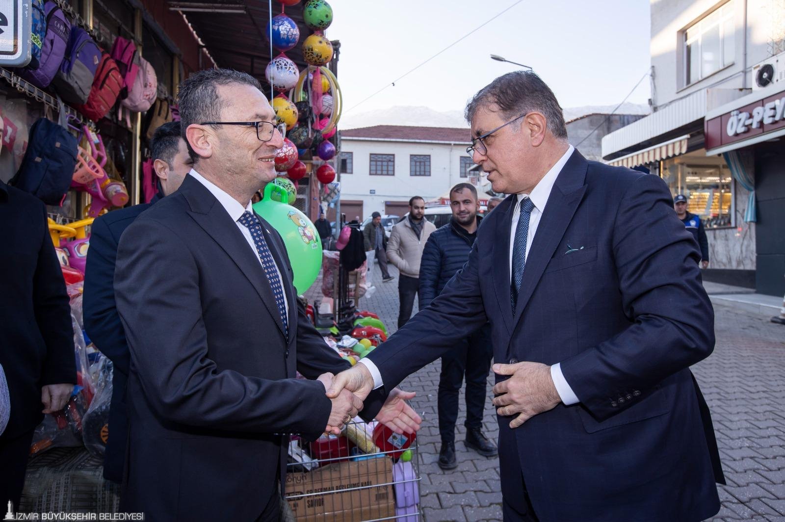 İzmir Büyükşehir Belediye Başkanı Dr. Cemil Tugay, toplantı sonrası ilçedeki kahvehanede vatandaşlarla buluştu ve ardından esnafı ziyaret etti.