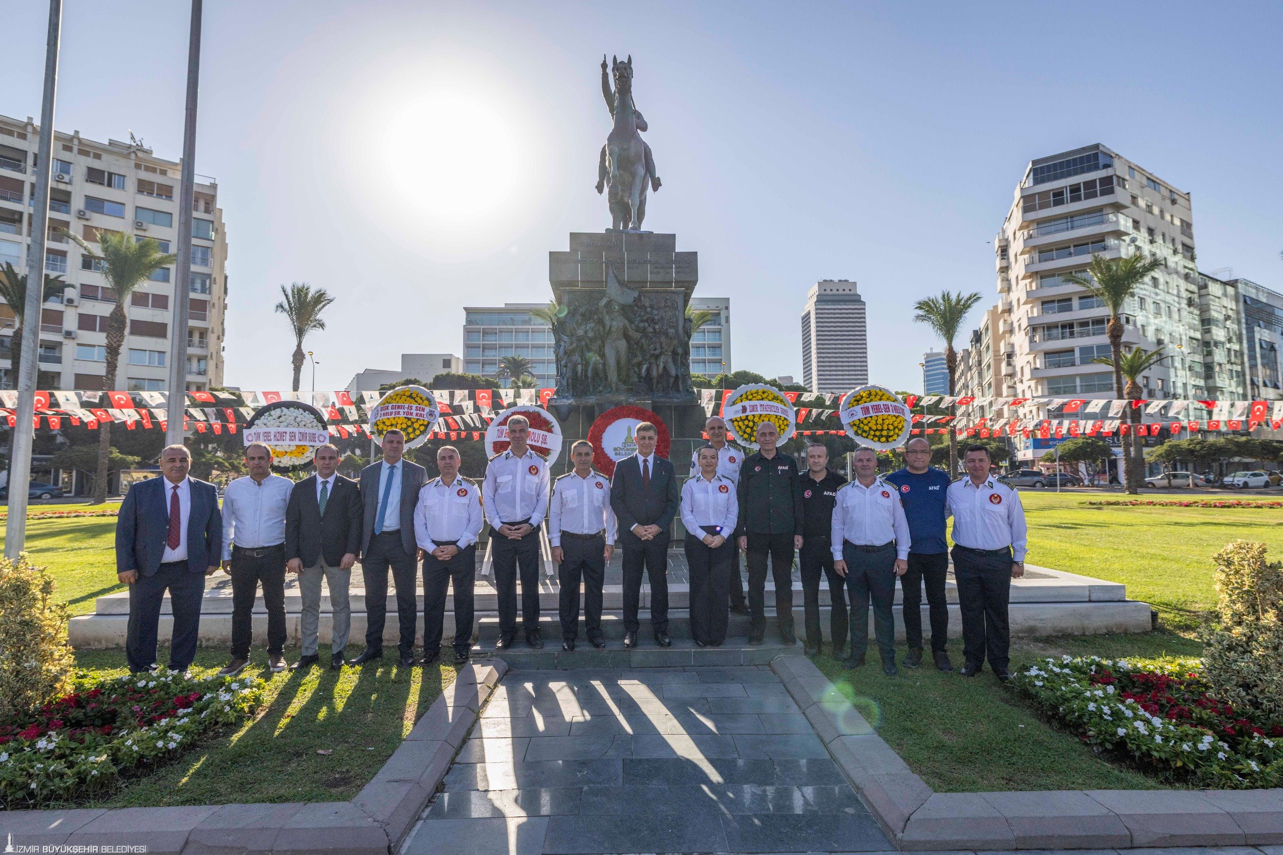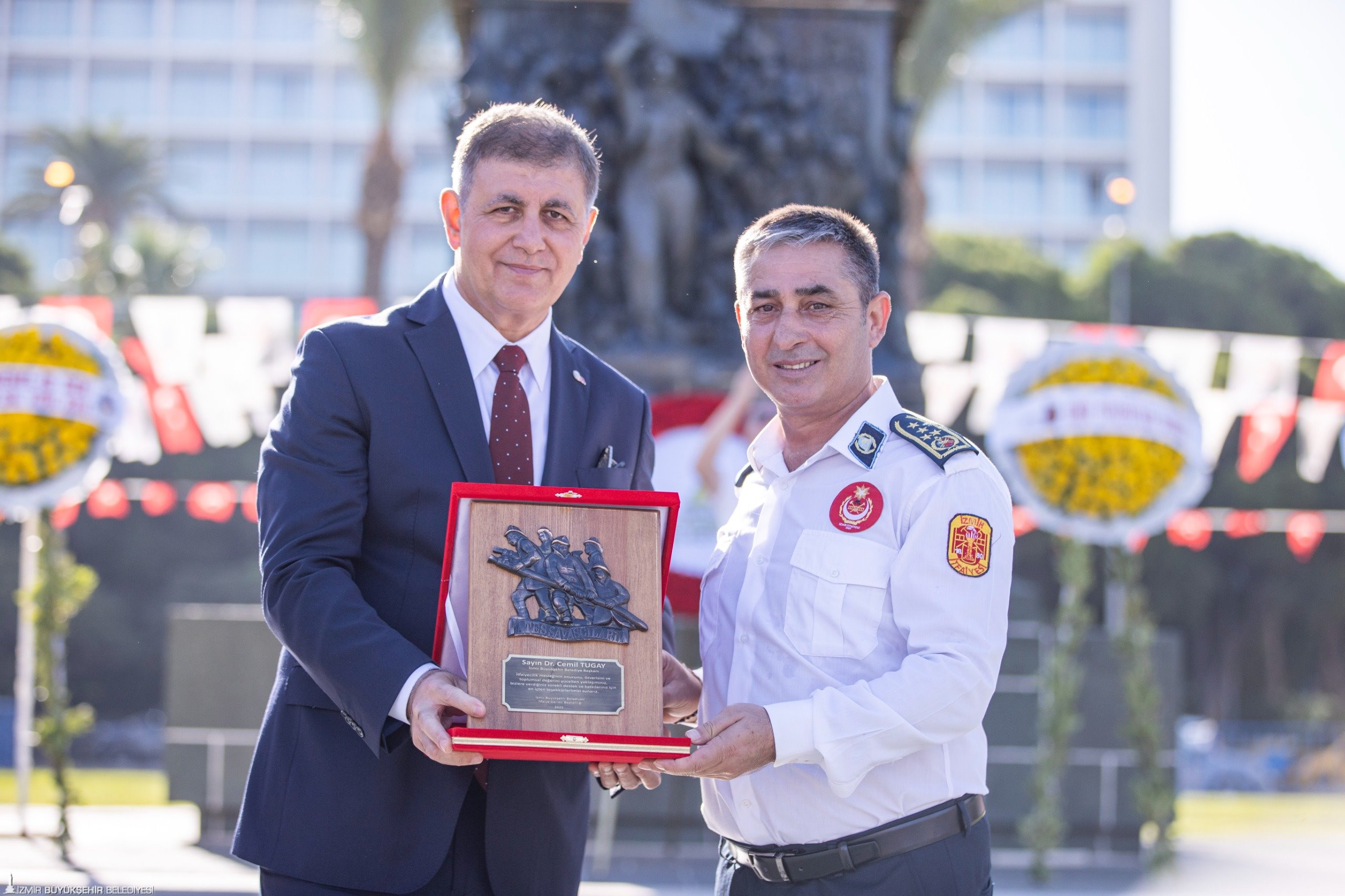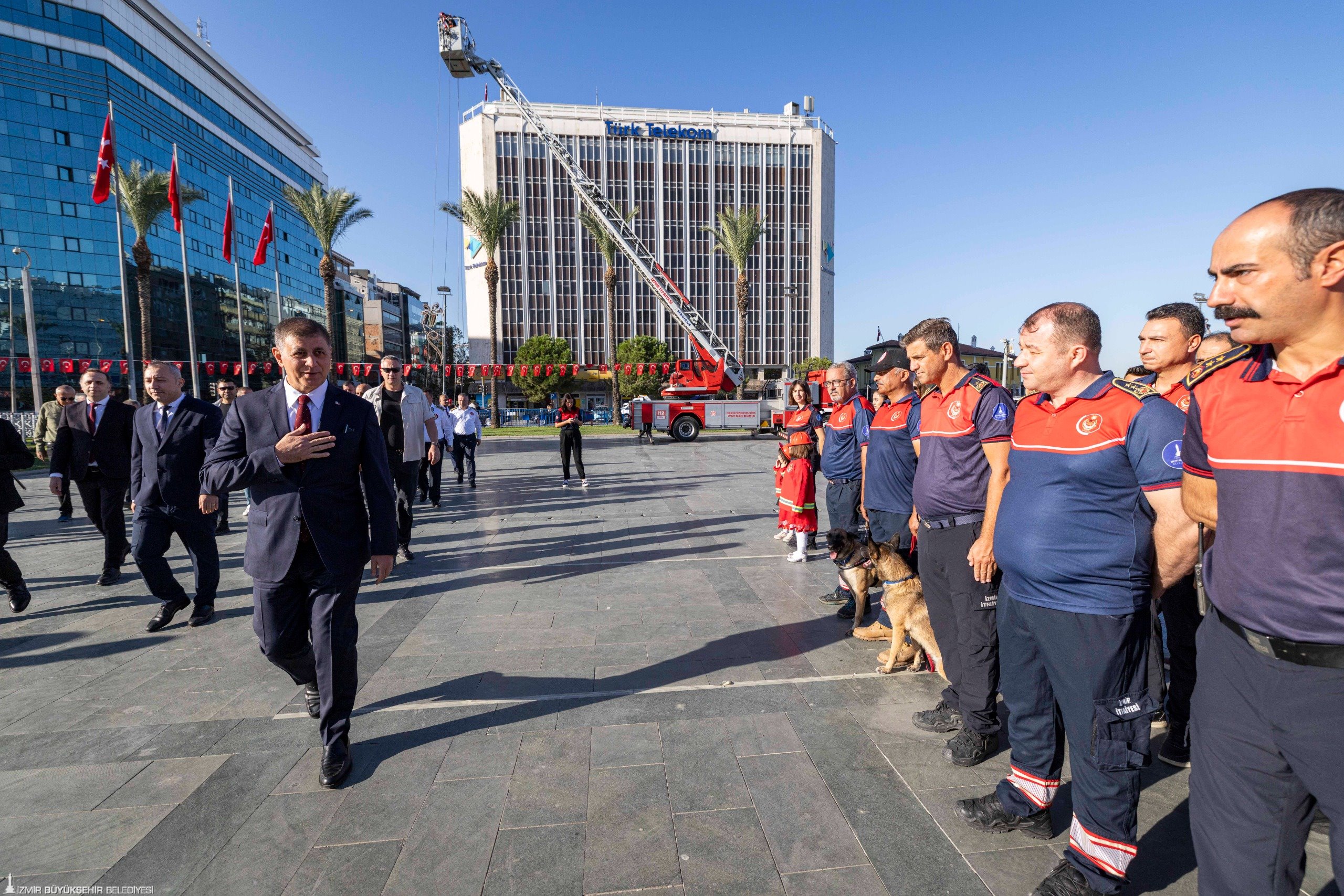 İzmir Büyükşehir Belediye Başkanı Dr. Cemil Tugay, İtfaiye Teşkilatı’nın kuruluşunun 311, teşkilatın belediyelere devredilişinin 102’nci yıl dönümü nedeniyle Cumhuriyet Meydanı'nda düzenlenen törene katıldı. Başkan Tugay’ı alana girişte itfaiye personelinin çocuklarından 5 yaşındaki İsmira Çakıroğlu ile 3 yaşındaki Asya Honça çiçekle karşıladı. Atatürk Anıtı'na çelenk sunulmasıyla başlayan törene Başkan Tugay’ın yanı sıra İzmir Büyükşehir Belediyesi Başkan Vekili Dr. Zafer Levent Yıldır, İzmir Büyükşehir Belediyesi Genel Sekreteri Zeki Yıldırım, Genel Sekreter yardımcıları Prof. Dr. Pınar Okyay, Dr. Hakan Uzun, İsmail Mutaf, İtfaiye Dairesi Başkanı Yaşar Korkmaz, İzmir İl Afet ve Acil Durum Müdürü (AFAD) Nazif Ekinci ile itfaiye personeli katıldı.