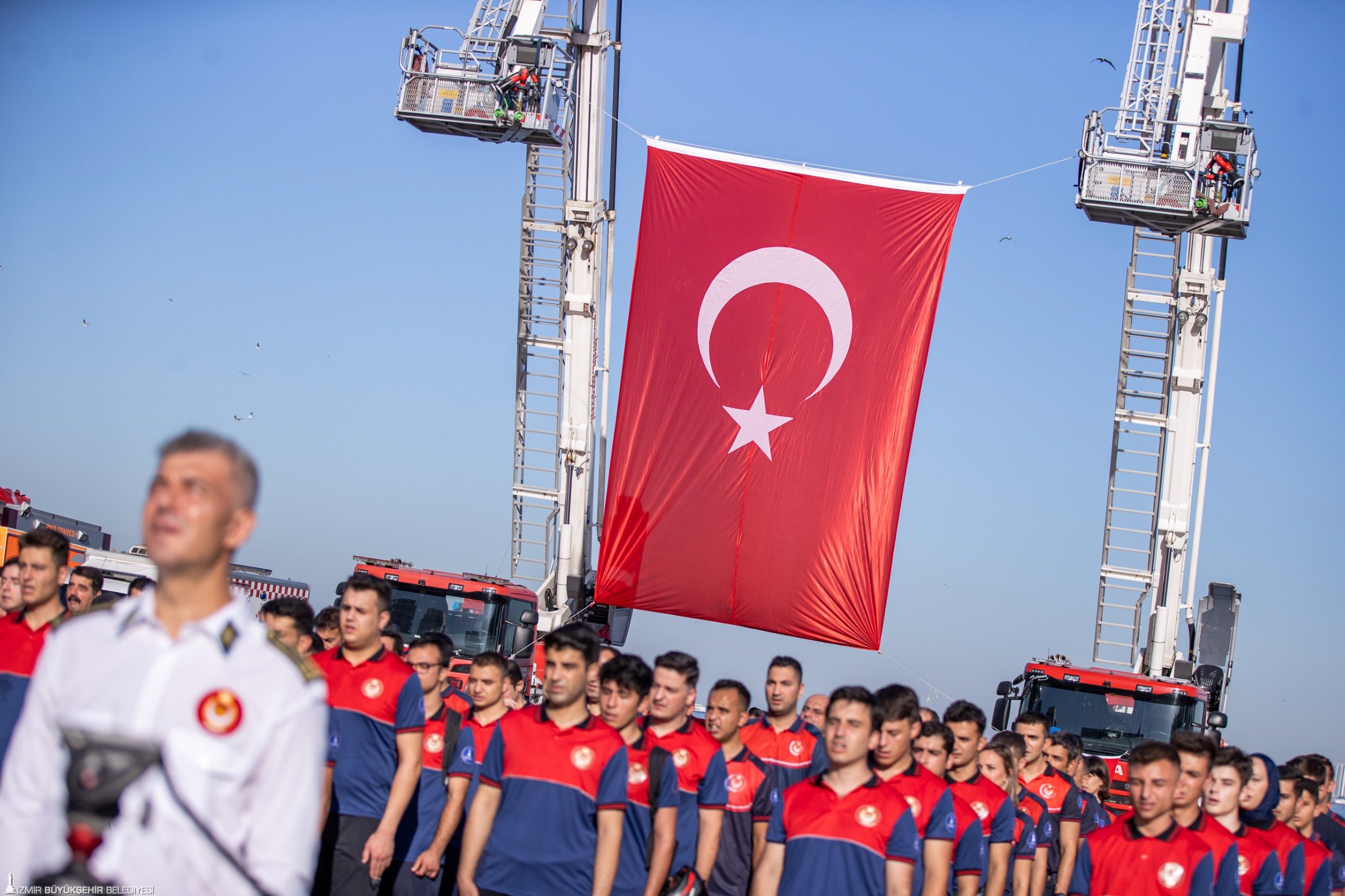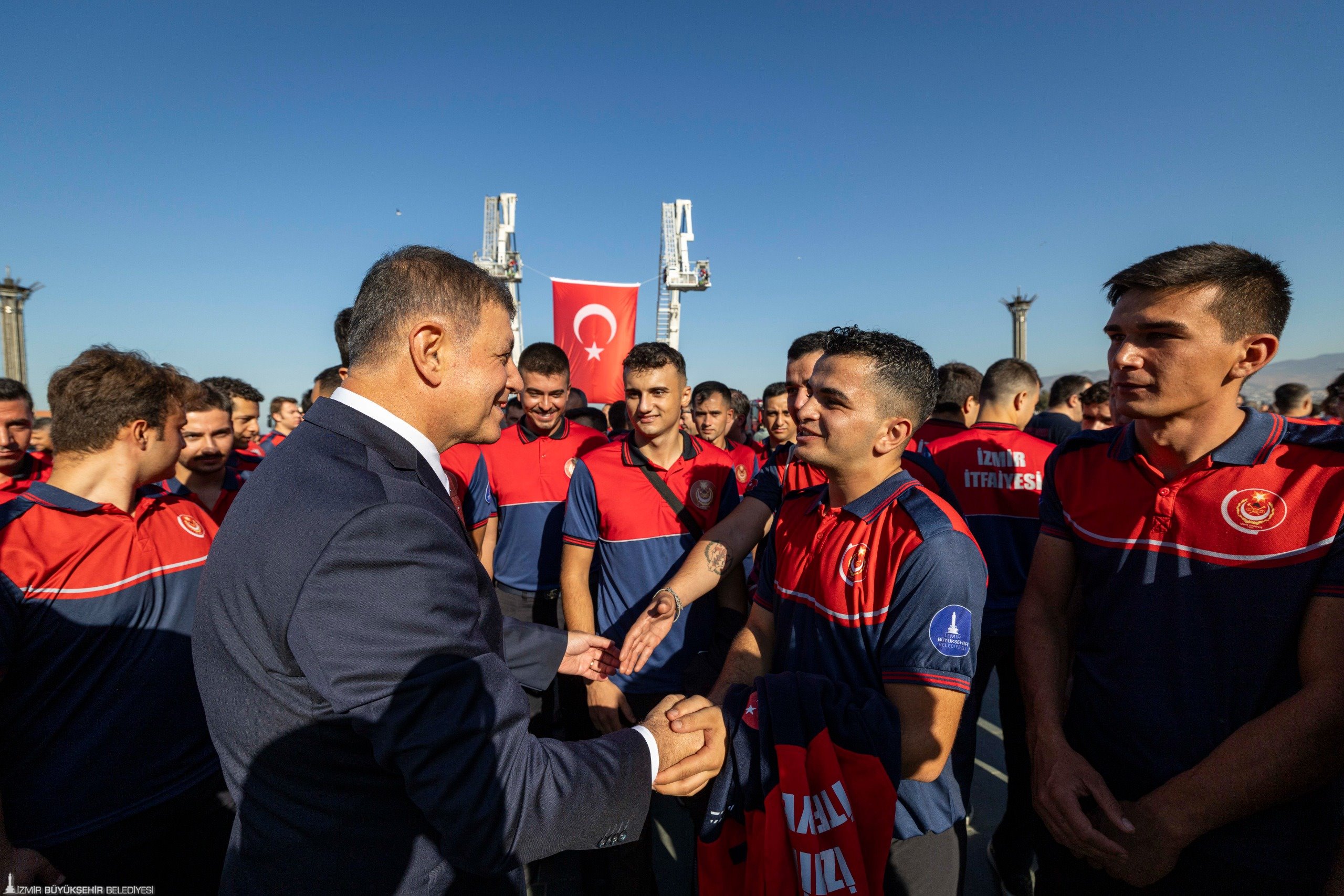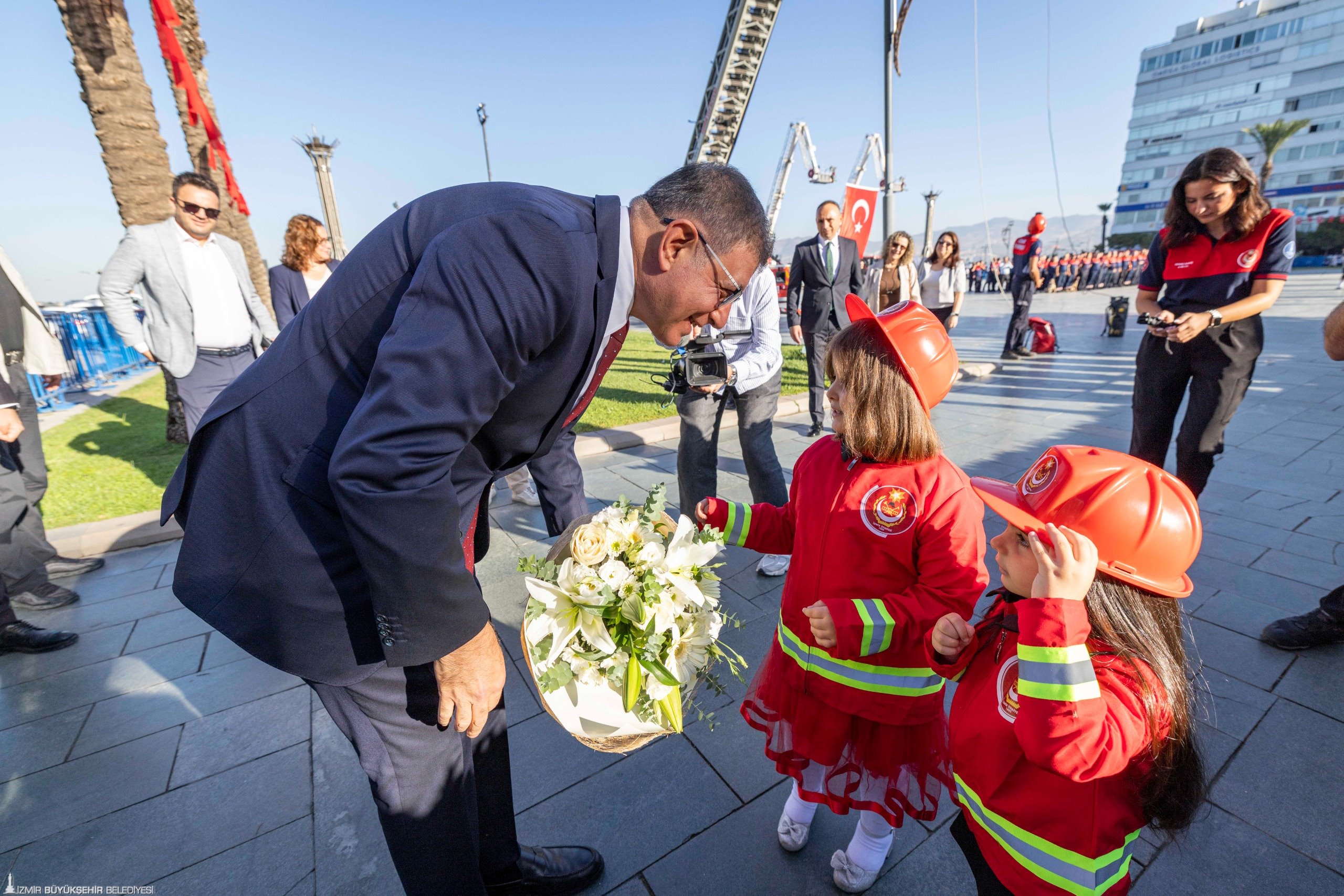 “Bugün burada, hayatlarını insanların güvenliği ve yaşamı için ortaya koyan itfaiyecilerimizi onurlandırmak için toplandık. Yangınla, afetle, felaketle mücadelede en ön safta duran, hiçbir tereddüt göstermeden kendini ateşe, dumana, yıkıntıya atan, her gün canını ortaya koyan bir meslek grubundan söz ediyoruz. Sizler yüzünüzü ateşe dönerken, yurttaşlarımızın can güvenliği ve huzur içinde yaşaması için savaşıyorsunuz. Biliyoruz ki itfaiyemizin her müdahalesinden, her kurtarma çalışmasından, yanan bir binadan çıkarılan her candan sonra geriye, bu kentin vicdanına yazılmış bir kahramanlık hikâyesi kalıyor. Gösterdiğiniz cesaret ve fedakârlık sayesinde her yıl on binlerce insanın evi, hayatı ve umudu korunuyor. Bu kentin size minneti büyük. Bugün İzmir’in sahip olduğu dayanışma ruhunun en güçlü temsilcileri sizlersiniz. Güçlü bir itfaiye, güven içinde yaşayan bir İzmir demek.”