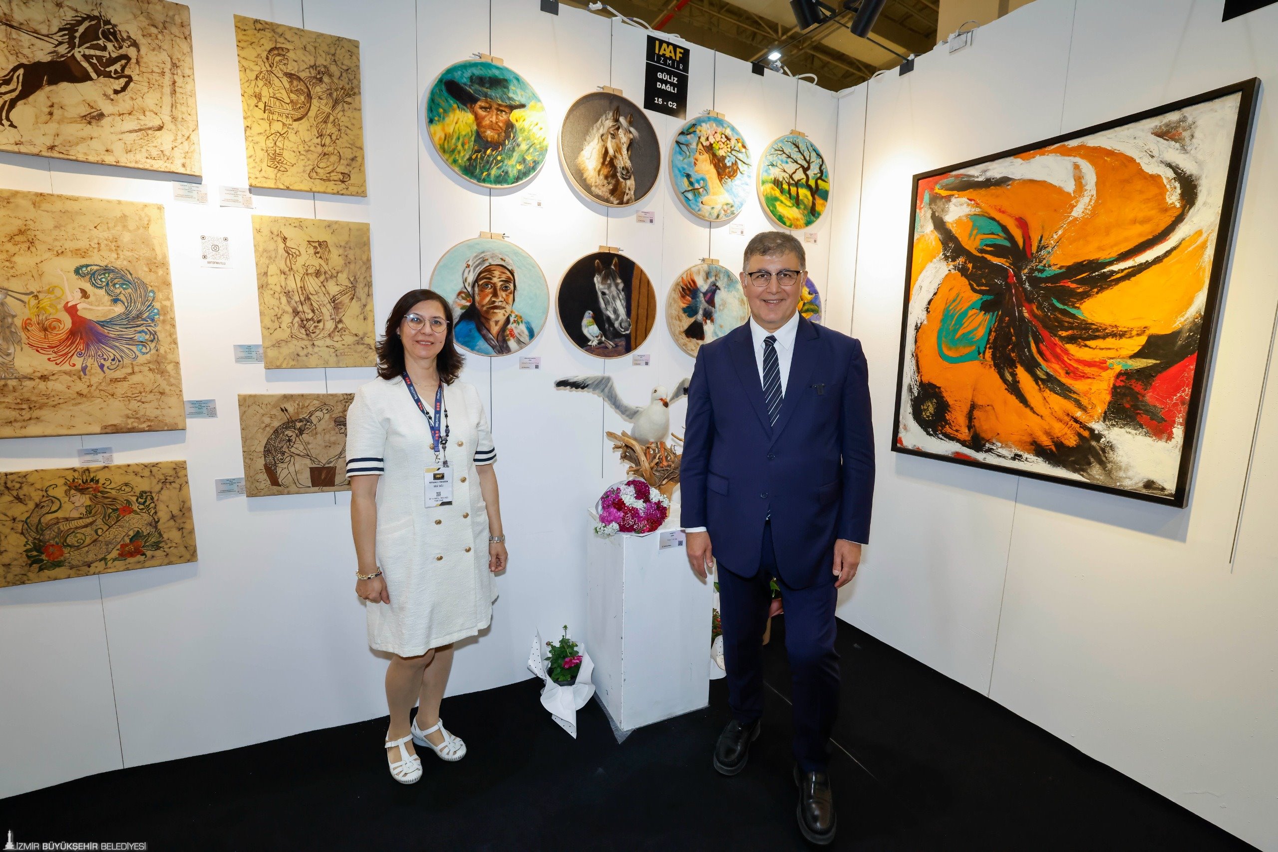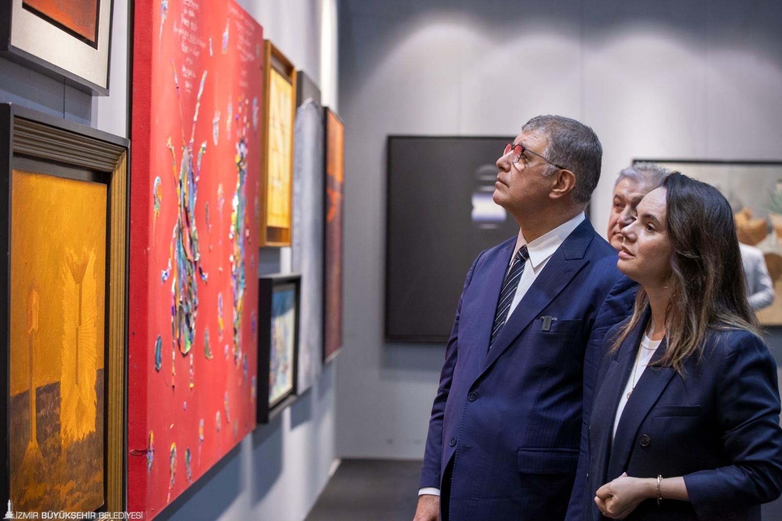 Açılış töreninde konuşan İzmir Büyükşehir Belediye Başkanı Dr. Cemil Tugay, “Henüz ikincisini düzenlediğimiz, ev sahipliği yaptığımız bu fuarı geçen yıl da gezmeye geldiğimde çok mutlu olmuştum. Böyle bir ortamda olmak, sanatı koklamak çok keyifli gelmişti. Bu sene de bu fuarın gerçekleşmiş olması, önemli bir buluşmaya ev sahipliği yapıyor olmamız büyük bir mutluluk. Türkiye'de başka kentlerde de benzer fuarlar düzenleniyor ama biz bu fuarı büyütmeyi, geliştirmeyi çok istiyoruz. İzmir Büyükşehir Belediyesi ailesi olarak, bu süreçte üzerimize ne düşüyorsa her zaman yapmaya hazır olacağız. Şuna inanıyoruz; İzmir sanata çok değer veren insanların şehridir. İzmir'e sanat, sanata da İzmir çok yakışıyor. Böyle bir şehirde yaşıyoruz. Çok sanatçımız var. Genç sanatçılarımızın var olma, kendini geliştirme ve anlaşılma çabalarını değişik vesilelerle biz de görüyoruz. Çok etkilendiğimiz hikayeler yaşıyoruz aynı zamanda. Onlara destek olmak, onların nefes alabileceği, üretken olabileceği, kendini geliştirebileceği bir şehir ortamı yaratmak en önemli amaçlarımızdan birisi” dedi.