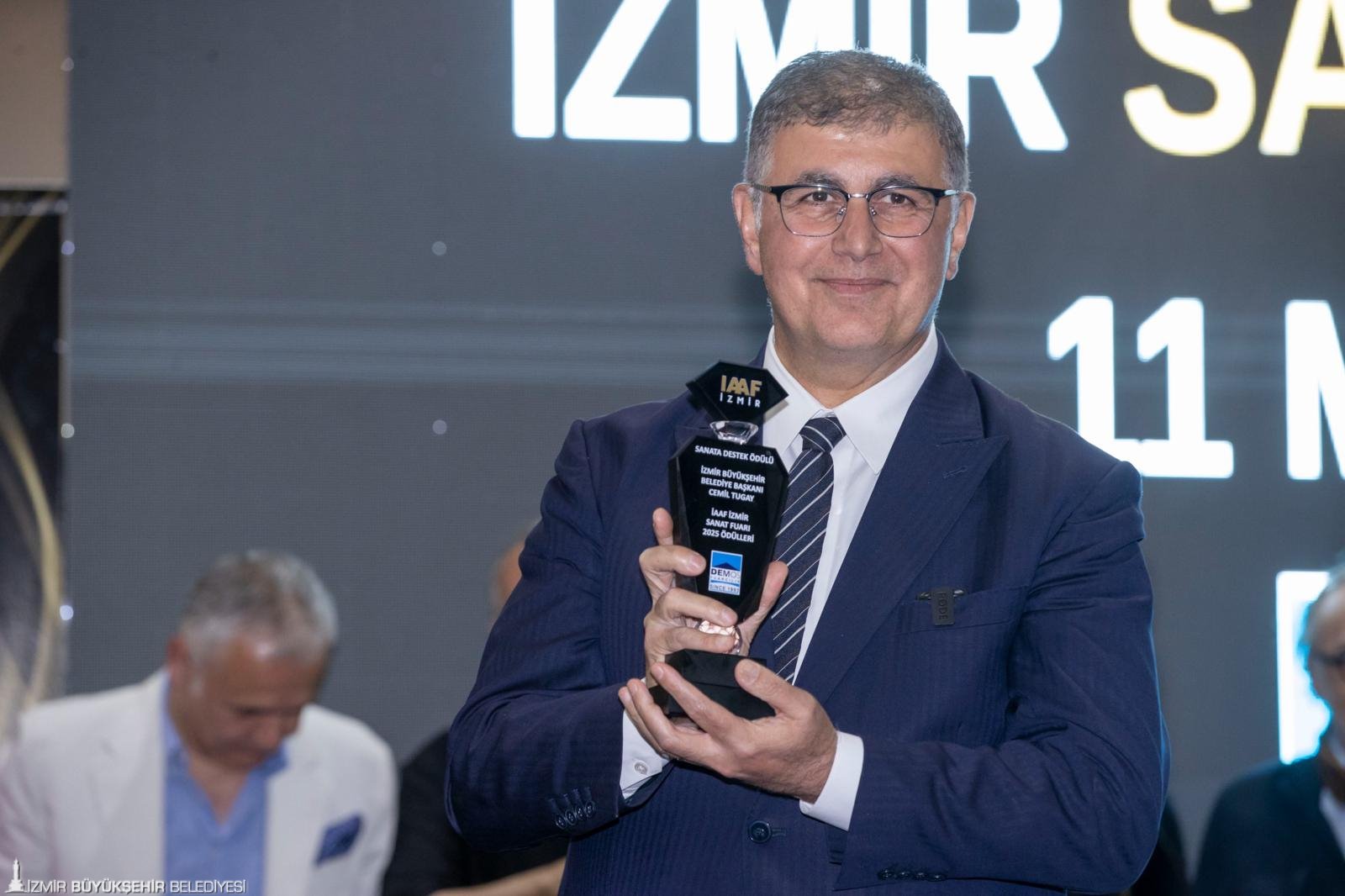 İzmir Sanat ve Antika Fuarı'nın açılış töreninin ardından ödül töreni de gerçekleşti. Başkan Tugay, Sanata Destek Ödülü'ne layık görüldü. Tugay'a ödülünü Demos Fuarcılık Yönetim Kurulu Başkanı Sebahattin Aslan verdi. 1923 yılından itibaren Türk fuarcılığına verdiği desteklerden dolayı İZFAŞ Genel Müdürü Tuğçe Cumalıoğlu da ödüle layık görüldü. Törende; En İyi Sanat Kurumu Ödülü ARKAS SANAT'a, Yılın Ressamı Ödülü Yalçın Gökçebağ'a, Yılın Genç Seramik Sanatçısı Ödülü Dila Naz Akgün'e, Yılın Heykeltıraş Sanatçısı Ödülü Tuğrul Selçuk'a, Sanata Destek Ödülü Burcu Yazgan Parlak'a, Yılın Yabancı Sanatçısı Ödülü Marat Bekey'e, Yılın Koleksiyoneri Ödülü Yusuf Bulut Öztürk'e verildi. Misafir ülke Kore'nin onuruna da Choi Kyurak'a ödül takdim edildi. Desteklerinden dolayı ESKİİZ Sanat Galerisi'nden Serdar Yörük'e ödül verildi.