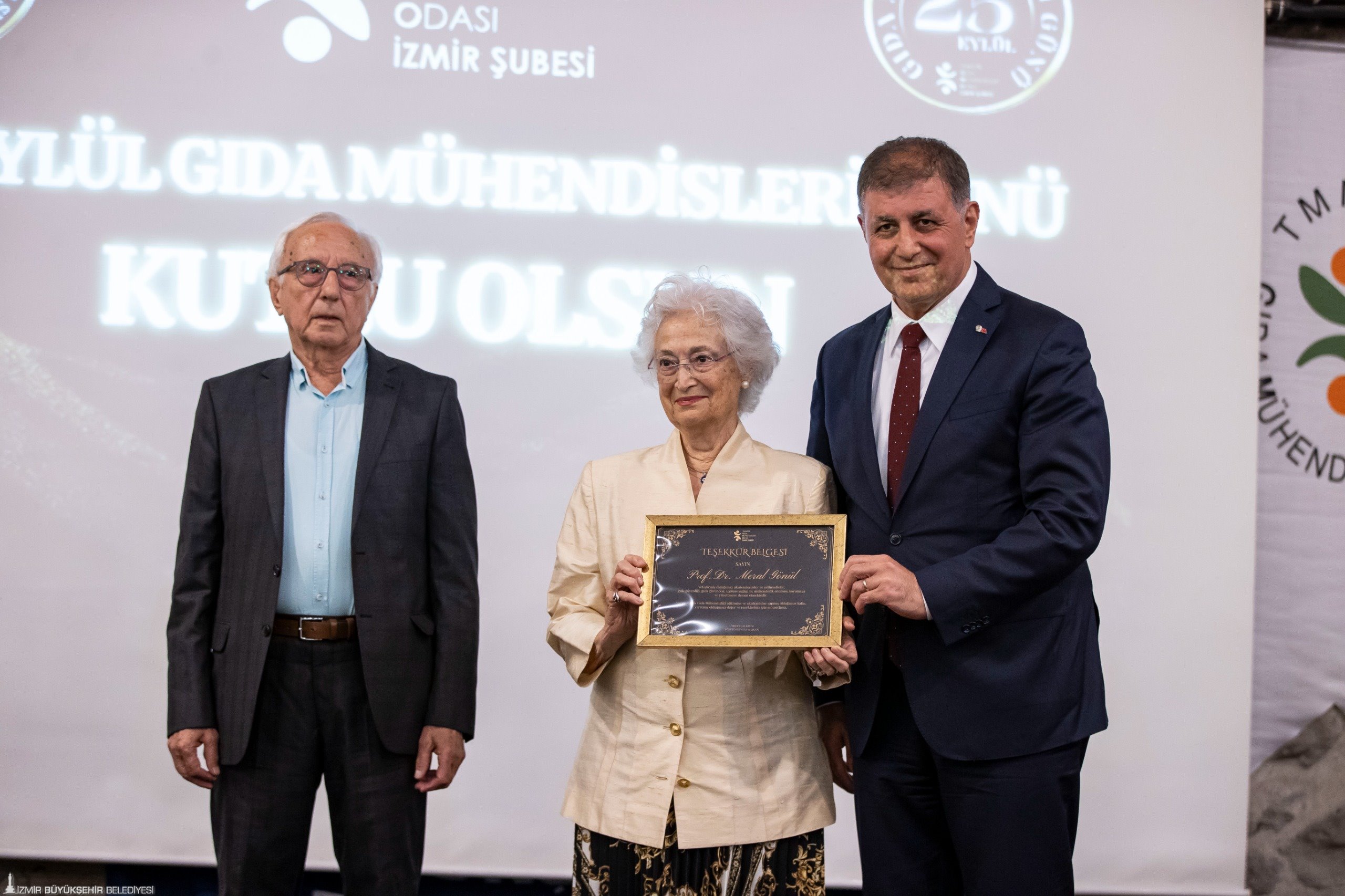 İzmir Büyükşehir Belediye Başkanı Dr. Cemil Tugay, Türk Mühendis ve Mimar Odaları Birliği (TMMOB) Gıda Mühendisleri Odası İzmir Şubesi tarafından 25 Eylül Gıda Mühendisleri Günü etkinlikleri kapsamında organize edilen Meslekte Onur Yılı Ödül Töreni’ne katıldı. Alsancak Tarihi Havagazı Kültür Merkezi’ndeki buluşmada meslekte 25’inci ve 40’ıncı yılını dolduran üyelere ödülleri takdim edildi. Programda oda üyeleri, akademisyenler, Tarım ve Orman Bakanlığı ile sivil toplum kuruluşlarının temsilcileri, Büyükşehir Belediyesi bürokratları ve belediye başkanları yer aldı. Başkan Tugay gecenin sonunda sahneye gelerek ödüllerin takdimine de eşlik etti.