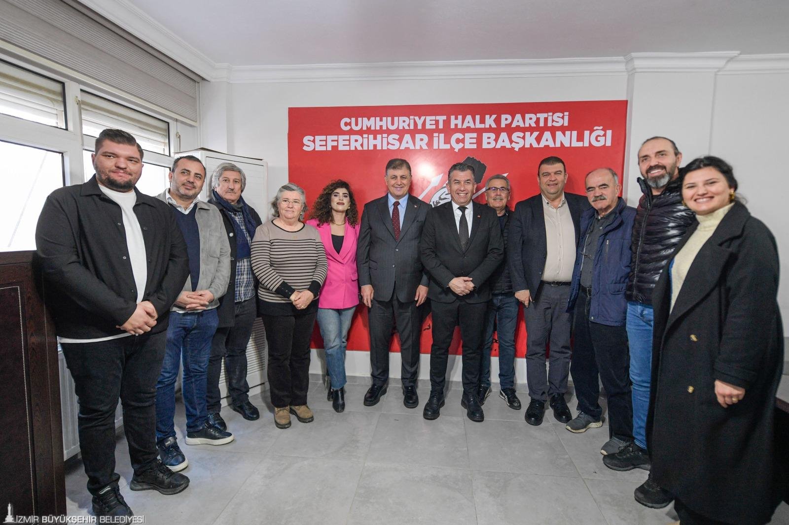 Başkan Tugay, toplantının ardından Cumhuriyet Halk Partisi Seferihisar İlçe Başkanlığı'nı ziyaret etti. Tugay'ı CHP Seferihisar İlçe Başkanı Rahmi Tezel Çınar ile ilçe örgütü karşıladı.