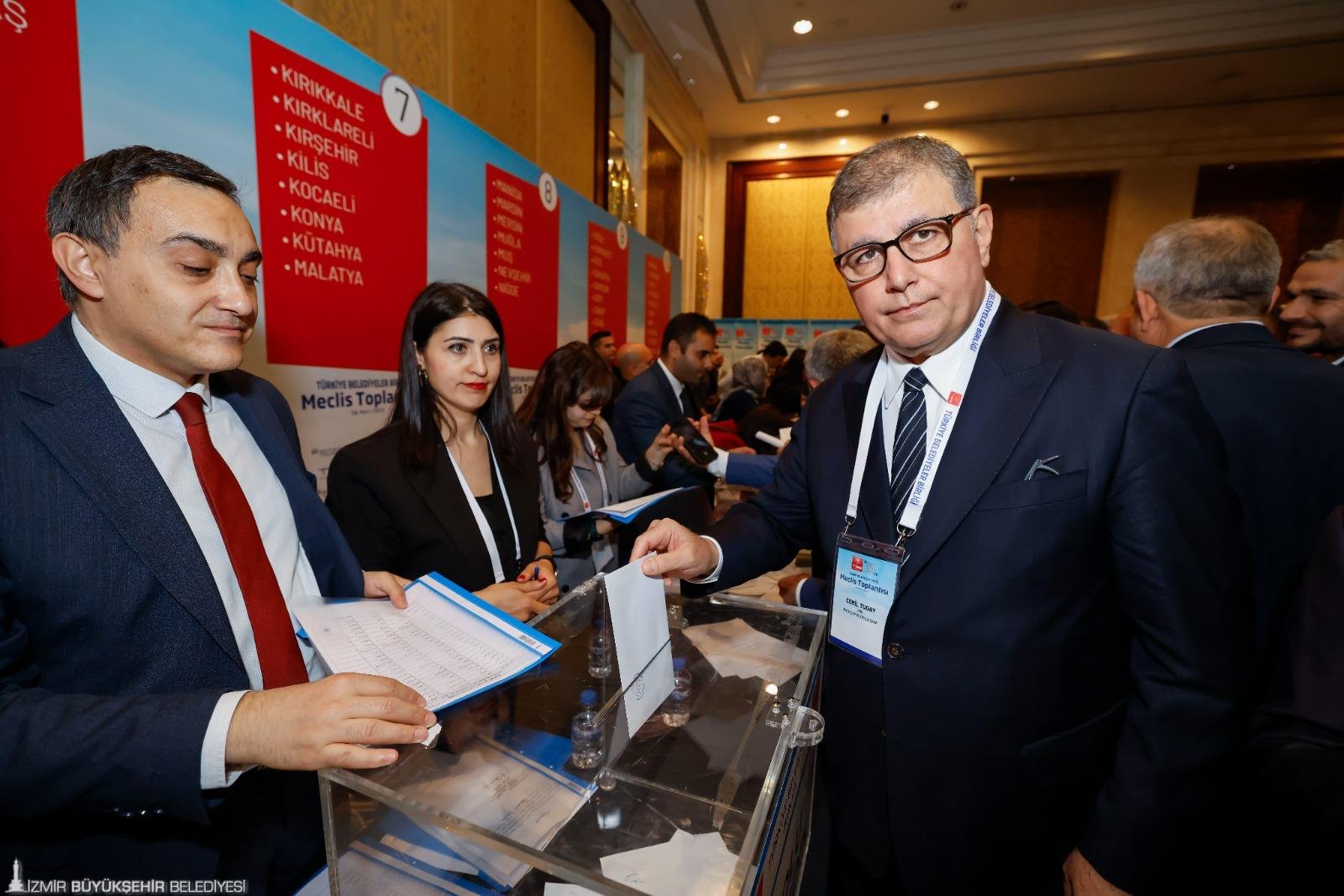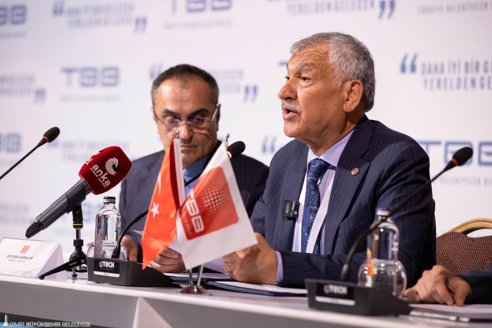 İzmir Büyükşehir Belediye Başkanı Dr. Cemil Tugay, Türkiye Belediyeler Birliği (TBB) Başkanı ve İstanbul Belediye Başkanı Ekrem İmamoğlu’nun tutuklanmasının ardından TBB Başkan Vekili seçme gündemiyle Ankara’da toplanan Türkiye Belediyeler Birliği Meclisine katıldı. Başkan Dr. Cemil Tugay, “Bugün buruk bir gerekçeyle buradayız. Ekrem İmamoğlu’nun görevinden uzaklaştırılmış olması, bu toplantının yapılmasını zorunlu kıldı. Cumhuriyet Halk Partili belediye başkanları, delegeler olarak buradayız. Partimizi temsil edecek bir başkan vekili seçmek üzere görevimizi yerine getiriyoruz. Ama biz Ekrem İmamoğlu’nu Türkiye Belediyeler Birliği Başkanı olarak görmeye devam edeceğiz. Onun mümkün olan en yakın zamanda görevine iadesini ve Türkiye Belediyeler Birliği Başkanlığı’na da tekrar gelmesini bekliyoruz. Geçici bir görevlendirme olarak bugün partimiz Zeydan Karalar’ı aday gösterme kararı aldı. Bu süreç demokrasi açısından sıkıntılarla dolu bir süreç ama biz siyasetçileriz, halkı temsil ediyoruz. Ülkemizin demokratik değerlerine sonuna kadar sahip çıkarak bu dönemi atlatacağız. Türkiye’yi sağlıklı bir noktaya götüreceğiz” şeklinde konuştu.