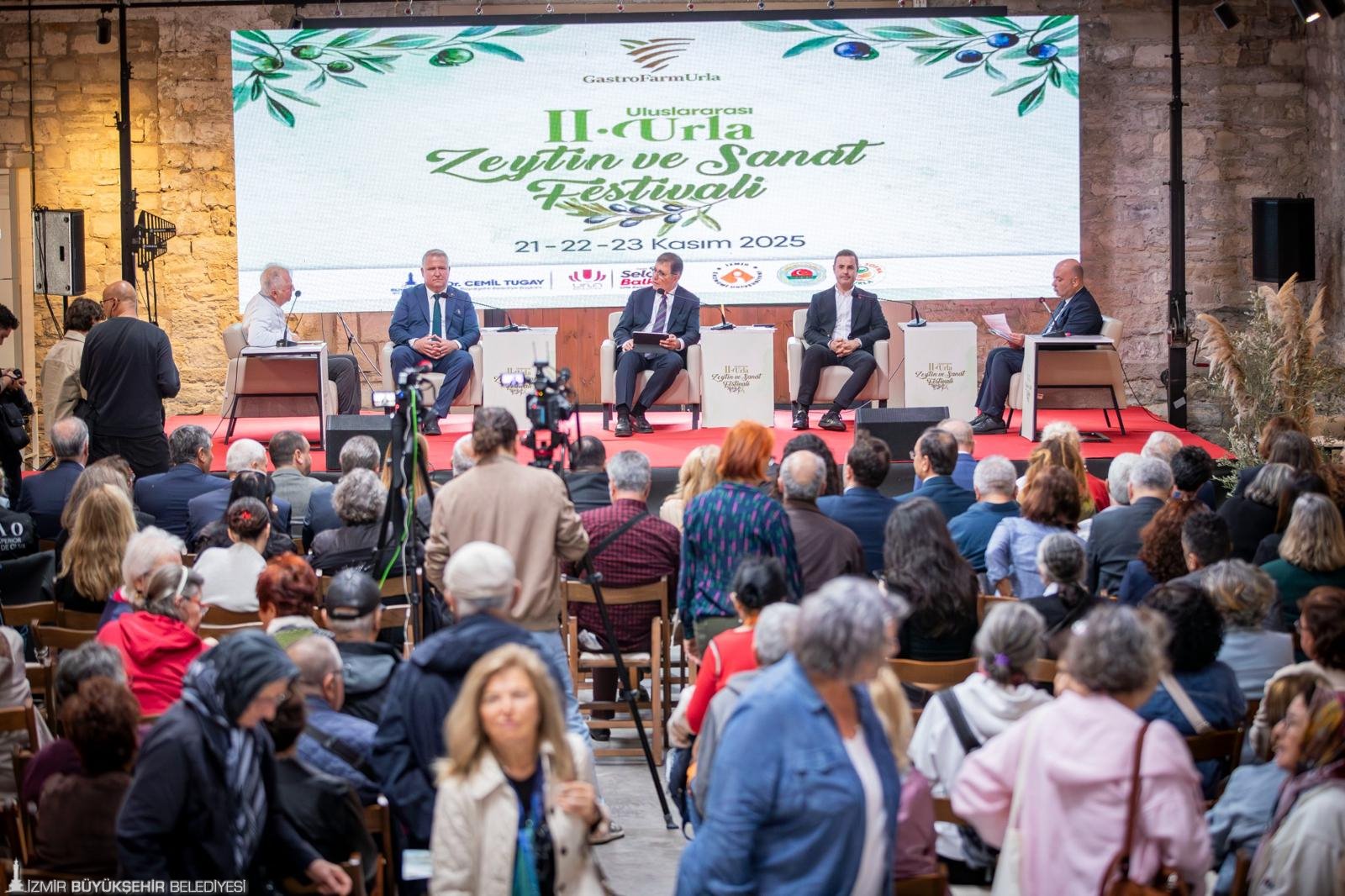 Urla Belediyesi ve İzmir Büyükşehir Belediyesi tarafından düzenlenen 2. Uluslararası Urla Zeytin ve Sanat Festivali programı kapsamında “Tarım ürünlerinin bölge kalkınmasındaki yeri: Zeytin Yasası” paneli düzenlendi. Köstem Zeytinyağı Müzesi Kurucusu Doç. Dr. Levent Köstem moderatörlüğünde yapılan panele İzmir Büyükşehir Belediye Başkanı Dr. Cemil Tugay ile Balıkesir Büyükşehir Belediye Başkanı Ahmet Akın, Urla Belediye Başkanı Selçuk Balkan, Bozcaada Belediye Başkanı Yahya Göztepe katıldı. Panelde zeytinle ilgili yasanın yanında, zeytinin geleceği ve markalaşması konuşuldu. Başkan Tugay, üreticilere verdikleri destekleri anlattı.