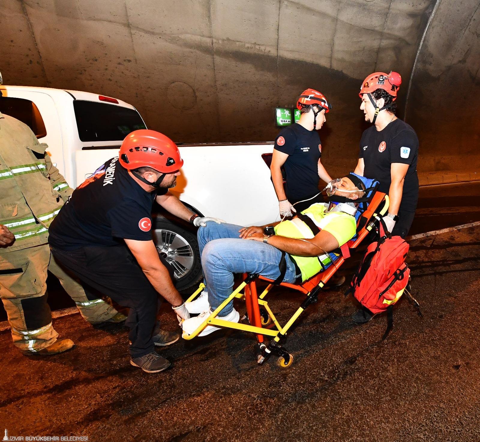 İzmir Büyükşehir Belediyesi İtfaiye Dairesi Başkanlığı, itfaiye ekiplerinin yangın, kaza, afet gibi acil durumlara karşı hızlı ve etkili şekilde müdahale etmesini sağlamak için yaptığı tatbikatlar gerçeği aratmıyor. Ekipler, Mustafa Kemal Sahil Bulvarı ile Yeşildere Caddesi’ni birbirine bağlayan bin 674 metre uzunluğundaki Konak Tüneli'nde de nefes kesen bir tatbikat düzenledi. Her iki tüpte günde yaklaşık 35 bin aracın geçtiği tünellerde senaryo gereği trafik kazası ve sonrasında yangın ihbarı yapıldı. Çağrı merkezine gelen ihbarın ardından olay yerine gitmek için hazırlanan ekipler, kısa sürede araç geçişine kapatılan tünellere vardı. Yapay dumanla oluşturulan araç yangınına müdahale eden itfaiyeciler, kazazede araç sürücülerini de kurtardı.