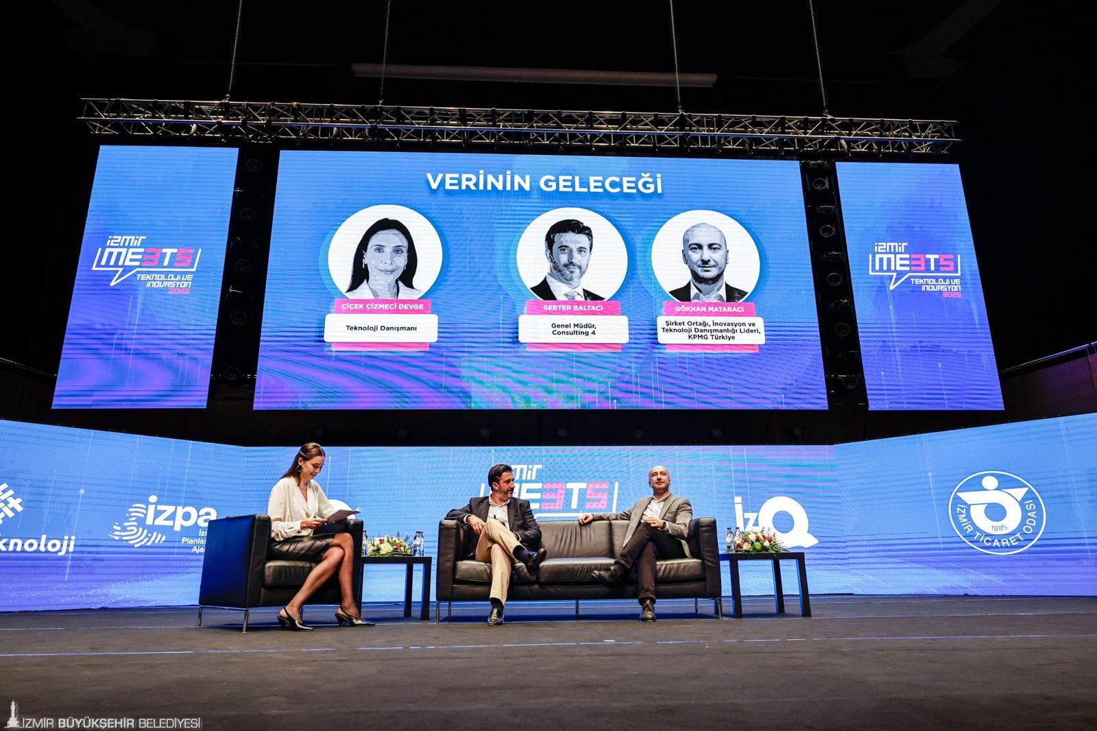 Panelde söz alan Consulting 4 Genel Müdürü Serter Baltacı ise, “Cemil Başkan’ımız geleceği yazmak istiyoruz İzmir olarak dedi. Biz de yedi şirketimizde yeni teknolojileri kullanarak geleceği yazacağız. İnsanın hayatına dokunan inovasyonlara bakalım. Kimse internetsiz yaşayacağını düşünmüyor. Öncesinde cep telefonu, telefon, elektrik var. En gerilere gidersek bence insanlık tarihindeki en büyük inovasyon ateş. O gün ateş yakmak için kullanılan odun, ağaç neyse bugün de veri aslında o. Bugünün en büyük inovasyonu yapay zeka. O zamanın yakıtı odunsa bugünün de yakıtı aslında veri. Veri ve yapay zeka günümüzdeki insanlık tarihini değiştirecek noktada” dedi.
