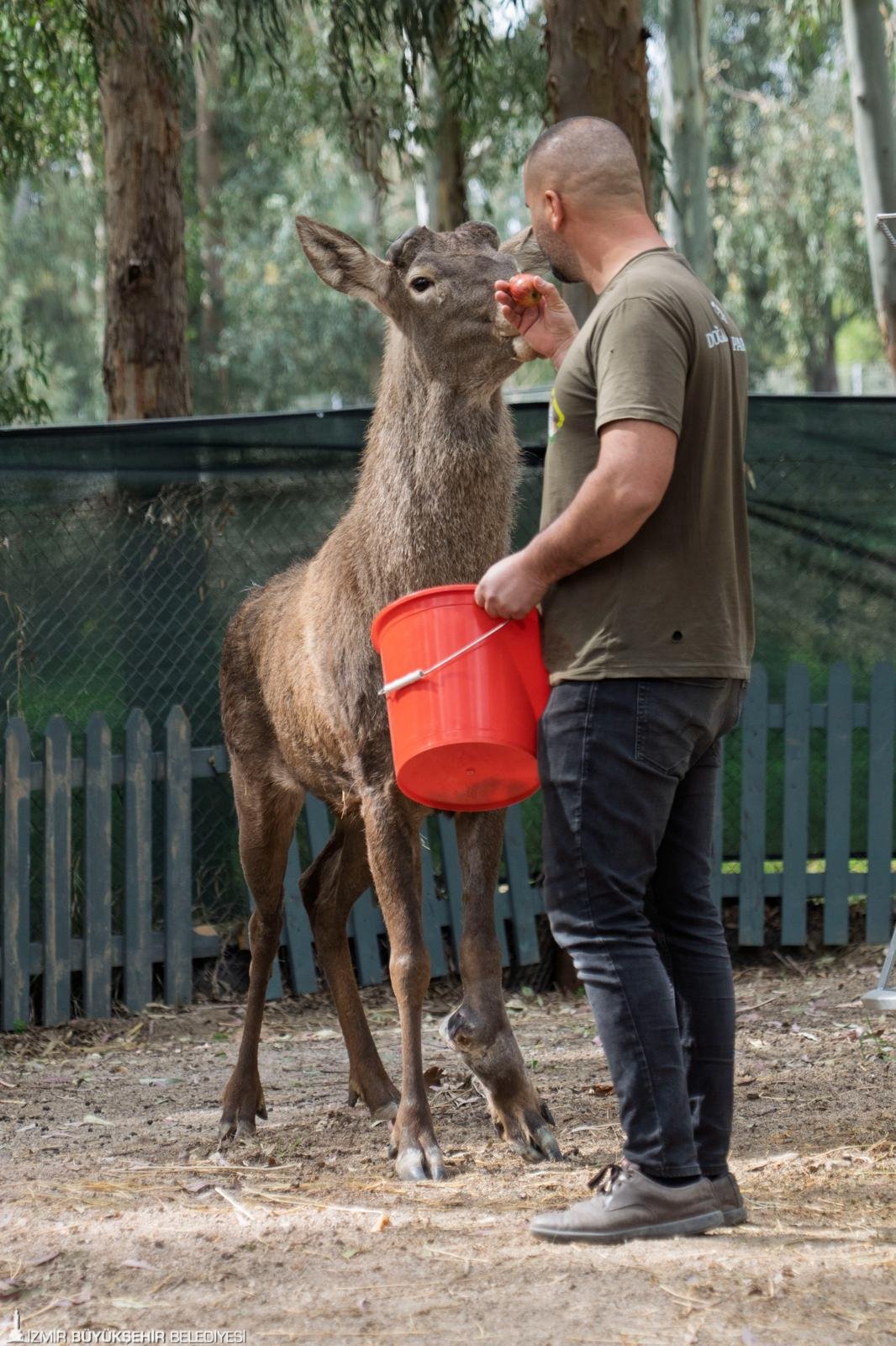 Geyik için özel bir barınak yapıldığını belirten Şükrü Erdem Onur, “Doğa Koruma ve Milli Parklar Şube Müdürlüğü ile yaptığımız iş birliği sonucu, hayvanın Doğal Yaşam Parkı’nda kalmasına karar verildi. Biz de kendisine konforlu bir alan yarattık. Tedavisini sürdürüyoruz. Şimdi ona burada daha iyi nasıl bakarız diye çabalıyoruz. İzmir Doğal Yaşam Parkı’nda geldiği günden bu yana geyiğe en iyi şartlarda bakıyoruz. Bundan sonra da burada en iyi şartlarda hayatını devam ettirecek” diye konuştu.