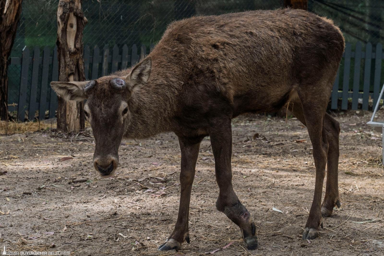 İzmir Kemalpaşa Organize Sanayi Bölgesi'nde yaralı halde bulunan ve İzmir Büyükşehir Belediyesi ekipleri tarafından Doğal Yaşam Parkı’nda tedavi edilen kızıl geyik bundan sonraki hayatını İzmir Doğal Yaşam Parkı’nda geçirecek. Ateşli silahla sol ön ayağından vurulduğu ve ayağında kırık olduğu için artık doğaya salınma imkanı bulunmayan erkek geyik, veteriner hekimlerin gözetiminde parkta kendisi için özel olarak oluşturulan alanda yaşayacak.