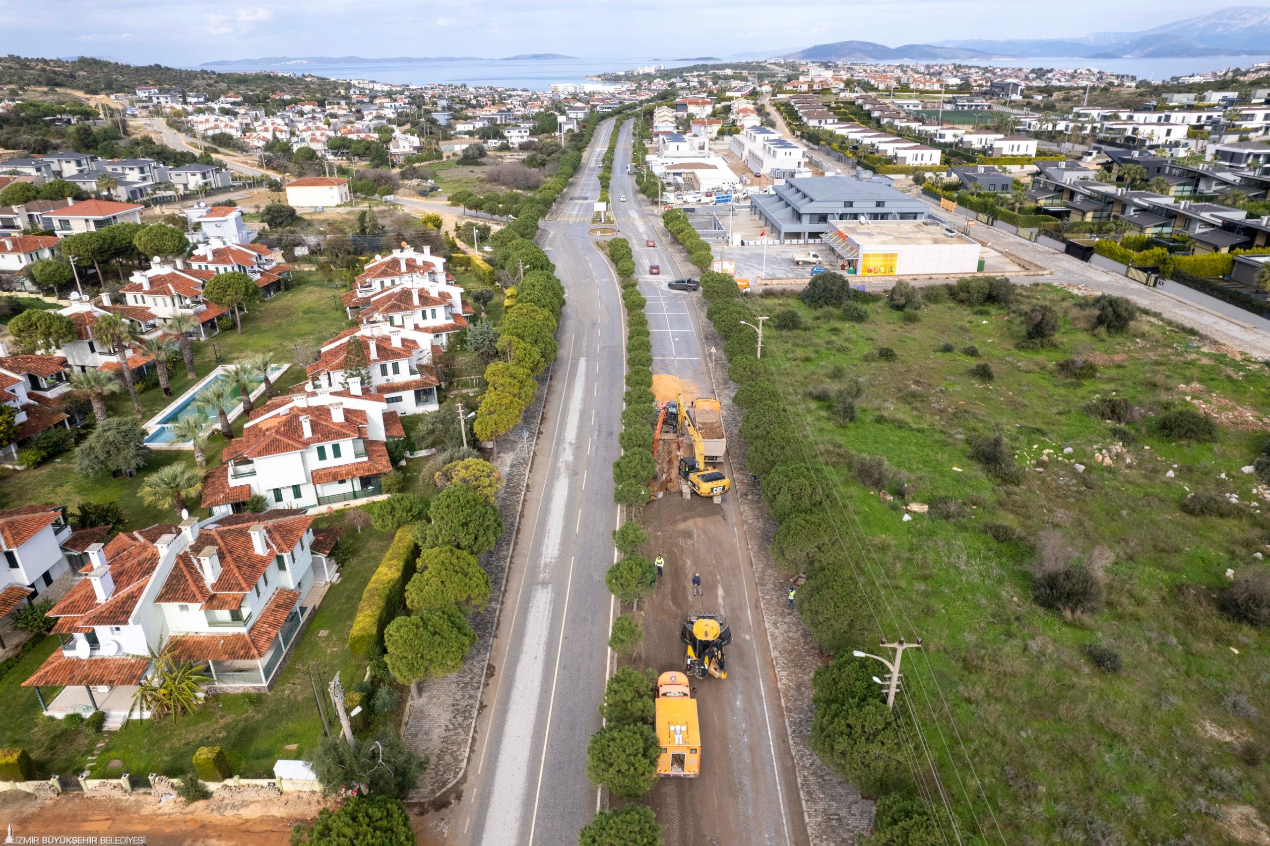 İzmir Büyükşehir Belediyesi yaz aylarında nüfusu 1 milyonu aşan Çeşme’nin su sıkıntısını çözecek içme suyu yatırımının üçüncü etap yapım çalışmalarına devam ediyor. Yaklaşık 550 milyon liralık yatırımla hayata geçecek 3. etap çalışmalarında İZSU ekipleri toplam 320 kilometre uzunluğundaki içme suyu iletim ve şebeke hattının 300 kilometresini tamamladı. İlçenin eskiyen ve kaçaklara neden olan tüm iletim hatları ile su şebekesini yenileyen İZSU Genel Müdürlüğü, projeyi tamamladığında Çeşme’ye sağlıklı ve kesintisiz içme suyu sağlayacak 3.etabın toplamında 1 milyar lirayı bulan tarihi yatırım yapmış olacak. İmalatlar bittiğinde, ilçenin içme suyu ihtiyacı kesintisiz ve sağlıklı bir şekilde karşılanacak. Ayrıca kayıp kaçak sorunu ilçe genelinde en aza indirilerek iklim krizi sonucu yaşanan su sıkıntısı sorununun giderilmesine büyük ölçüde katkı ve oransal olarak uluslararası standartların altına indirilmesi sağlanacak.
