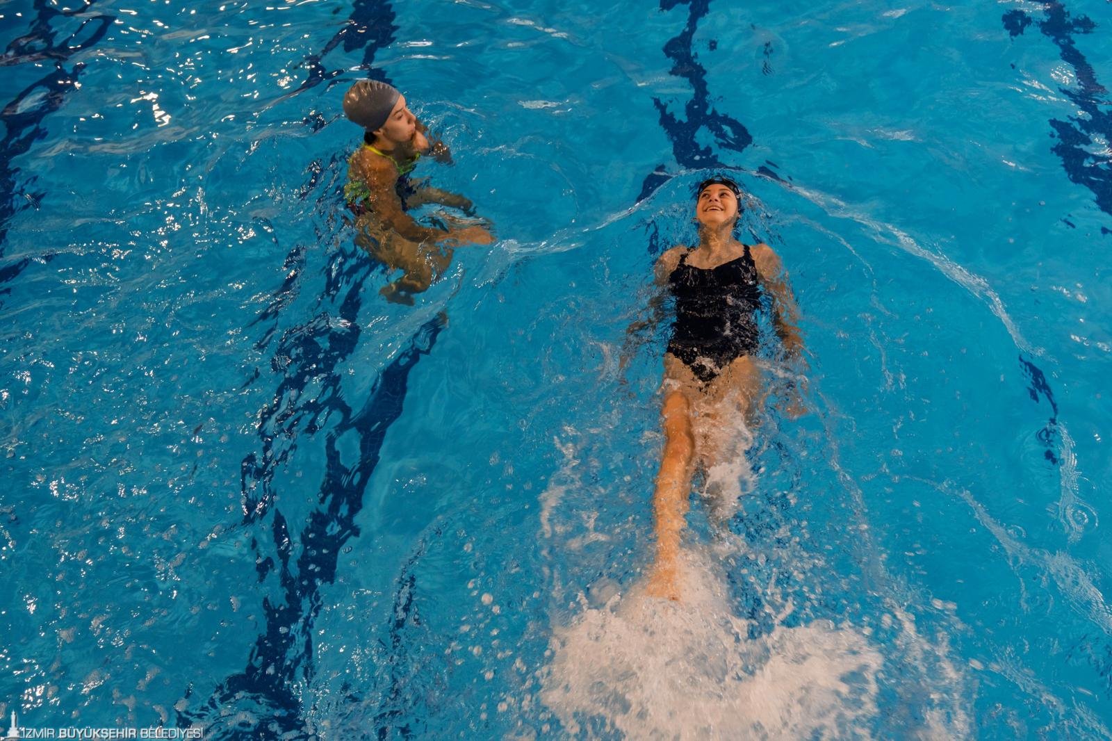 Yüzme kursları ise Celal Atik Spor Salonu, Havuz İzmir, İzmir Marina ve Buca Sosyal Yaşam Kampüsü’ndeki havuzlarda düzenleniyor. Celal Atik Spor Salonu Yüzme Havuzu’nda kurslara katılan 7 yaşındaki Fulya Altan ve Kerem Özoğul, kurstan çok memnun olduklarını ve yazın çok keyifli geçtiğini belirtti. Havuz İzmir Yüzme Eğitim Sorumlusu Pınar Kardeş, “Burada 7-16 yaş arası çocuklarımıza ve yetişkinlere temel seviyede yüzme teknik eğitimleri veriyoruz. Yüzme, çocukların psikososyal gelişimine, fiziksel gelişimine, grup derslerine adapte olmalarına çok fazla fayda sağlıyor. Yüzmeyi bilmeyen ya da tekniklerini geliştirmek isteyen çocuk ve yetişkinler buraya gelebilir. Suda durma ve nefes alıp vermeyi öğrenme gibi konularda da onlara yardımcı oluyoruz” dedi. Havuz İzmir’de yüzme kursuna katılan 10 yaşındaki İlhan Ayaz Karataş, “Yüzmeyi çok seviyorum. Çok eğleniyorum. Bir yıldır Havuz İzmir’e haftada iki gün geliyorum. Burada malzemesiz yüzmeyi, balıklama atlamayı öğrendim. Bütün arkadaşlarımızı bekliyorum, çünkü burası çok güzel” diye konuştu.