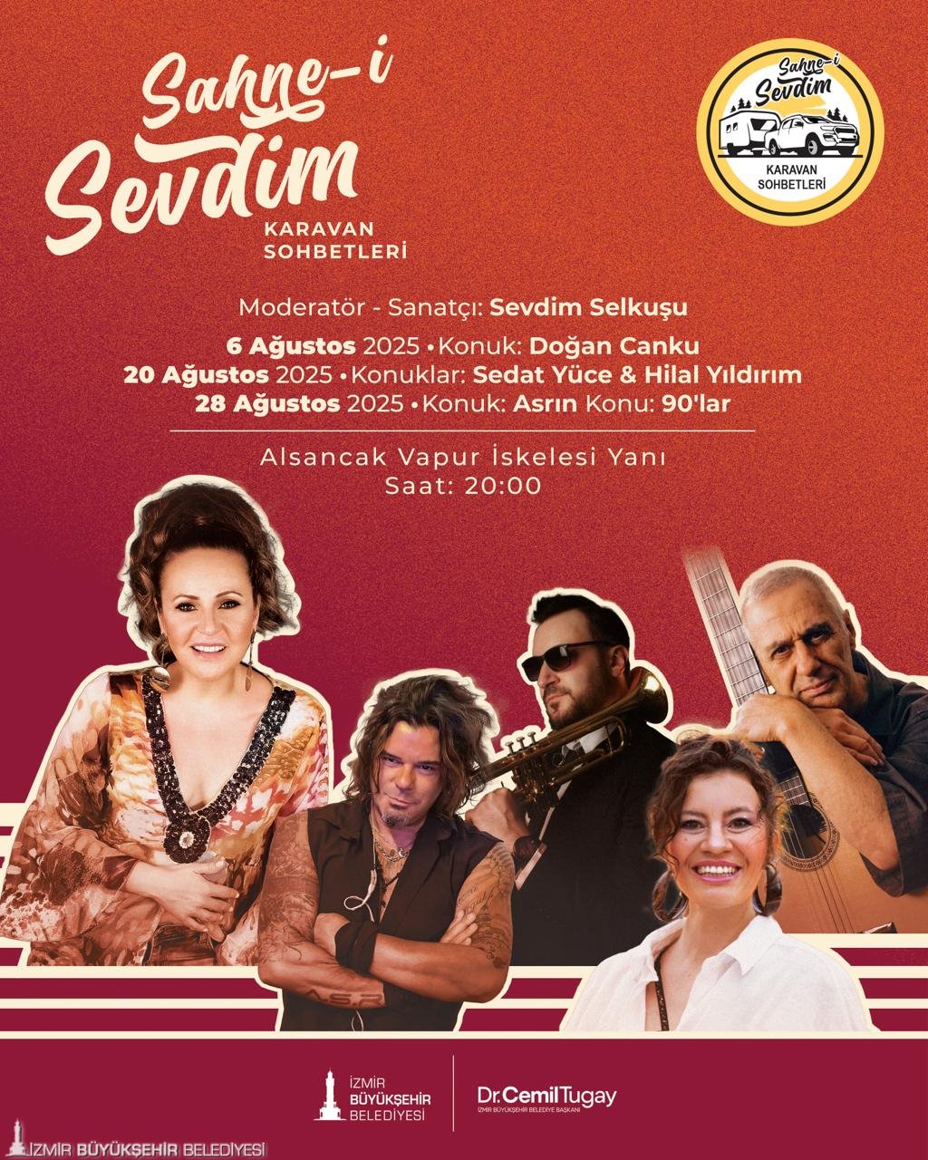 Sahne-i Sevdim Karavan Sohbetleri ise Alsancak İskelesi yanında olacak. Sevdim Selkuşu moderatörlüğünde gerçekleşecek sohbetlere Doğan Canku 6 Ağustos tarihinde, Sedat Yüce ve Hilal Yıldırım 20 Ağustos tarihinde, Asrın 90’lar ise 28 Ağustos tarihinde konuk olacak.