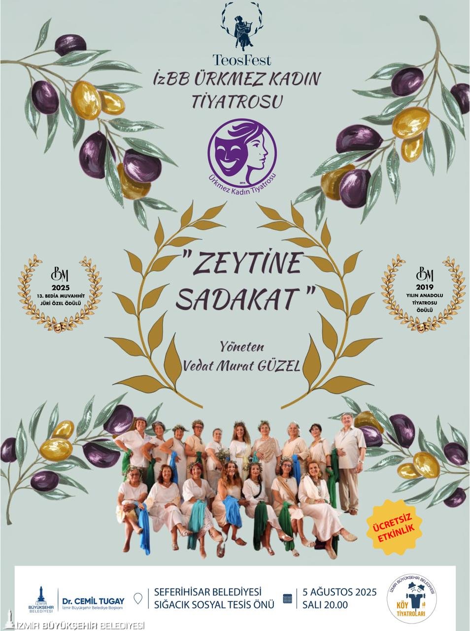 Alaybey Mahallesi Yaz Konserleri kapsamında, 6 Ağustos tarihinde Şef Hüseyin Tolu yönetiminde Türk Sanat Müziği Korosu konseri saat 20.00’de Muammer Aksoy Parkı Tersane Kafe yanında gerçekleşecek. 1-10 Ağustos tarihleri arasında düzenlenecek TeosFest kapsamında ise 5 Ağustos günü İzmir Büyükşehir Belediyesi Ürkmez Kadın Tiyatrosu’nun “Zeytine Sadakat” oyunu sahnelenecek. Ayrıca İzmir'in önemli sanat köşelerinden biri olan Urla Dam sahnesi, 10 Ağustos'ta iki güzel oyunu sahnesine taşıyacak. Bu yıl ödül alan İzmir Büyükşehir Belediyesi Ürkmez Kadın Tiyatrosu’nun “Pişti” oyunu ve İzmir Büyükşehir Belediyesi Bergama Kozak Yukarıbey Köy Tiyatrosu’nun “Doğanın Gözyaşı” oyunu, 10 Ağustos'ta Urla Dam’da seyirci ile buluşacak. İzmir Büyükşehir Belediyesi Köy Tiyatroları, “Tiyatro Her Yerde” sloganıyla 1, 2, 3 Ağustos tarihlerinde Karaburun köy ve plajlarında sanatseverlere keyifli anlar yaşatacak.
