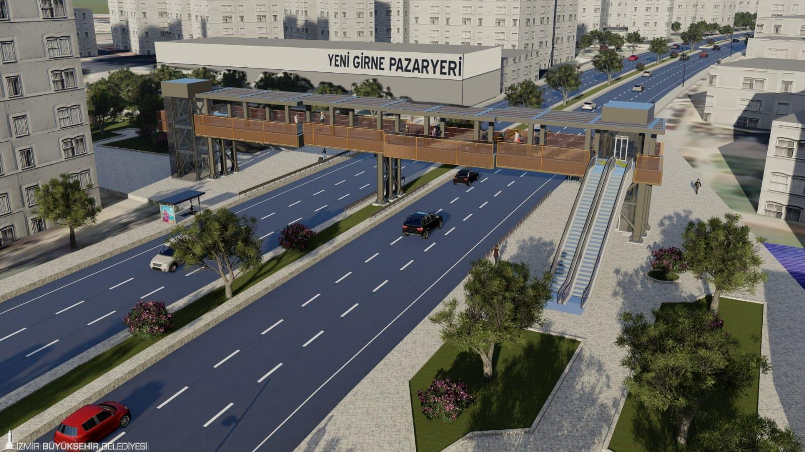 İzmir Büyükşehir Belediye Başkanı Dr. Cemil Tugay’ın kentin ulaşım konforunu artırmak için başlattığı projeler arasında yer alan Karşıyaka Yeni Girne Yaya Üst Geçidi çalışmaları hızla ilerliyor. 50 metre uzunluğunda, 6 metre genişliğinde ve 5 metre yüksekliğindeki üst geçitte 4 yürüyen merdiven ve 2 asansör bulunacak. 2025 yılının ikinci yarısında hizmete açılacak üst geçit Soğukkuyu Mahallesi ile Örnekköy Mahallesi arasında bağlantı kurarak pazaryeri, hastane ve eğitim kurumları başta olmak üzere yaya ulaşımının yoğun olduğu bölgeye nefes aldıracak. Girne Bulvarı üzerindeki trafik akışını da rahatlatacak üst geçidin ayak temellerinden biri Yeni Girne Pazaryeri yanında diğeri ise Öğretmenler Parkı yanında yer alıyor. Üst geçit gölgeliği, yayaların dinlenerek çevreyi seyredebileceği oturma alanları ile bölgeye renk katacak.