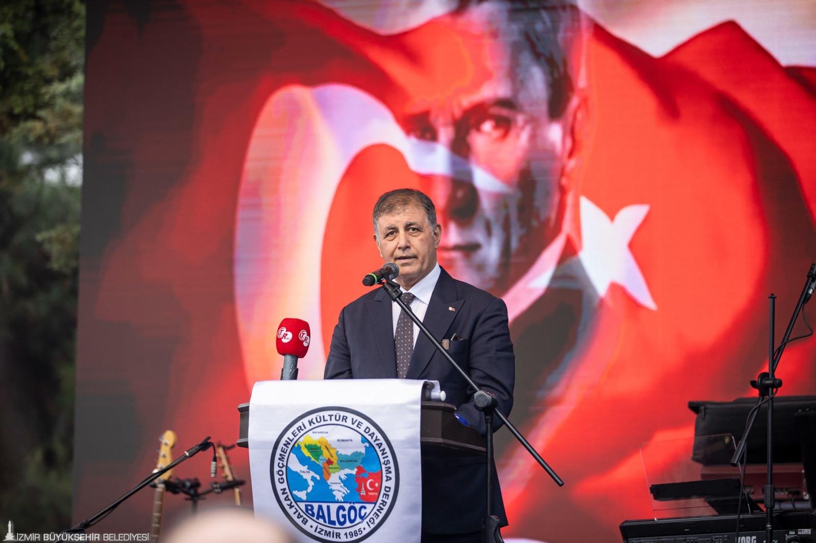 İzmir Büyükşehir Belediye Başkanı Dr. Cemil Tugay, 12. Balkan Şenliği’nin açılışını yaptı. Sarnıç Piknik Alanı’nda yağışlı havaya rağmen göçmenlerin gönüllerince eğlenip kültürlerini yaşattığı şenlikte konuşan Başkan Tugay, Gazi Mustafa Kemal Atatürk’ün gösterdiği yolda birlikte ilerleyeceklerini söyleyerek, “Bizlere düşen, bu ülkeyi en yüksek seviyeye çıkarmaktır. Değerlerimize inanacağız, tarihimize inanacağız. Her zaman yürek yüreğe, omuz omuza, kol kola birlik olup, önce şehrimiz için, sonra ülkemiz için çalışacağız” dedi.