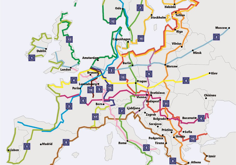 EuroVelo rotalarının geliştirilmesi ve işletilmesi ulusal-yerel yönetimler ve STK'lar tarafından yürütülmektedir. Tüm Avrupa’yı birbirine bağlayan toplam 90.000 km uzunluğunda olan 17 uzun mesafe bisiklet rotasından oluşan bir bisiklet ağıdır. EuroVelo ağına dahil olan ülkelerde bisiklet turizminin katkısıyla bölge ekonomisi hem kentsel hem de kırsalda canlanmaktadır.