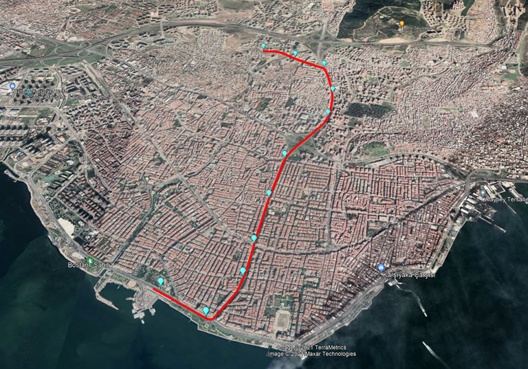 • Proje, Bostanlı İskele Tramvay Durağından başlayarak ve Girne Bulvarı’na kadar Karşıyaka ve Çiğli Tramvay hatları ile aynı güzergâhı kullanacaktır. Girne ve devamında Yeni Girne Caddesi üzerinden Örnekköy Kentsel Dönüşüm Bölgesine ulaşan hat 7532 ile 7632/2 sokak kesişiminde son bulacaktır.